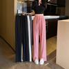 Pantalones de Pierna Ancha de Seda de Hielo de Cintura Alta para Mujer de Talla Grande, Estilo Delgado de Verano 2025, Pantalones Drapeados hasta el Piso Adelgazantes, Pantalones Casuales Sueltos de Pierna Recta