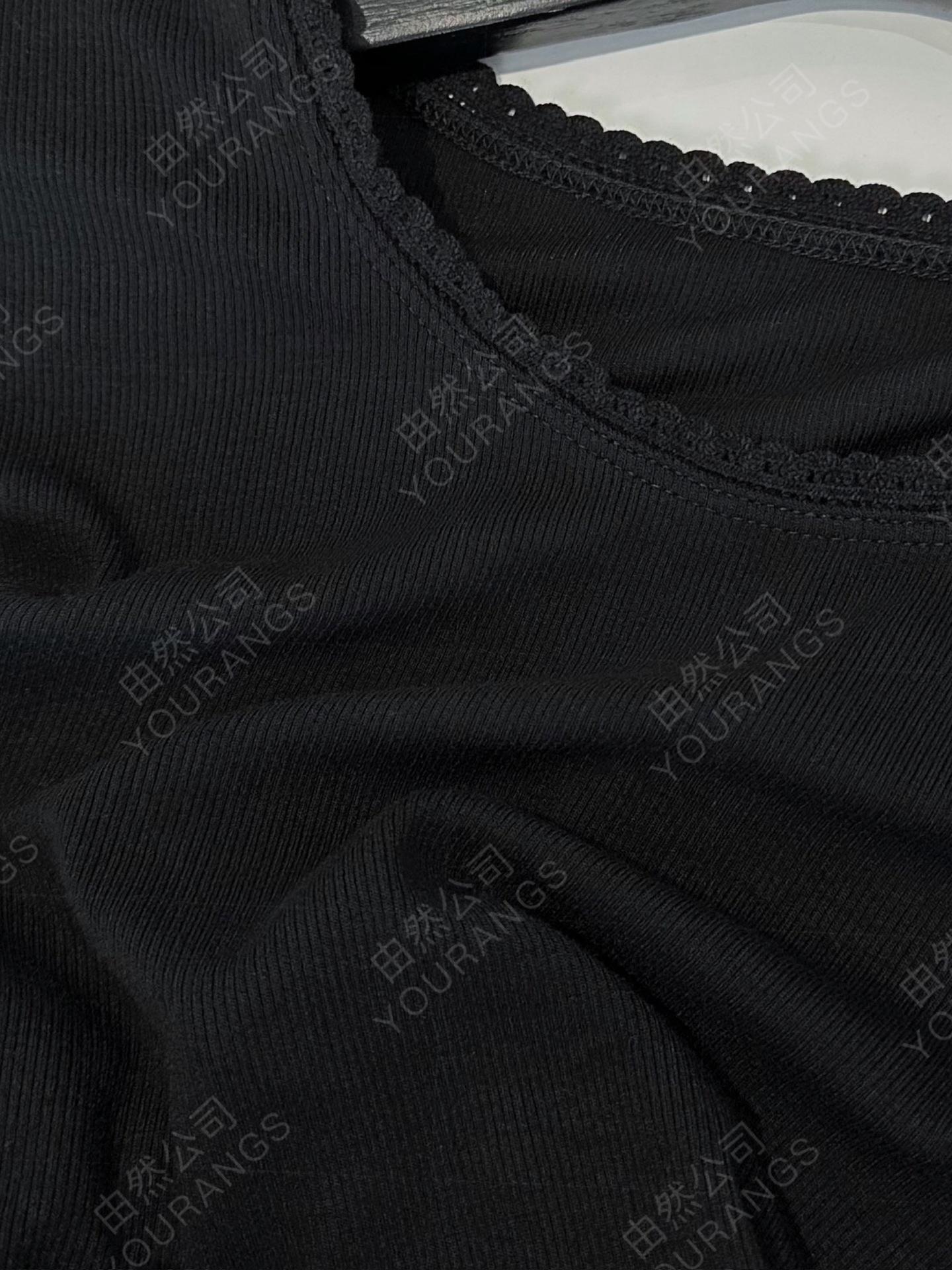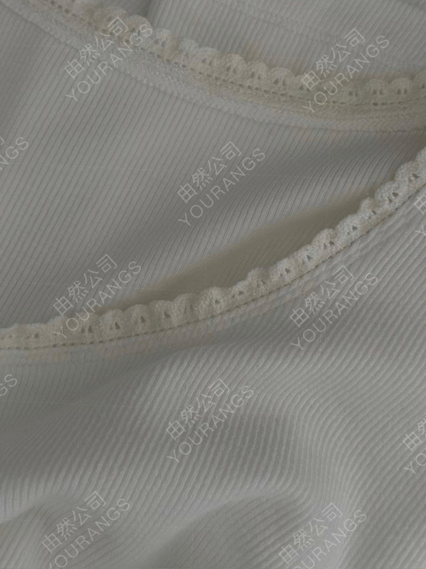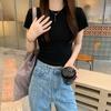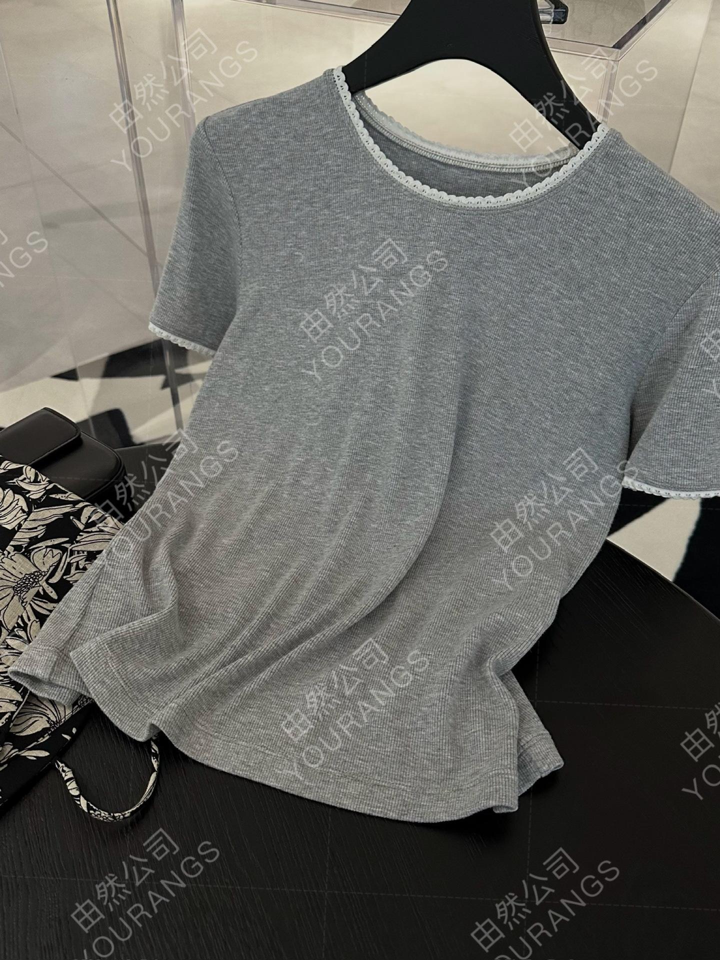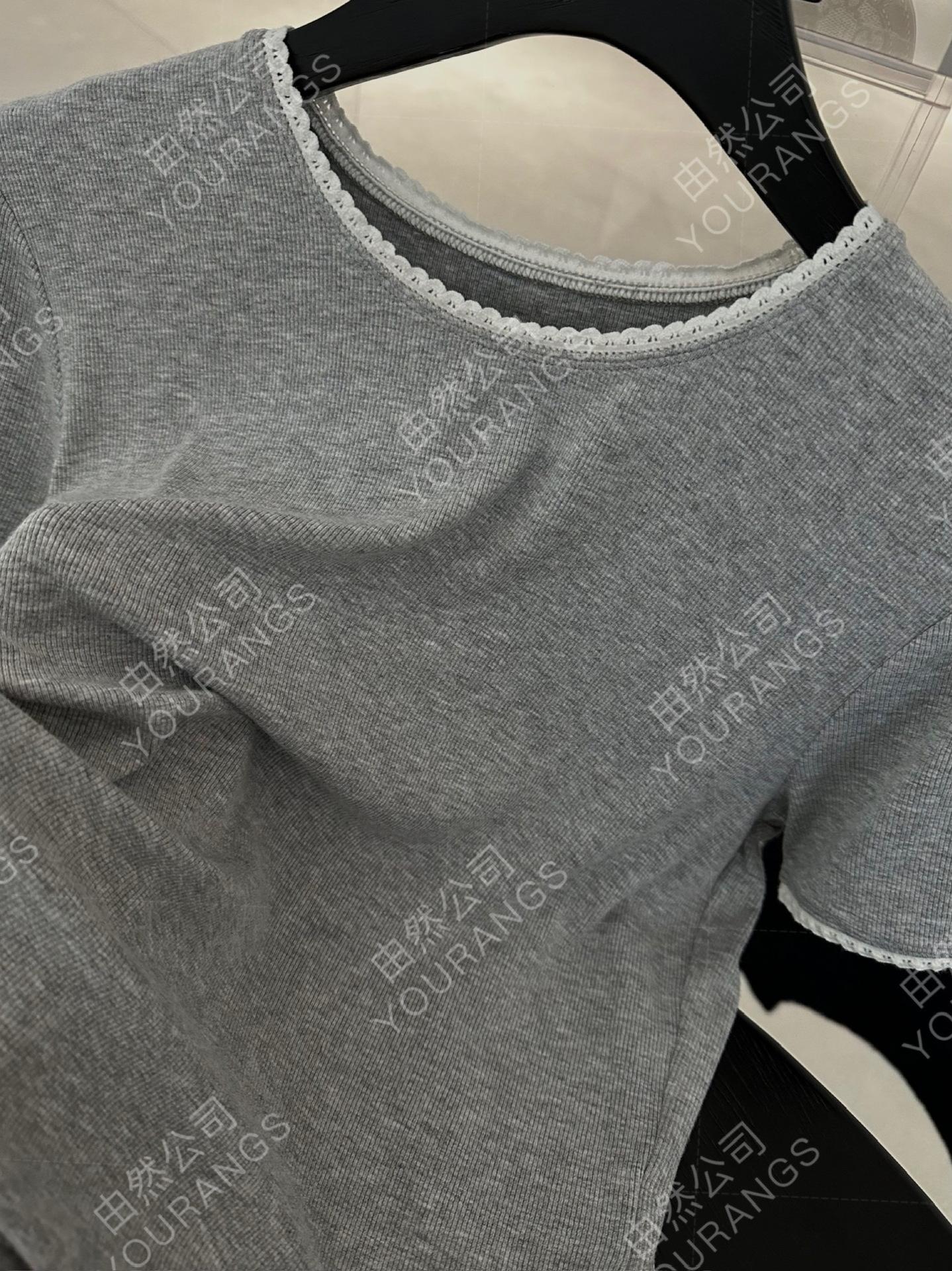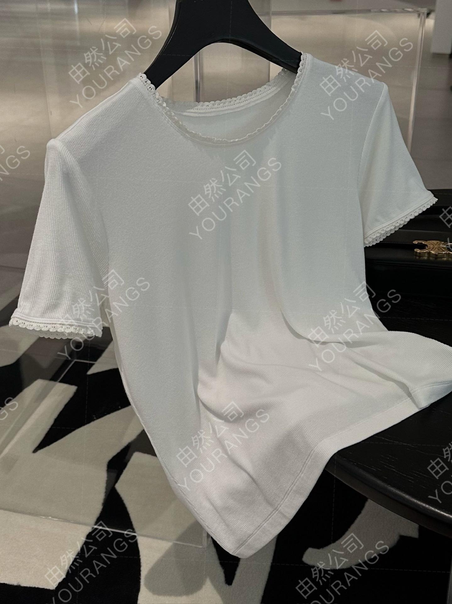 [Kui Qing 65] Camiseta de manga corta, sencilla, ajustada y con cuello de encaje y estampado de hueso de serpiente en modal con tacto de piel LE