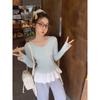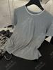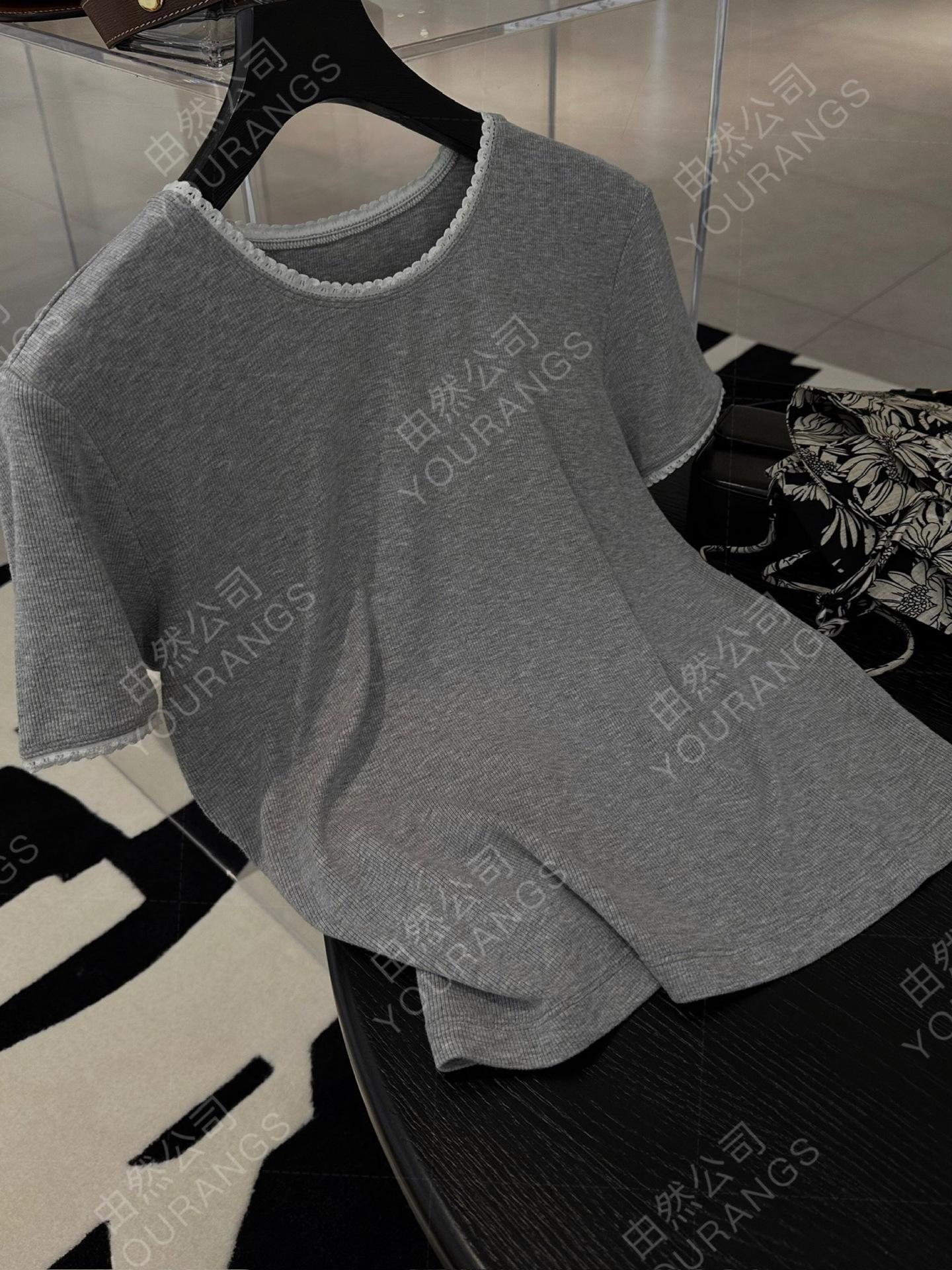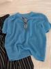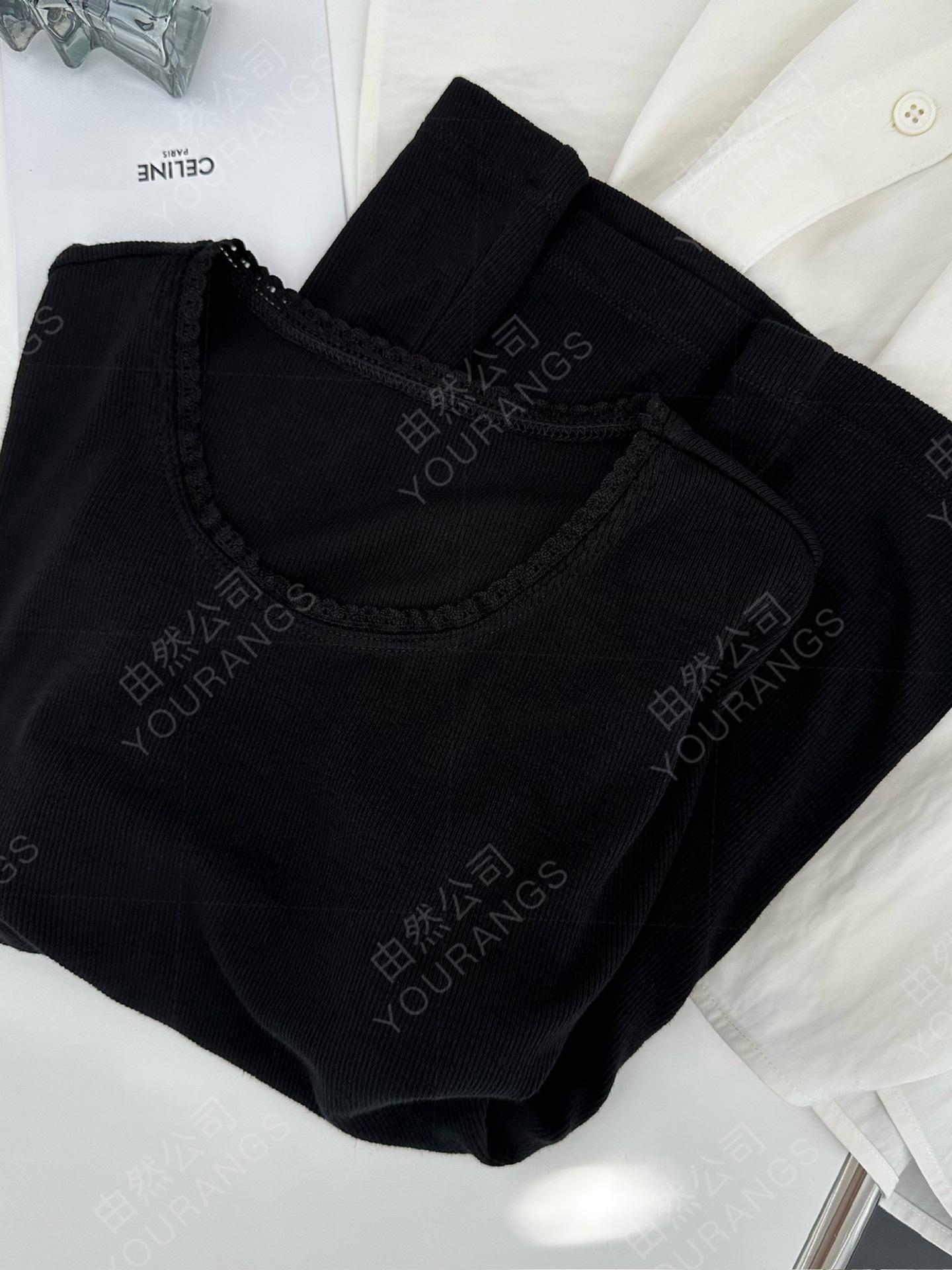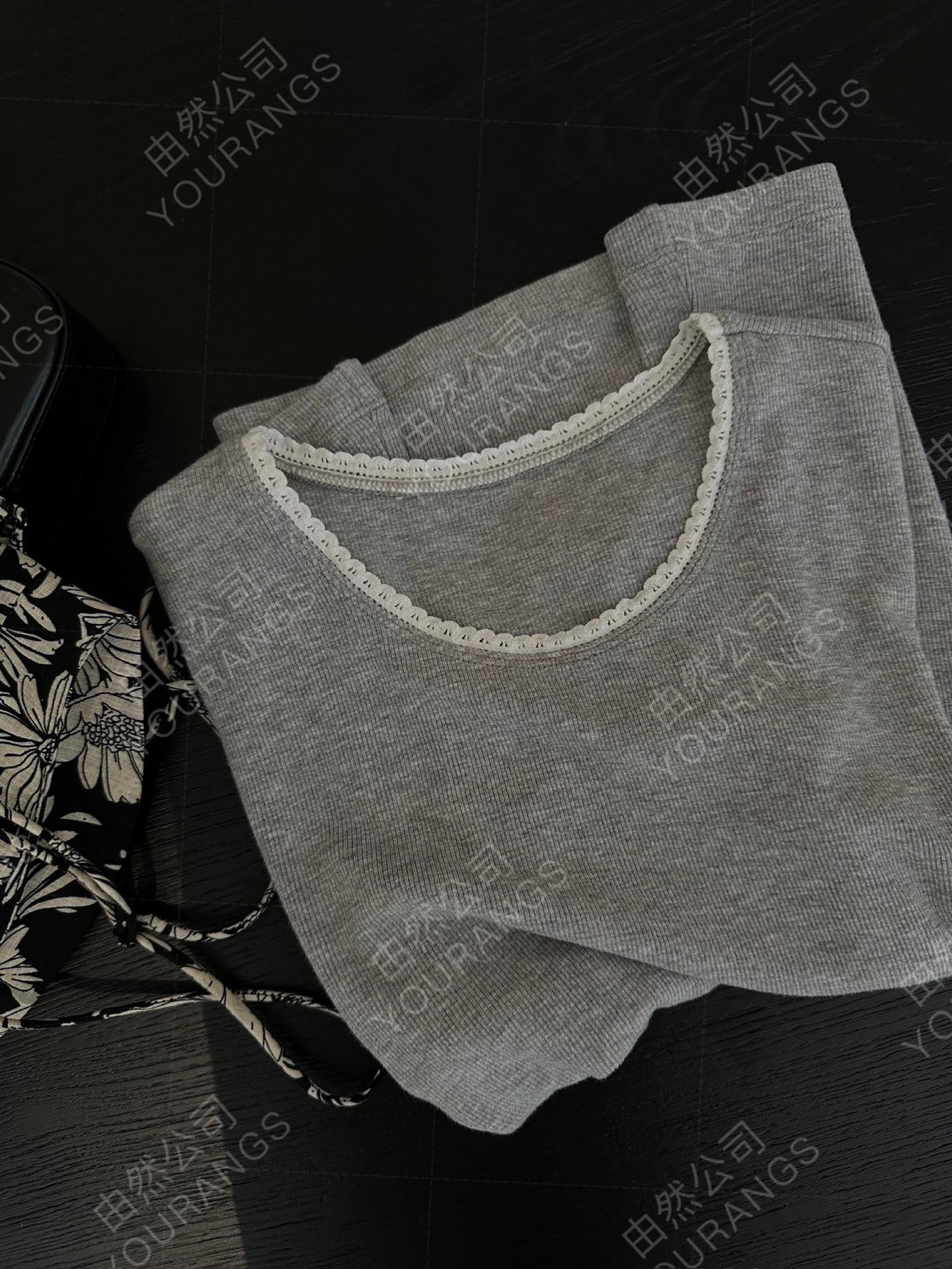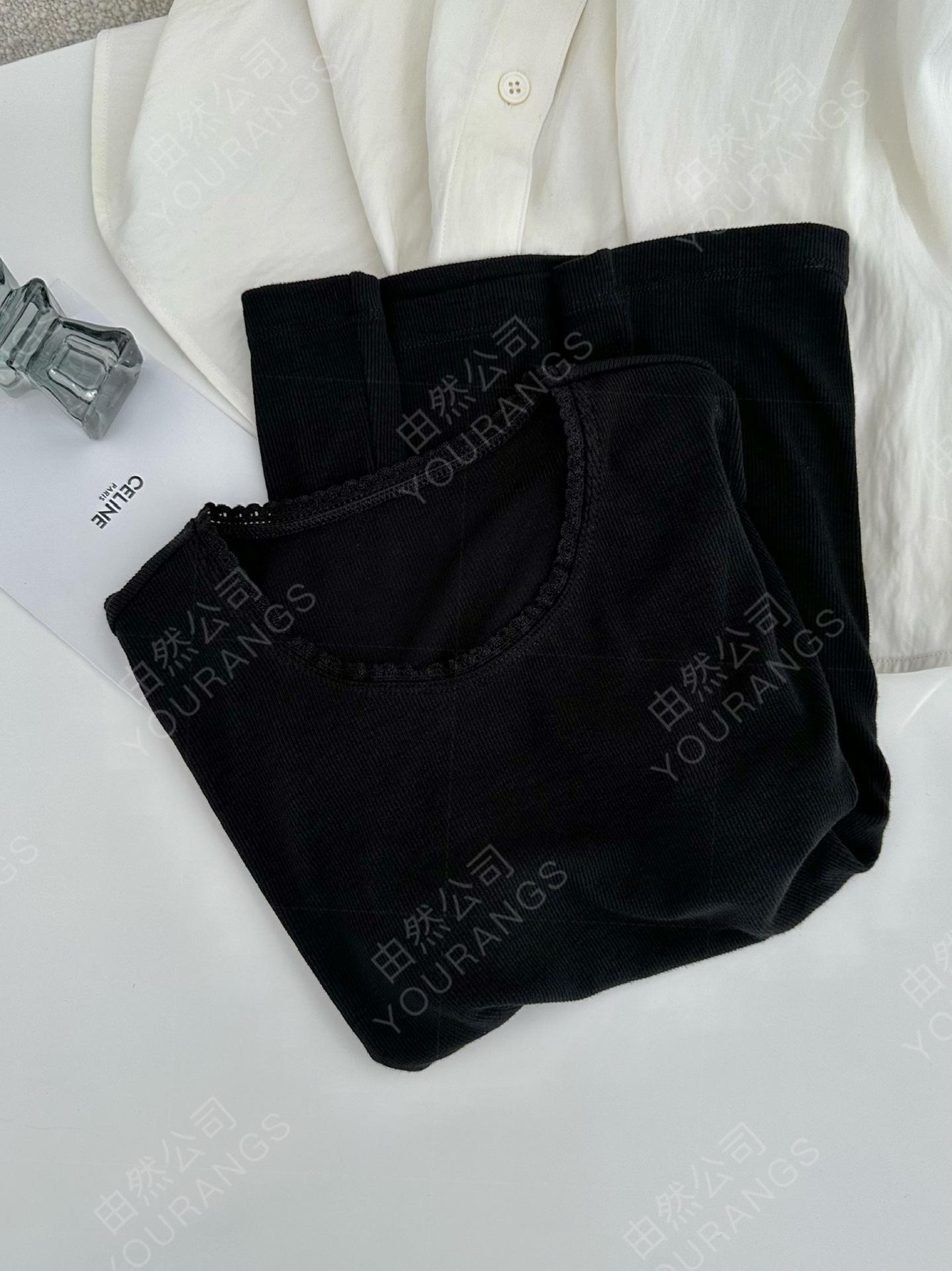 [Kui Qing 65] Camiseta de manga corta, sencilla, ajustada y con cuello de encaje y estampado de hueso de serpiente en modal con tacto de piel LE