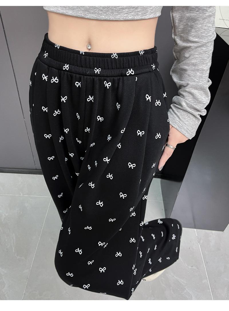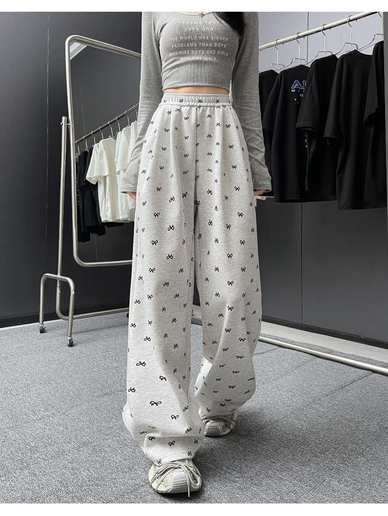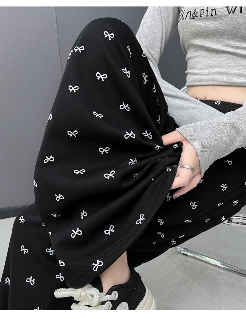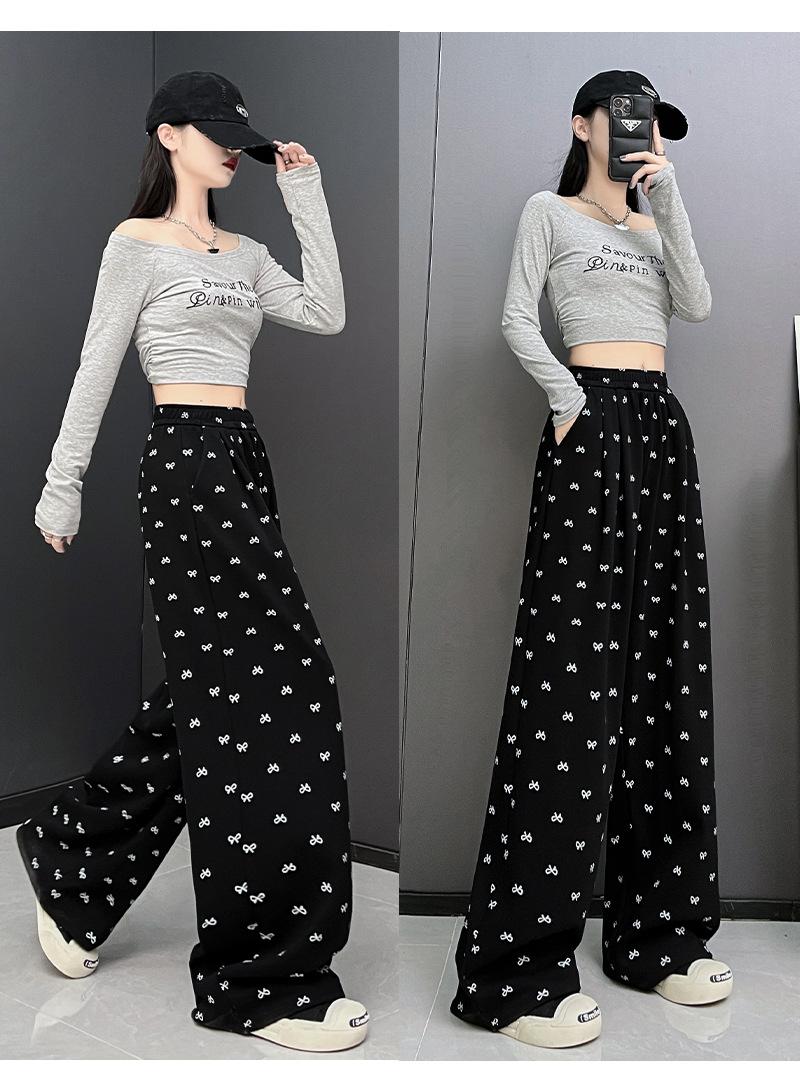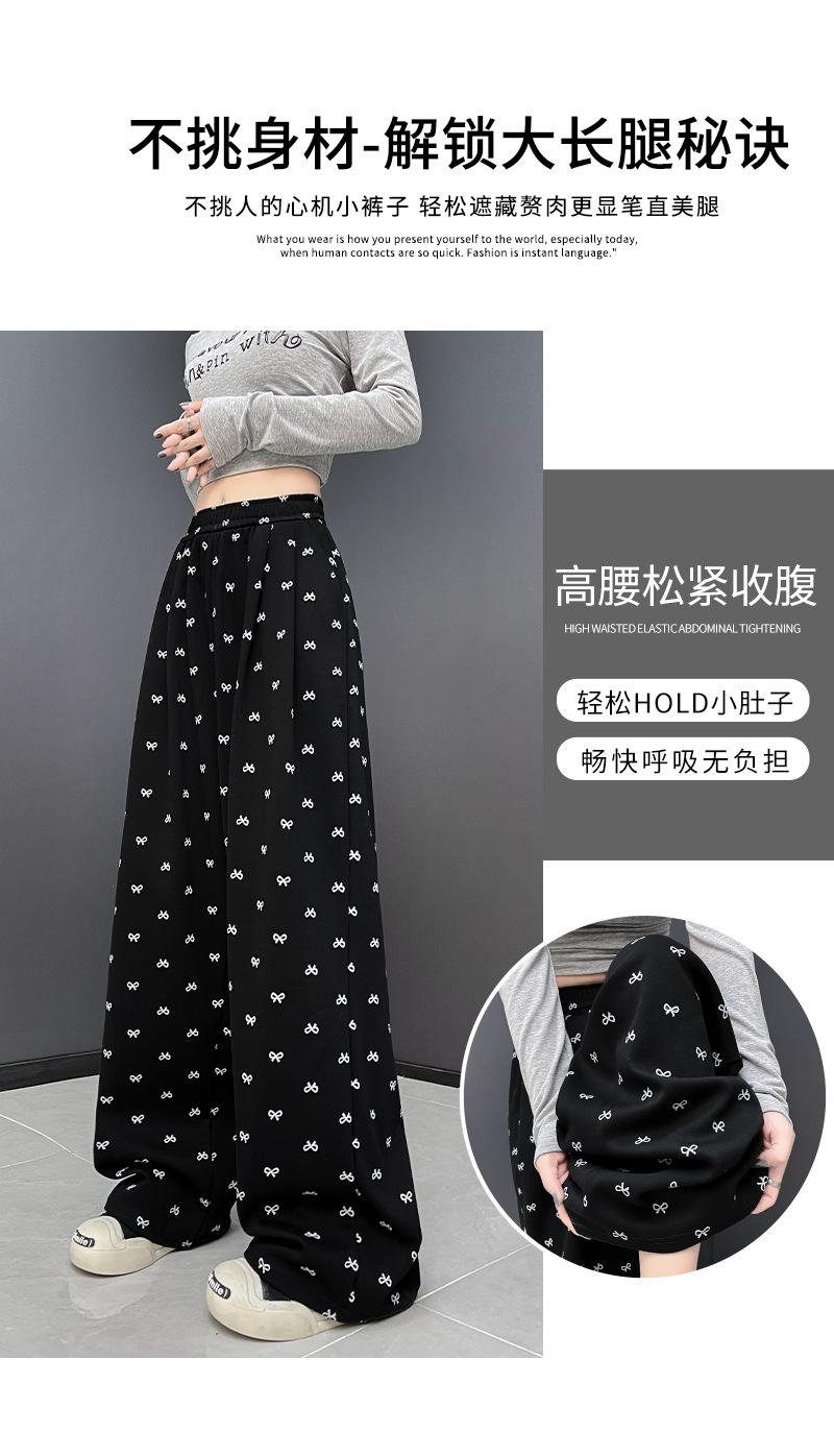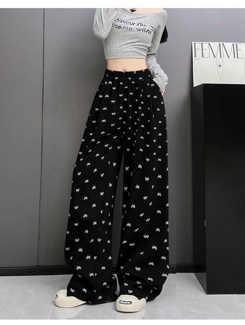 Pantalones anchos con estampado de lazo para mujer, primavera y otoño, nuevos pantalones holgados de cintura alta, rectos, informales, holgados y desenfadados.