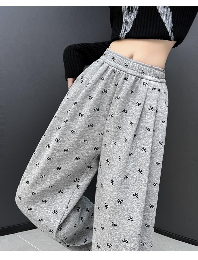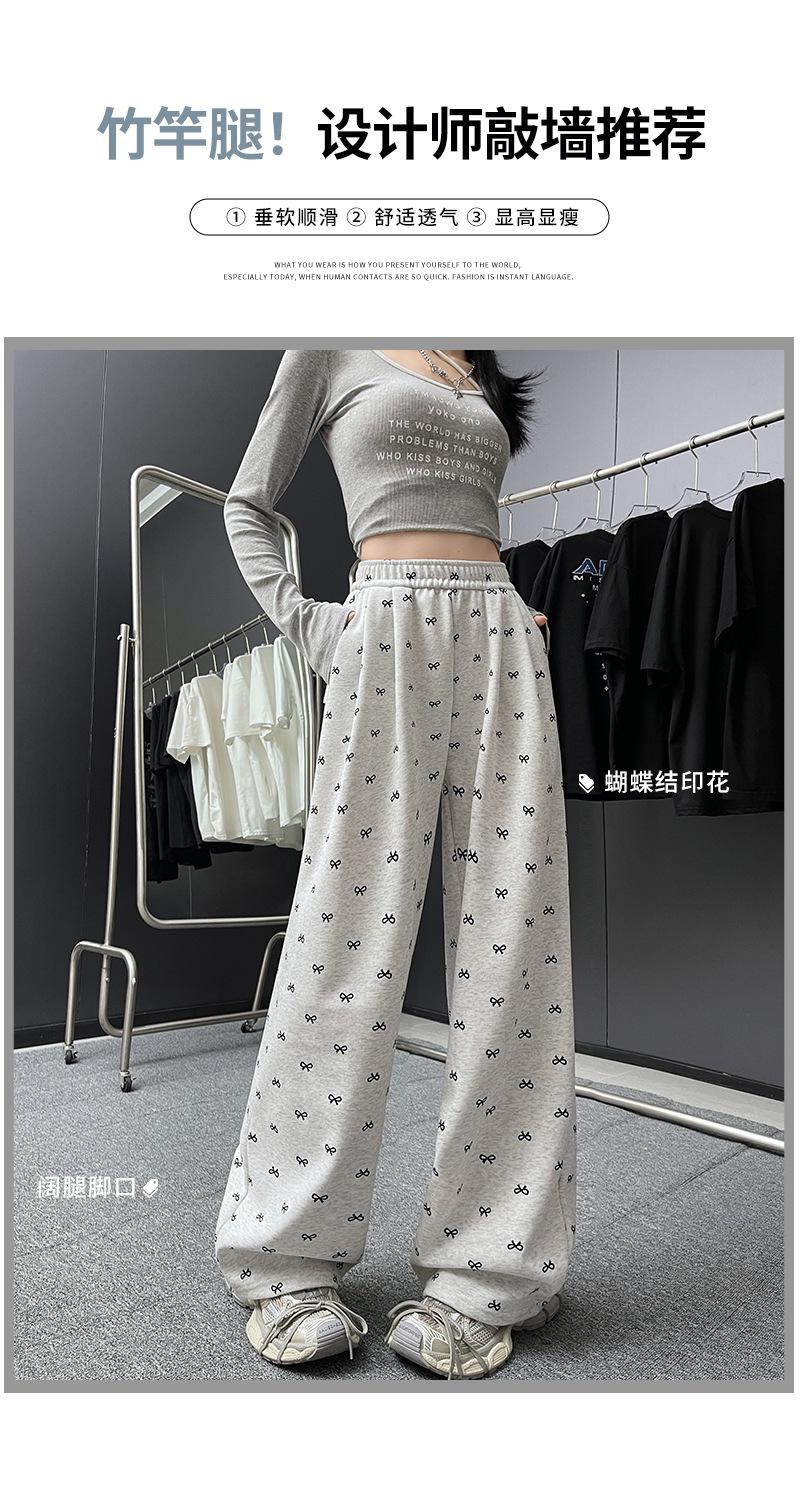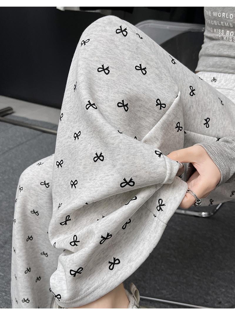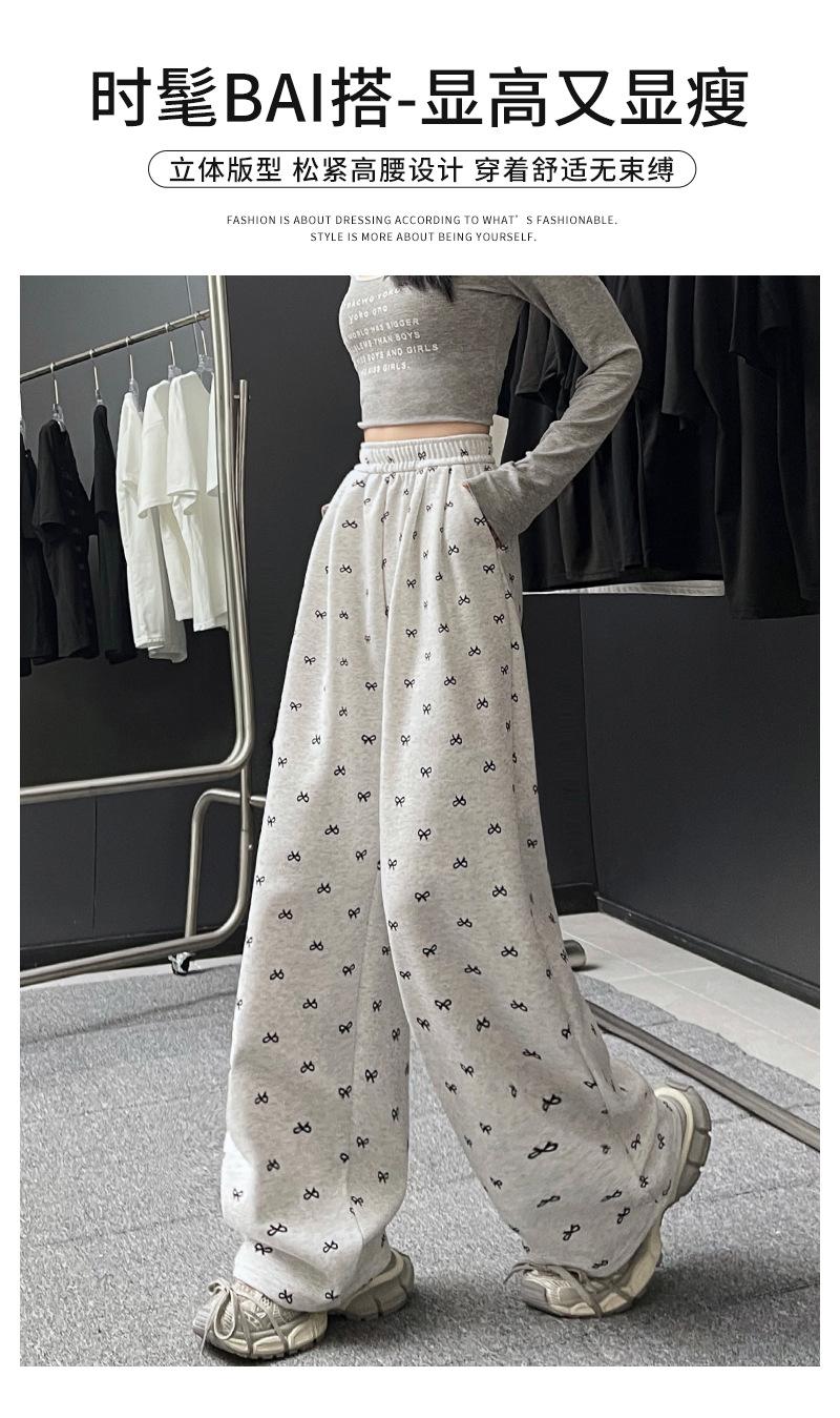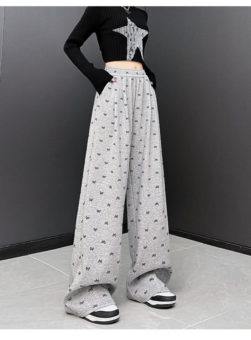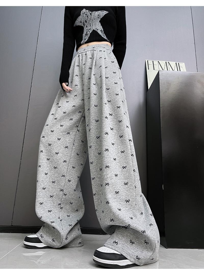 Pantalones anchos con estampado de lazo para mujer, primavera y otoño, nuevos pantalones holgados de cintura alta, rectos, informales, holgados y desenfadados.