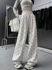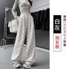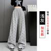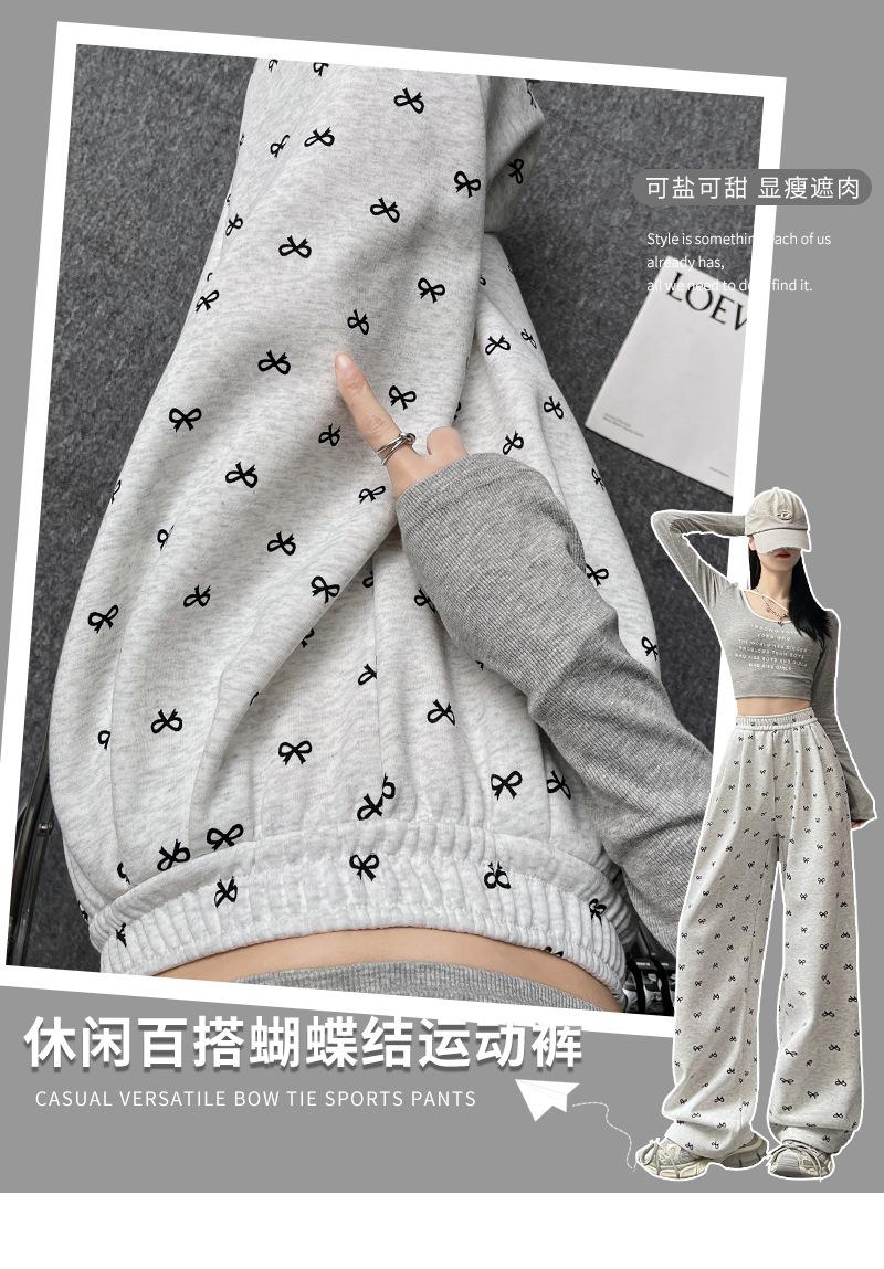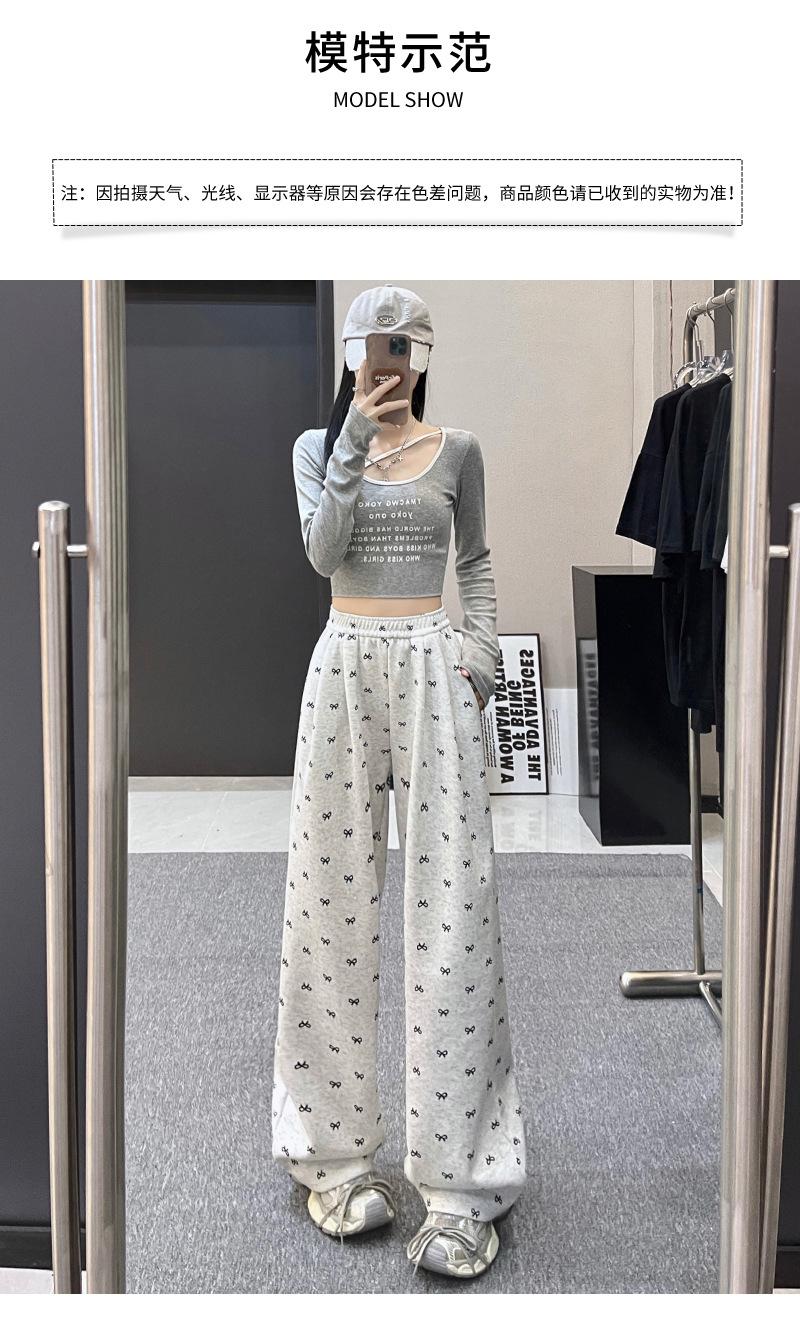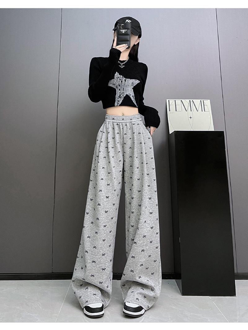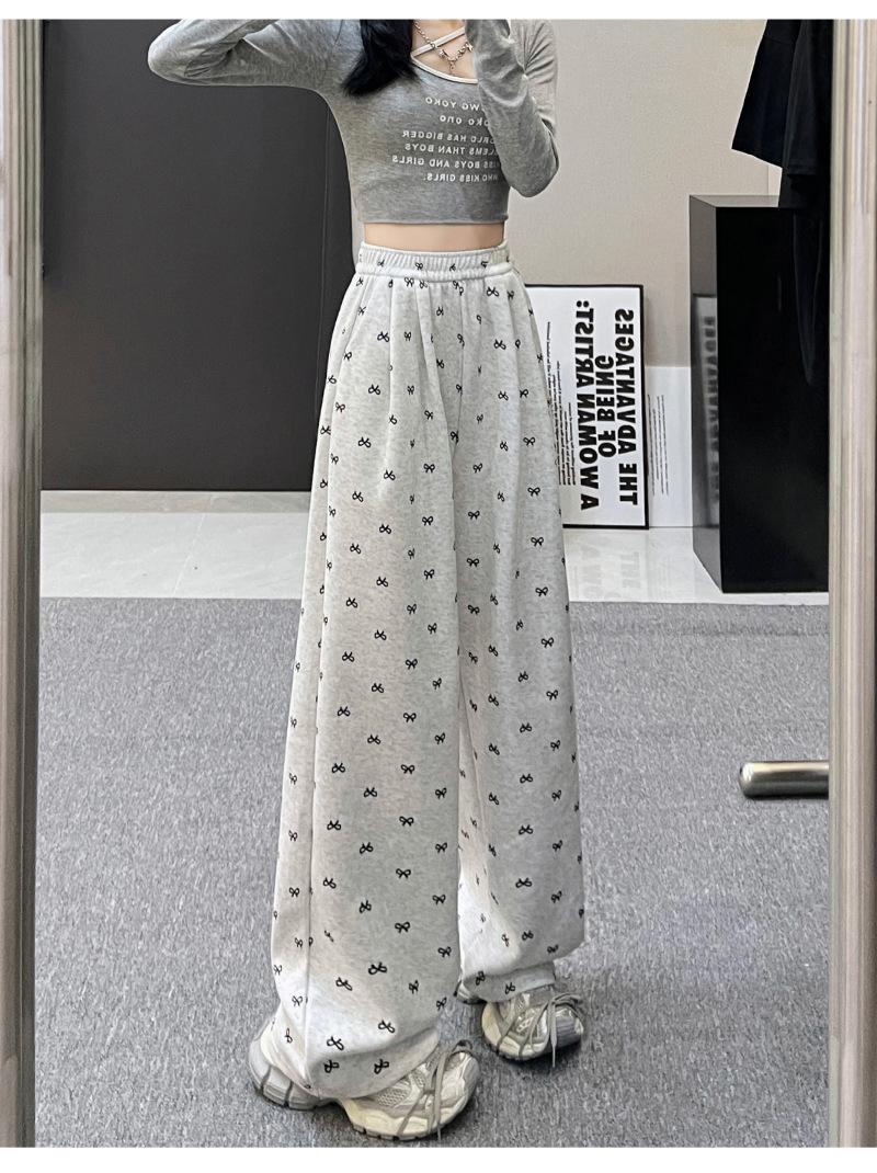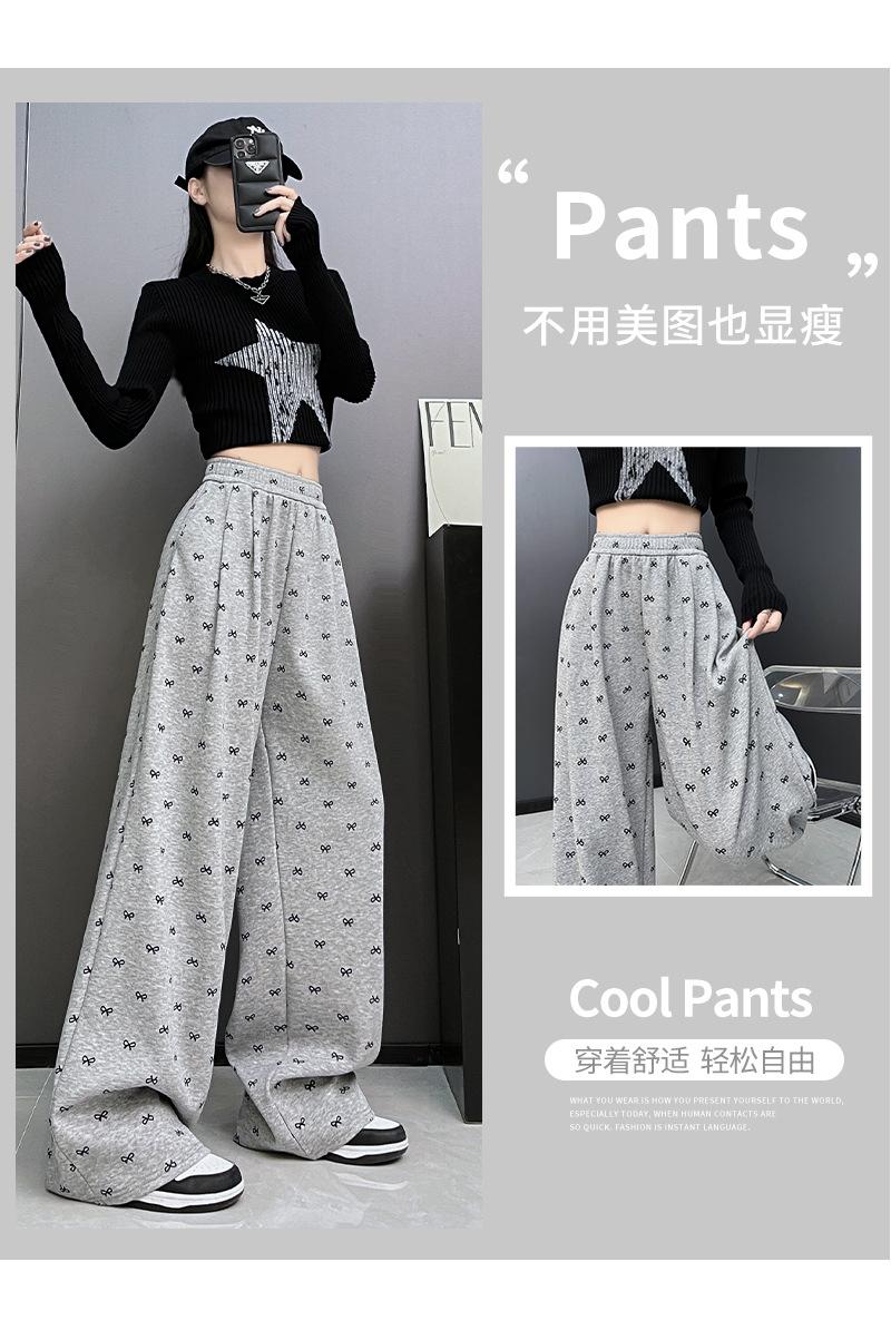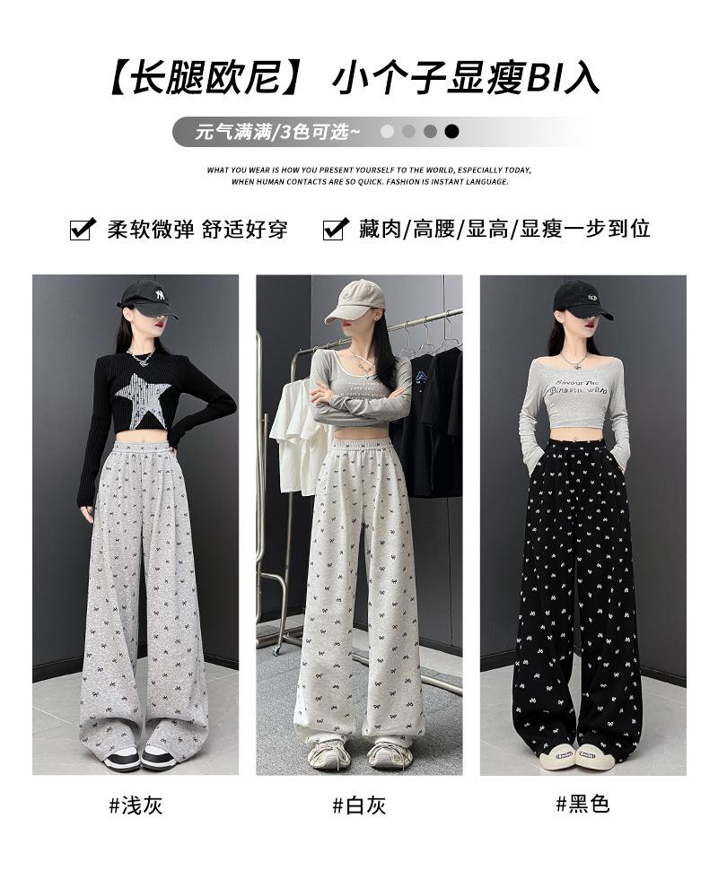 Pantalones anchos con estampado de lazo para mujer, primavera y otoño, nuevos pantalones holgados de cintura alta, rectos, informales, holgados y desenfadados.