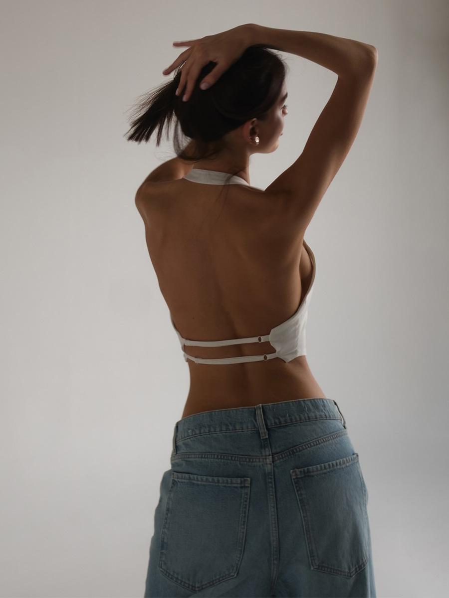 Chaleco de cuello corto transfronterizo, estilo europeo y americano, primavera y verano 2025, sexy, sin espalda, estilo Spice Girl, para mujer