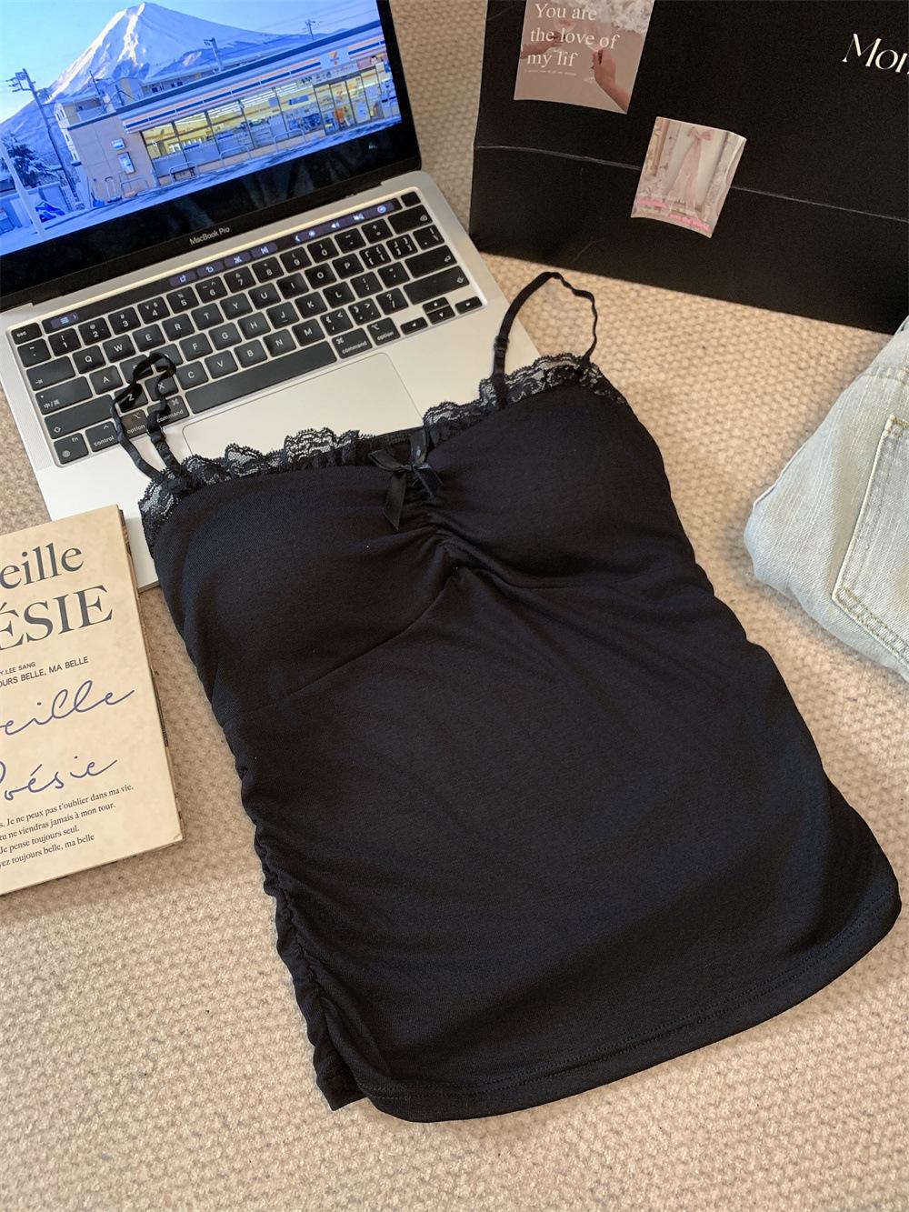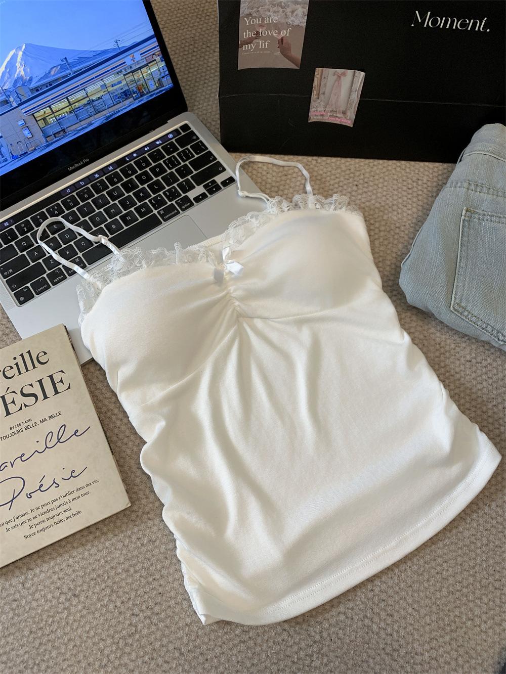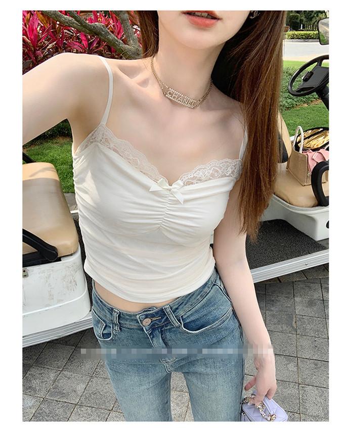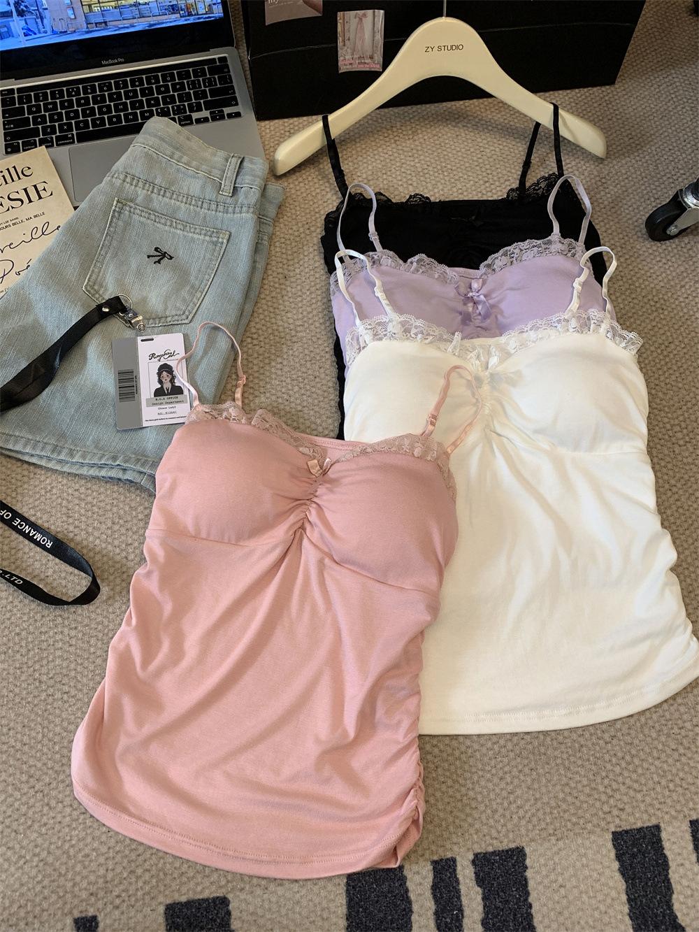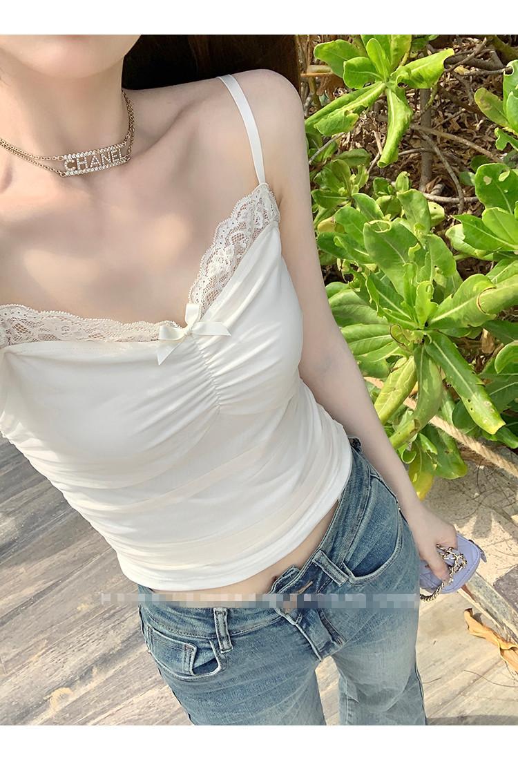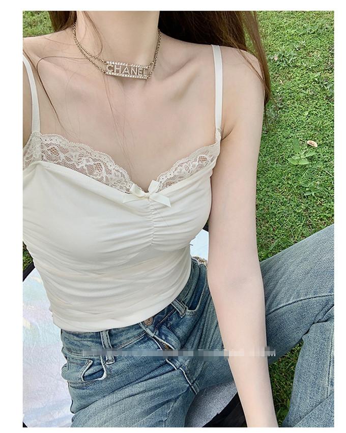 Compra Chaleco de encaje con lazo plisado y espalda descubierta con almohadilla para el pecho y tirantes ajustables para mujer, primavera y verano al por mayor en Joom.pro