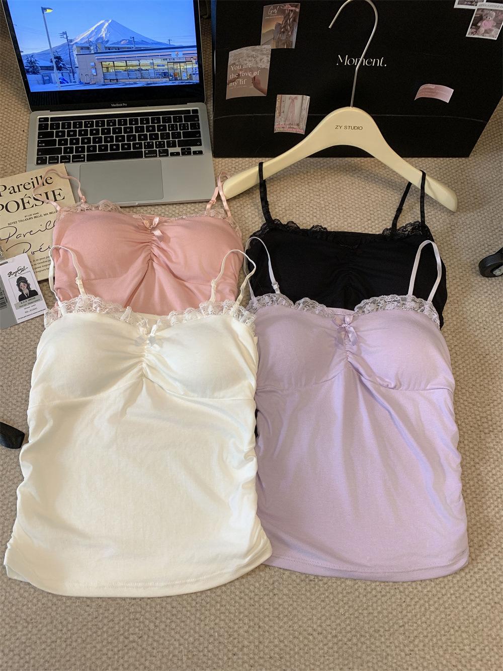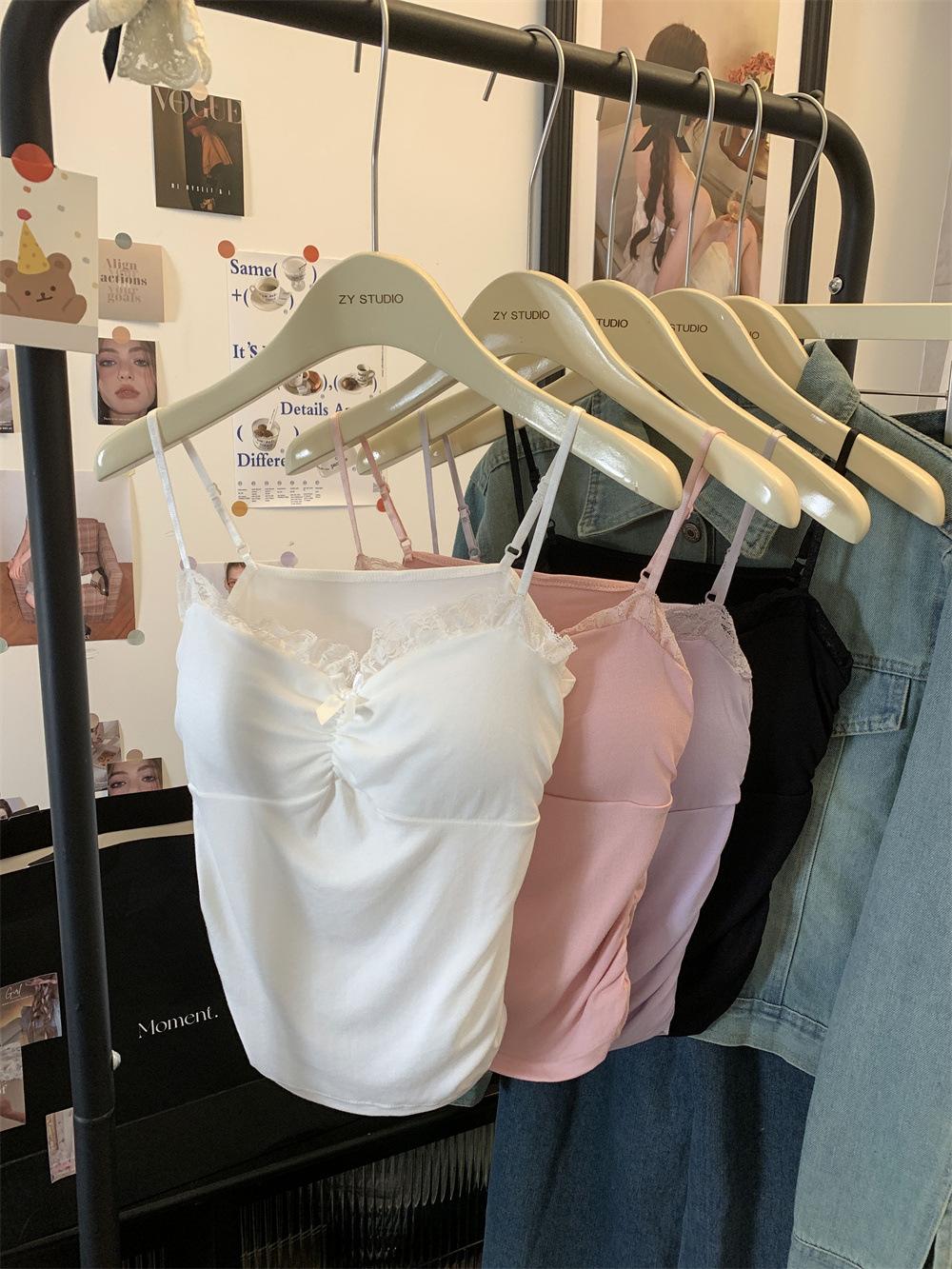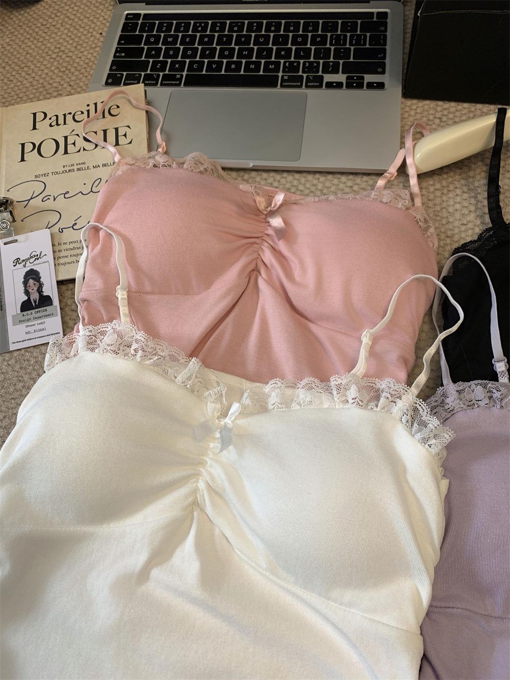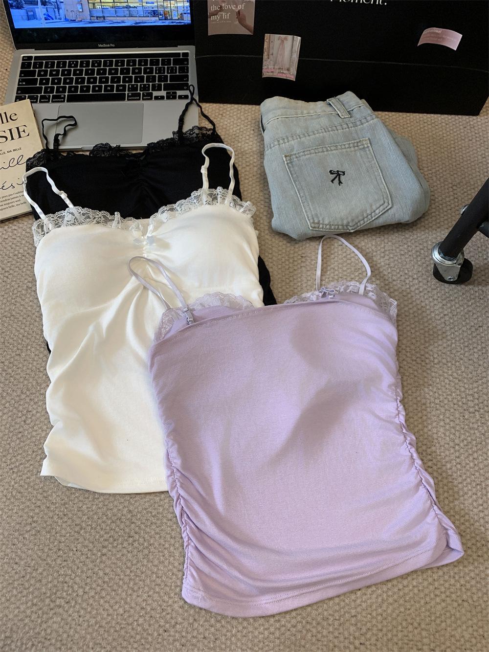 Compra Chaleco de encaje con lazo plisado y espalda descubierta con almohadilla para el pecho y tirantes ajustables para mujer, primavera y verano al por mayor en Joom.pro
