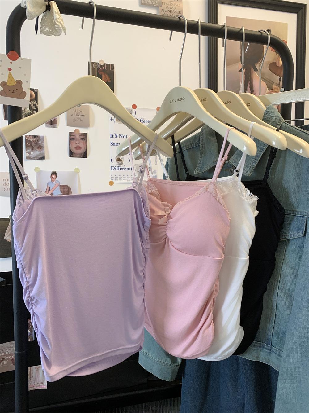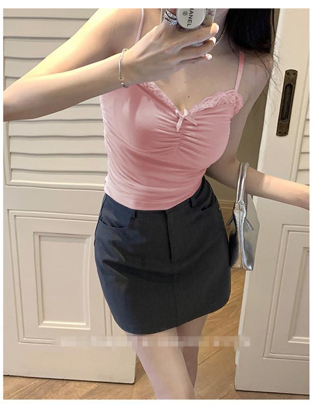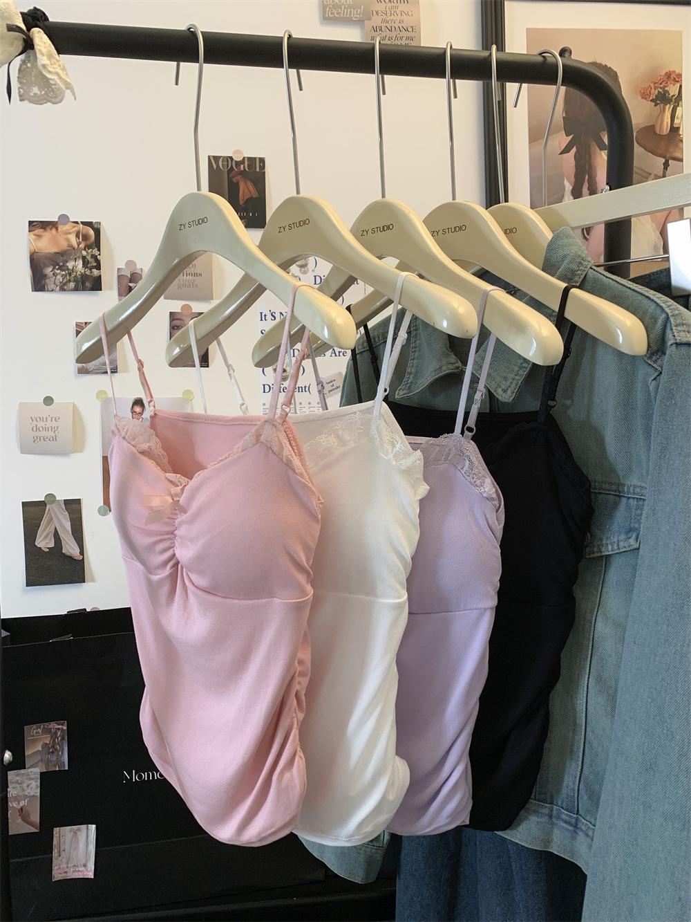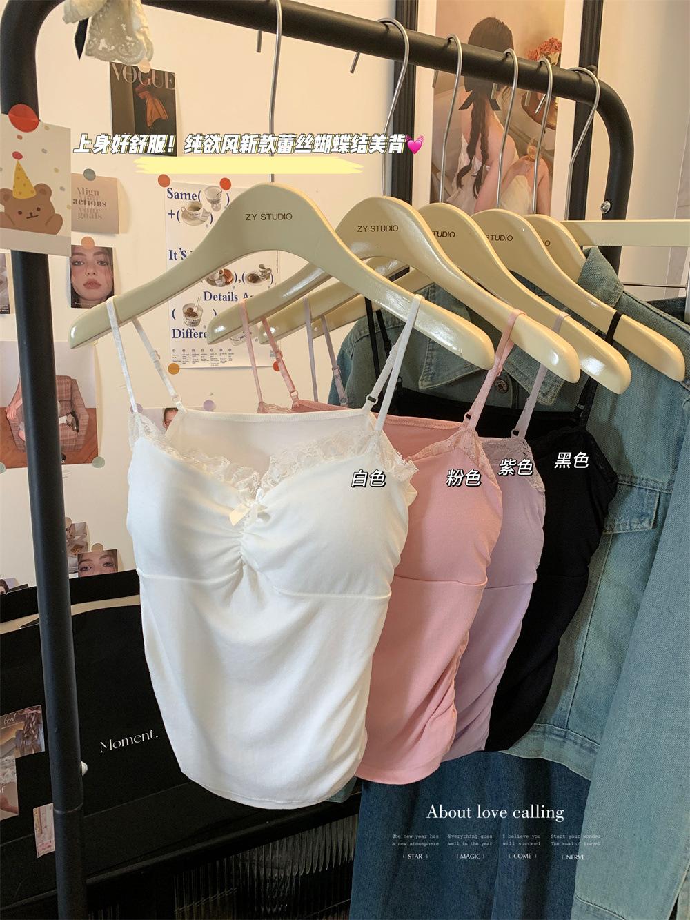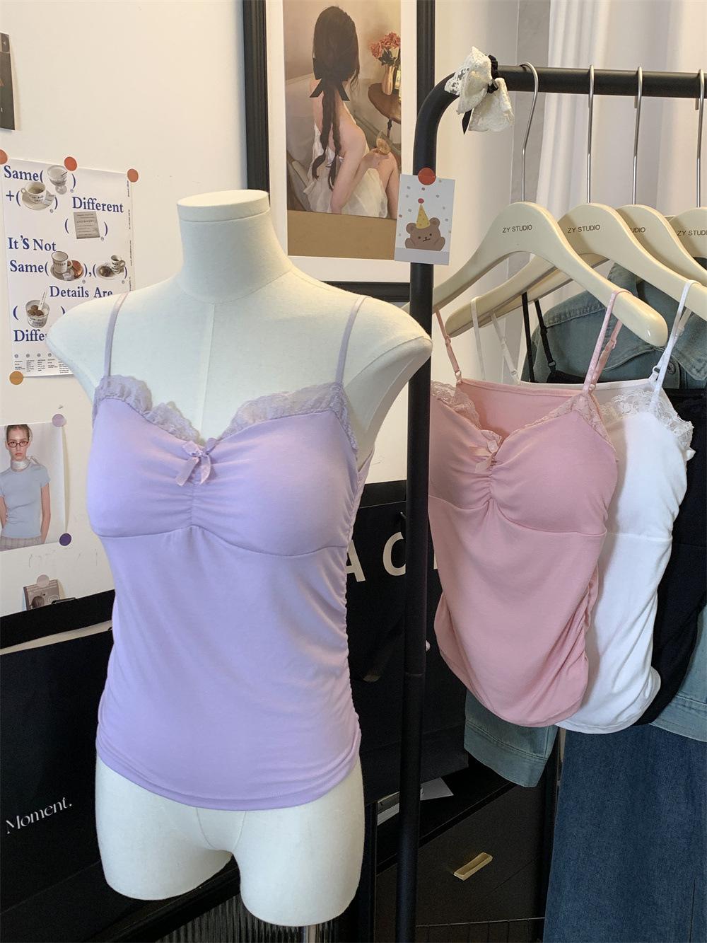Compra Chaleco de encaje con lazo plisado y espalda descubierta con almohadilla para el pecho y tirantes ajustables para mujer, primavera y verano al por mayor en Joom.pro