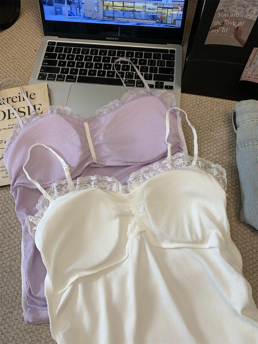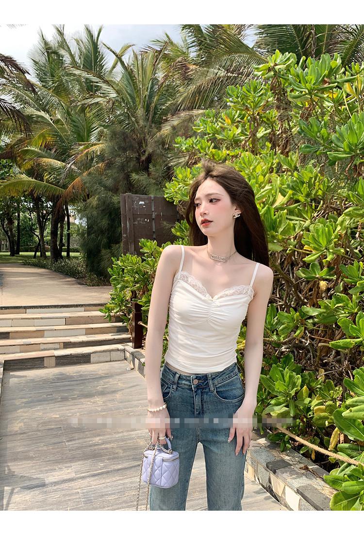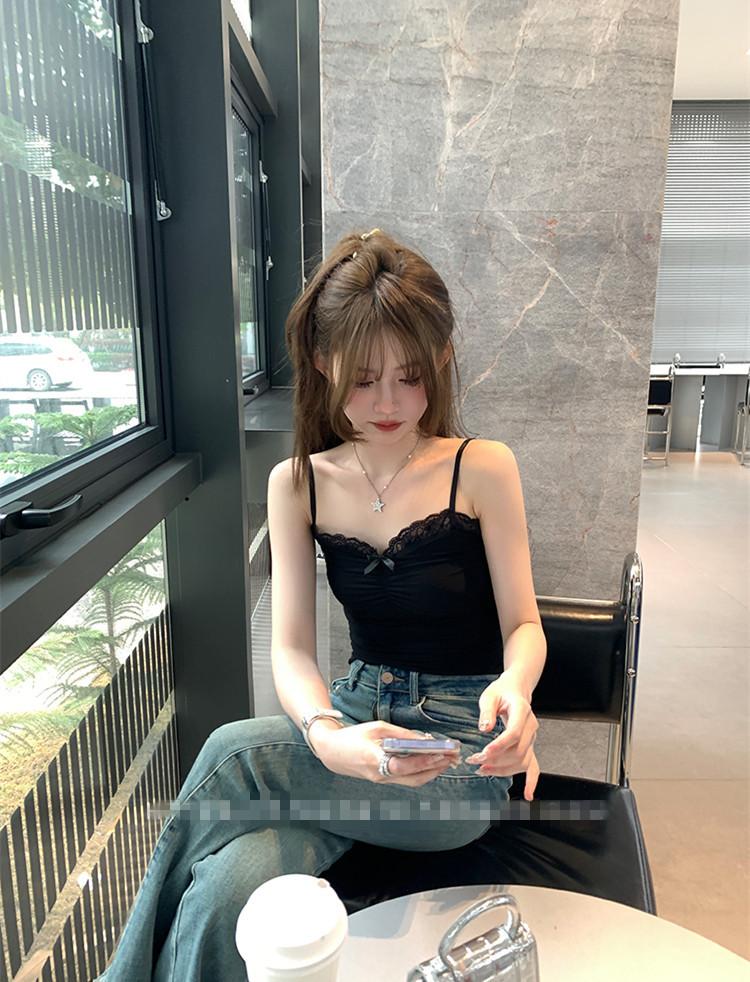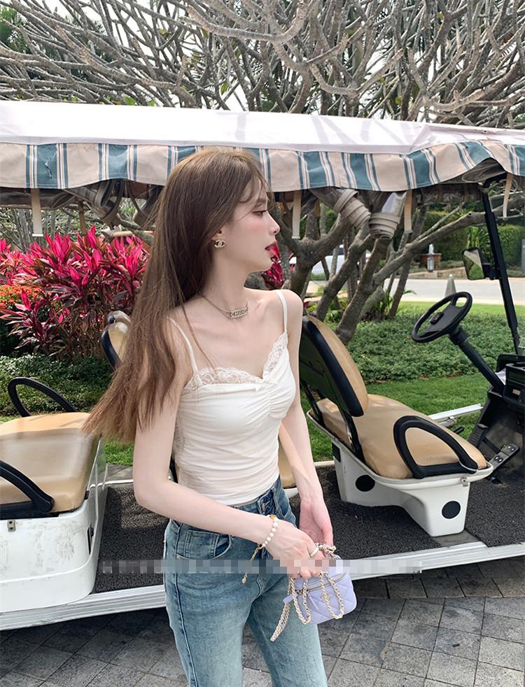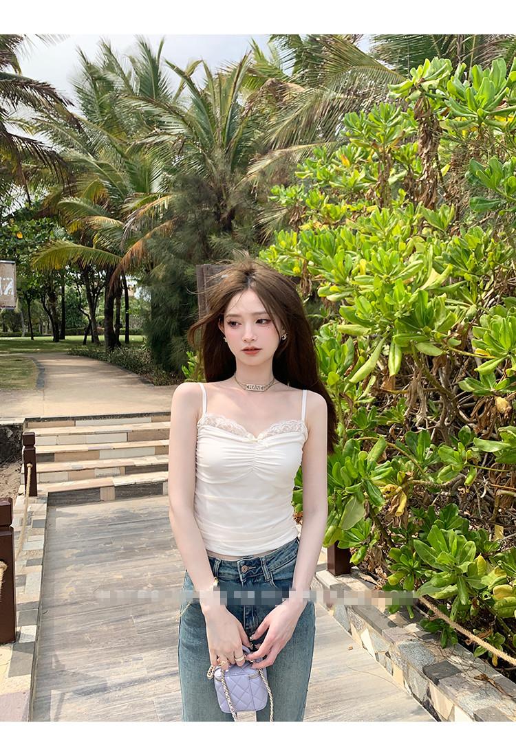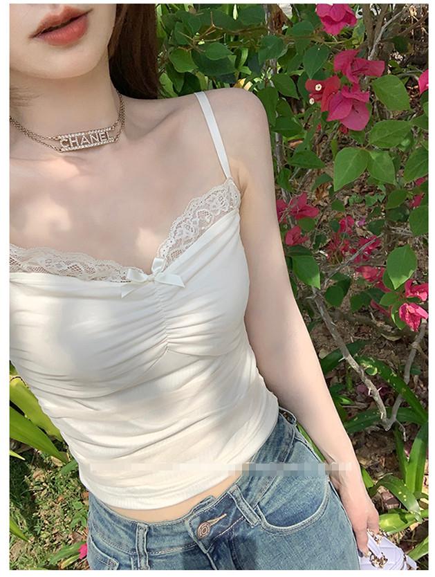 Compra Chaleco de encaje con lazo plisado y espalda descubierta con almohadilla para el pecho y tirantes ajustables para mujer, primavera y verano al por mayor en Joom.pro