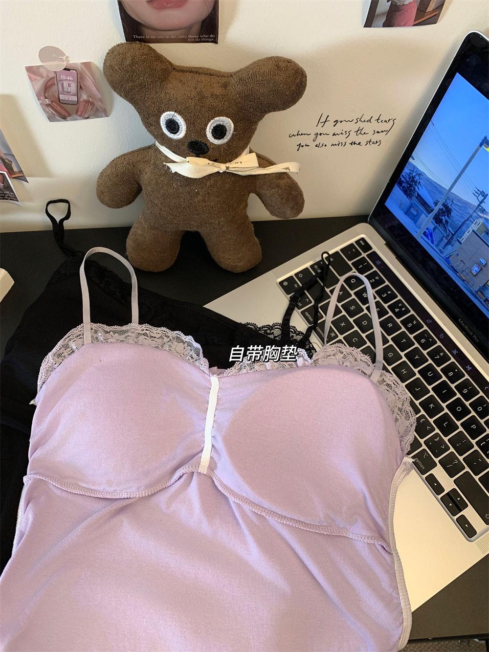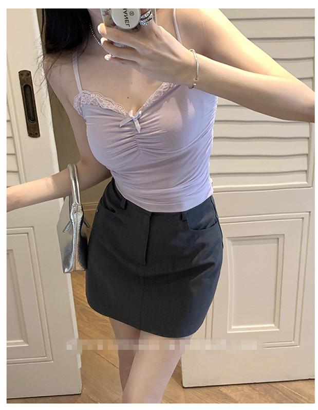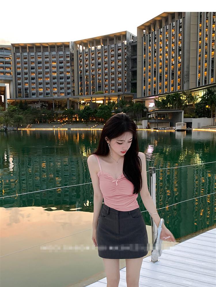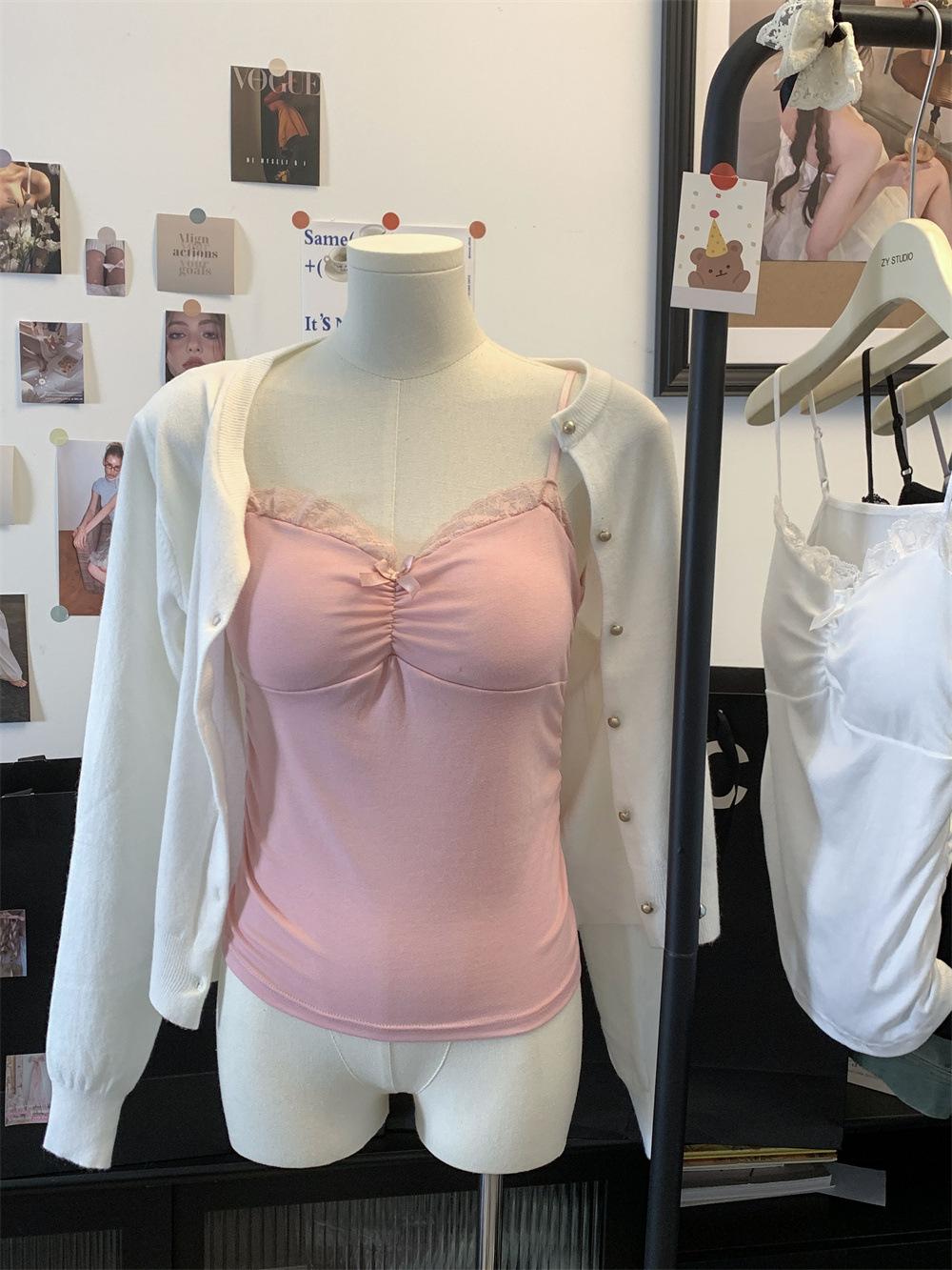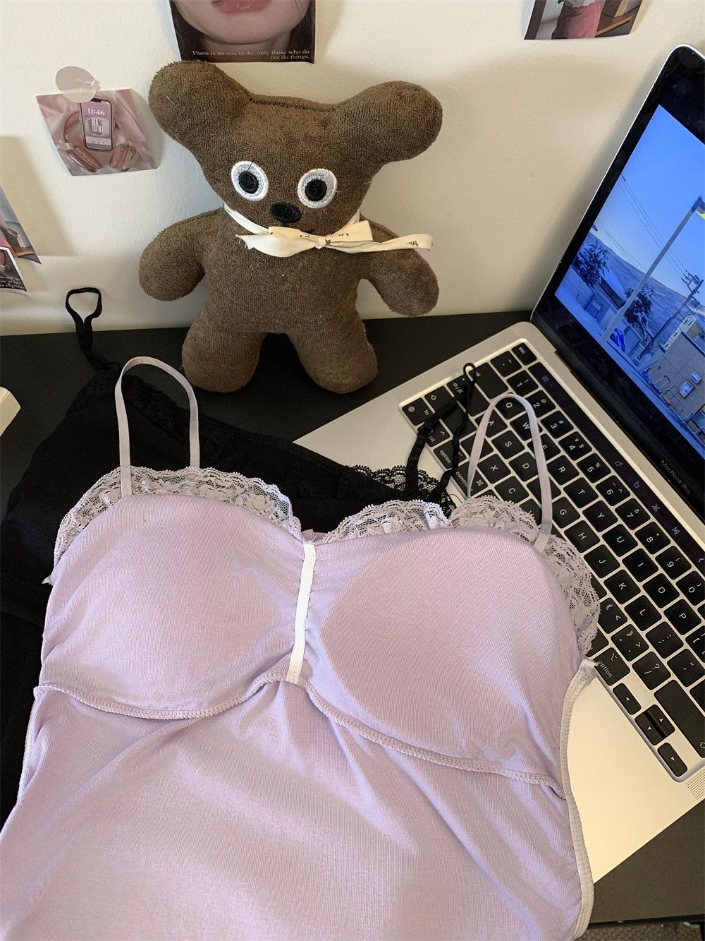 Compra Chaleco de encaje con lazo plisado y espalda descubierta con almohadilla para el pecho y tirantes ajustables para mujer, primavera y verano al por mayor en Joom.pro