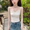 Chaleco de encaje con lazo plisado y espalda descubierta con almohadilla para el pecho y tirantes ajustables para mujer, primavera y verano
