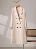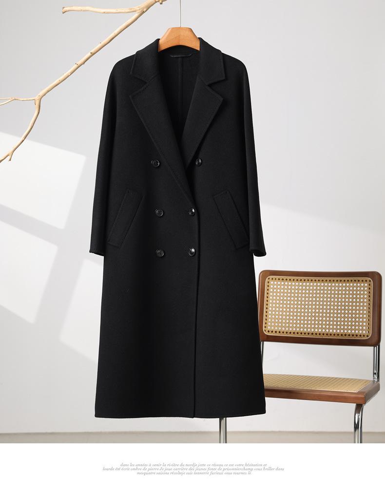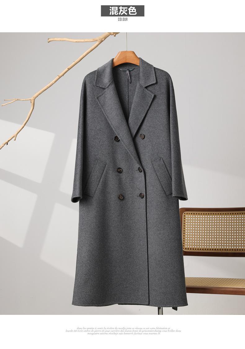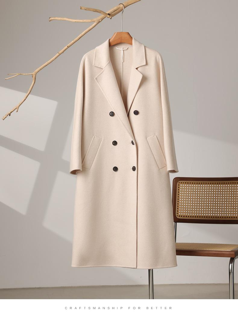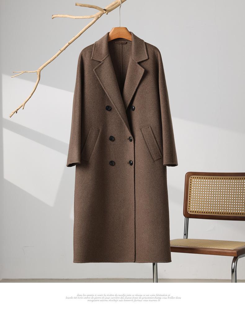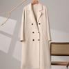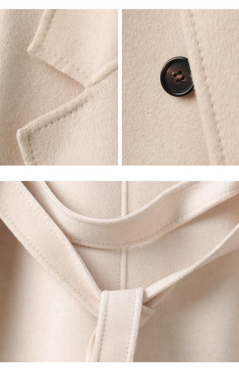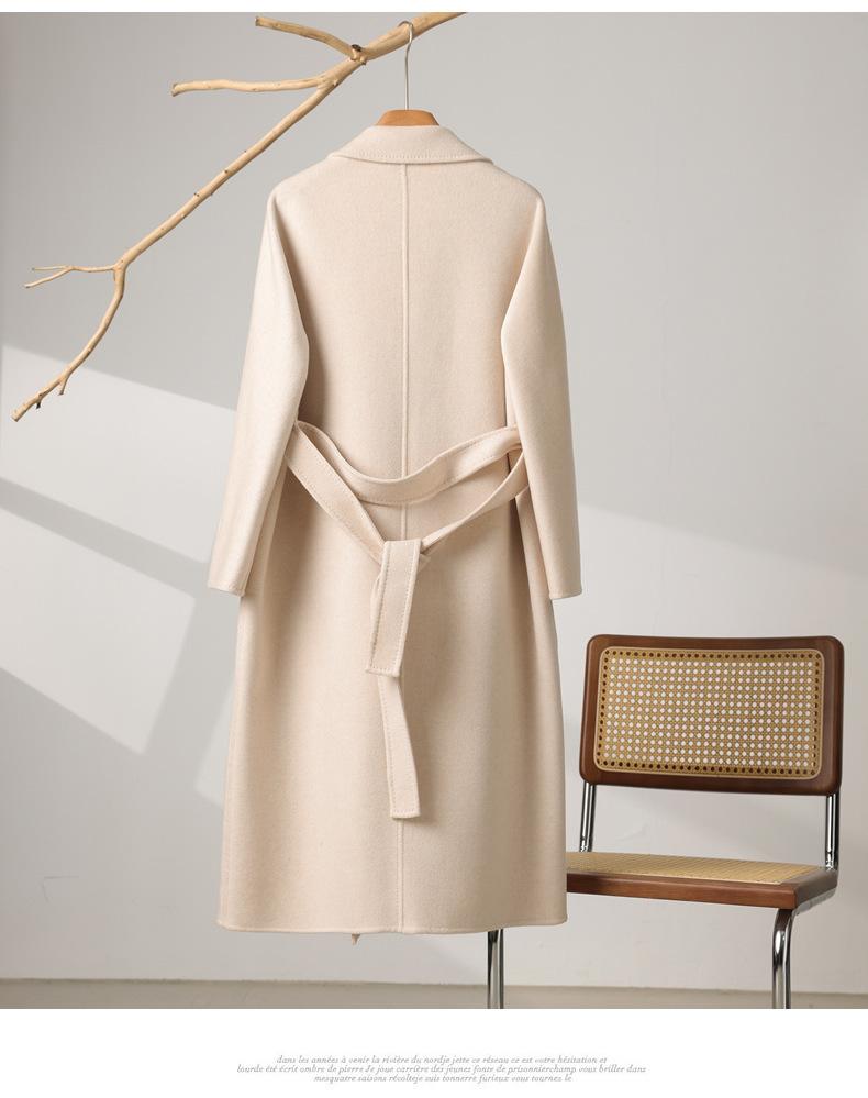 Abrigo de cachemira 100% puro de doble cara, largo medio, cruzado, holgado, de cachemira, de lana con cordones para mujer.