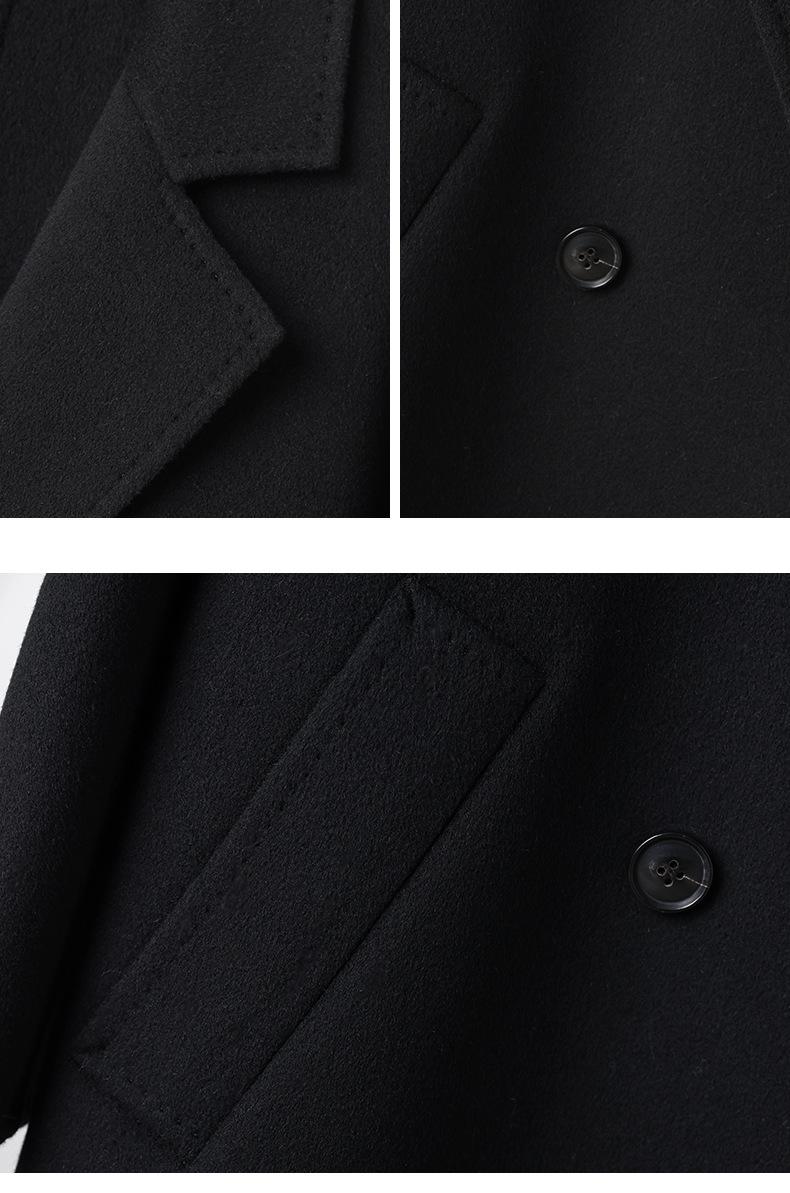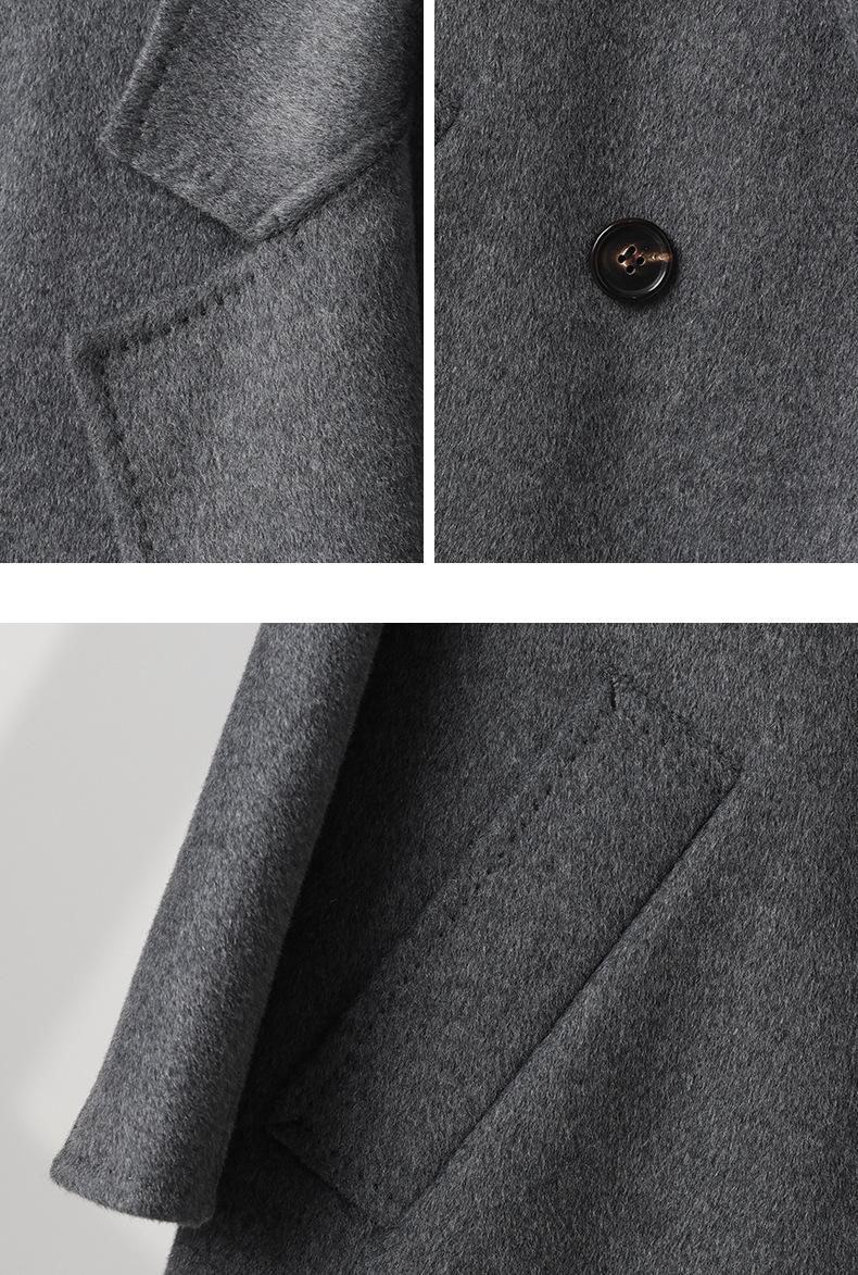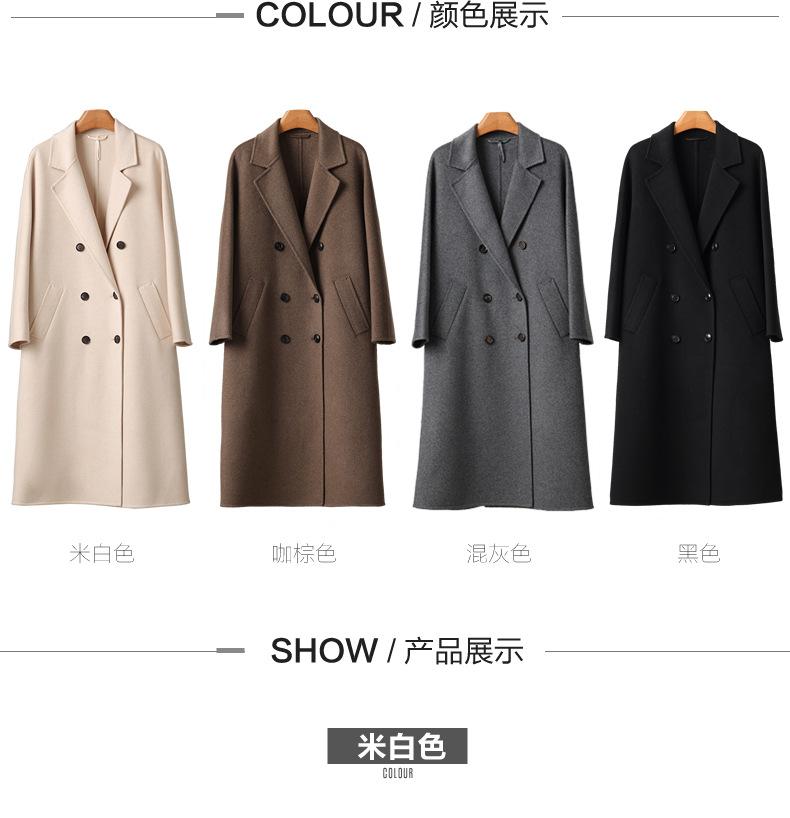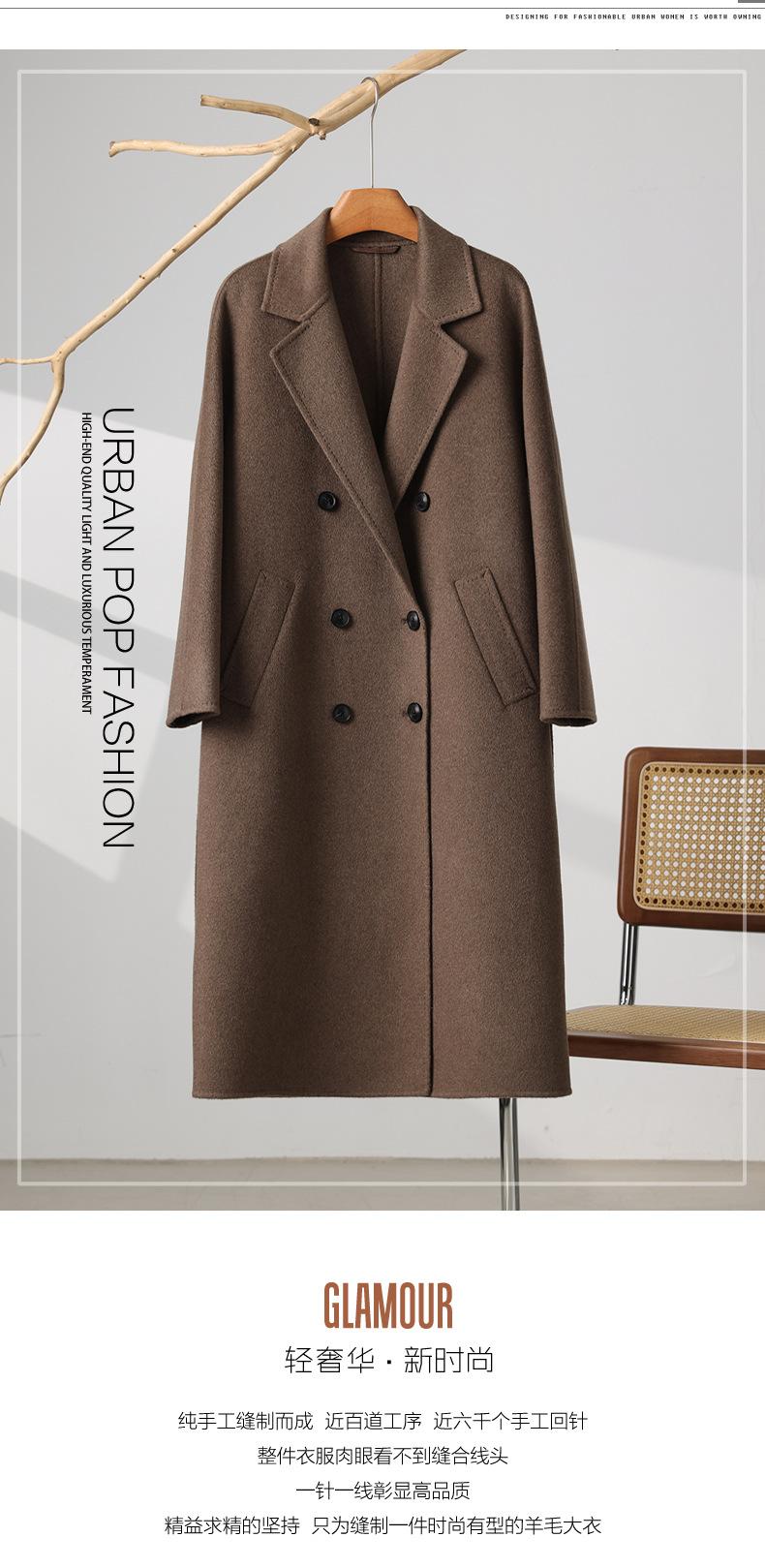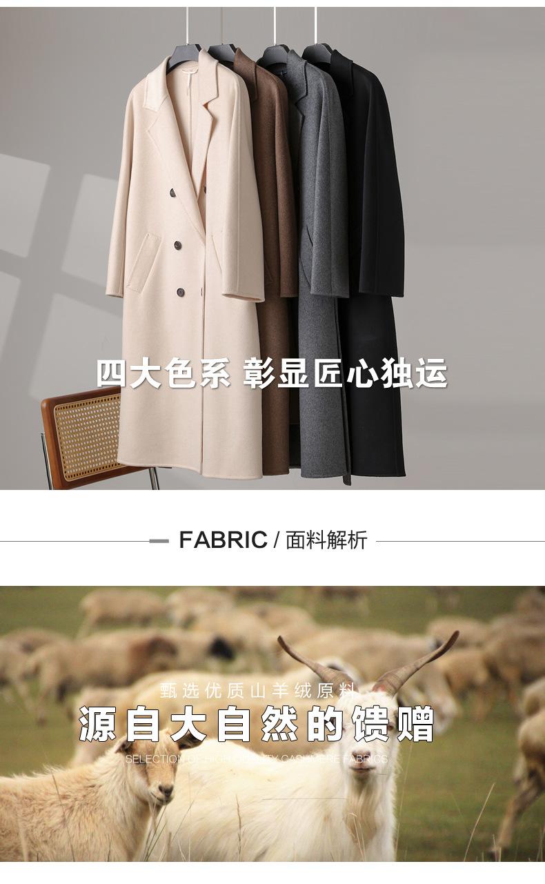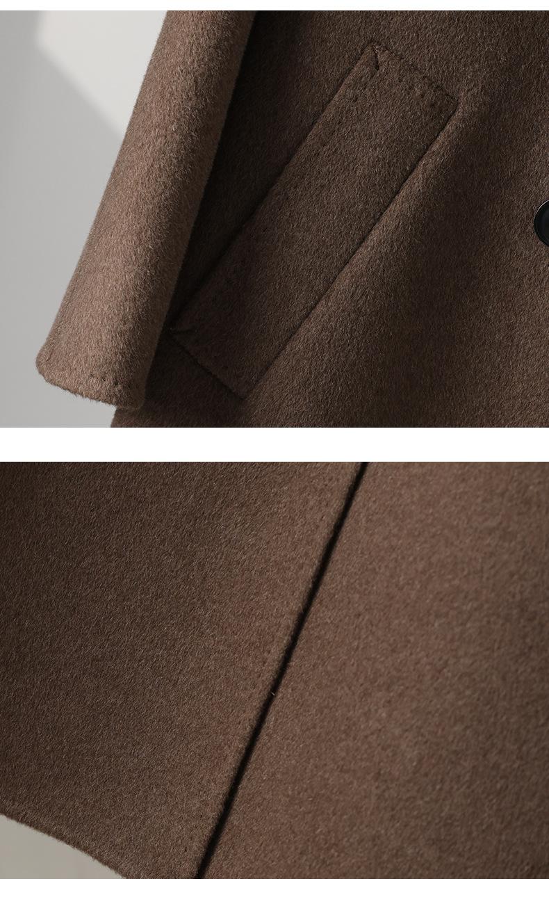 Abrigo de cachemira 100% puro de doble cara, largo medio, cruzado, holgado, de cachemira, de lana con cordones para mujer.