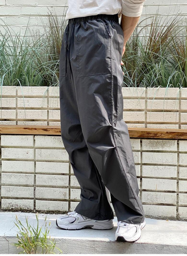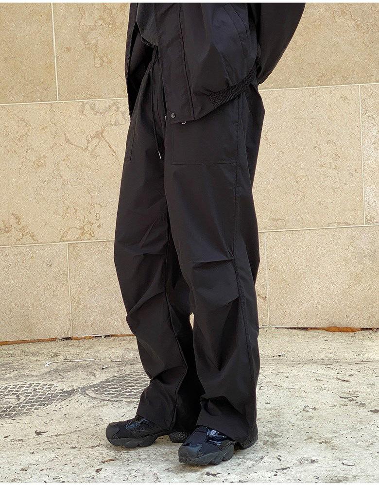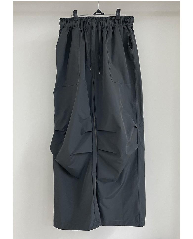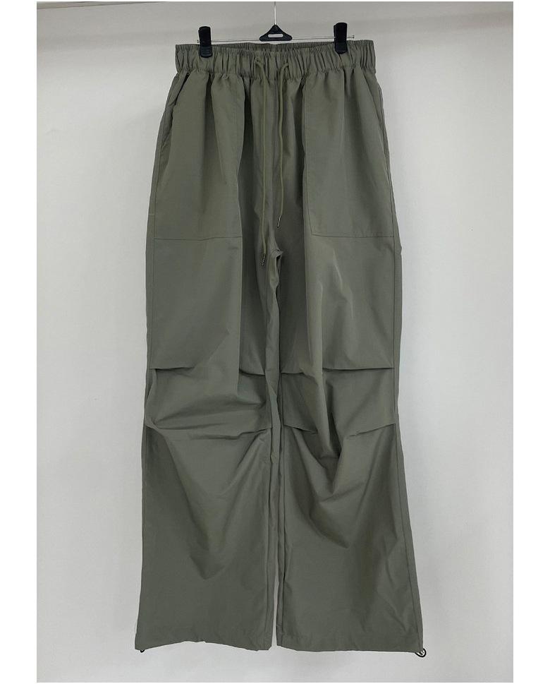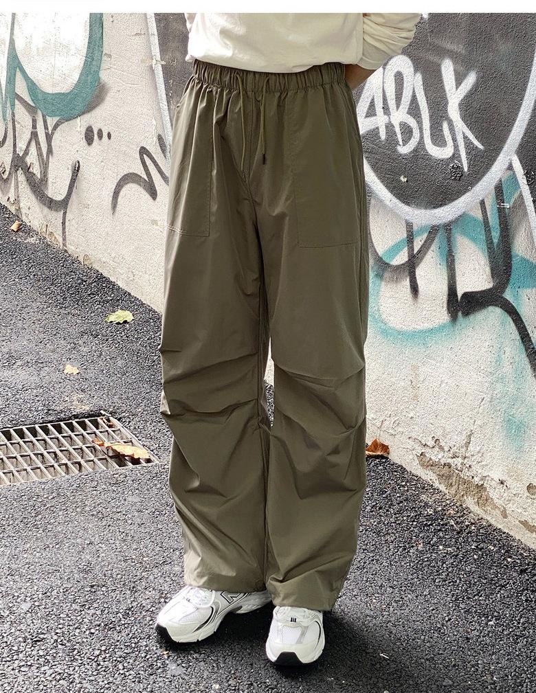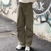 Pantalones deportivos casuales rectos y sencillos de estilo coreano 2025 para hombres y mujeres, pantalones de paracaídas vintage de estilo americano, pantalones plisados sueltos de pierna ancha.