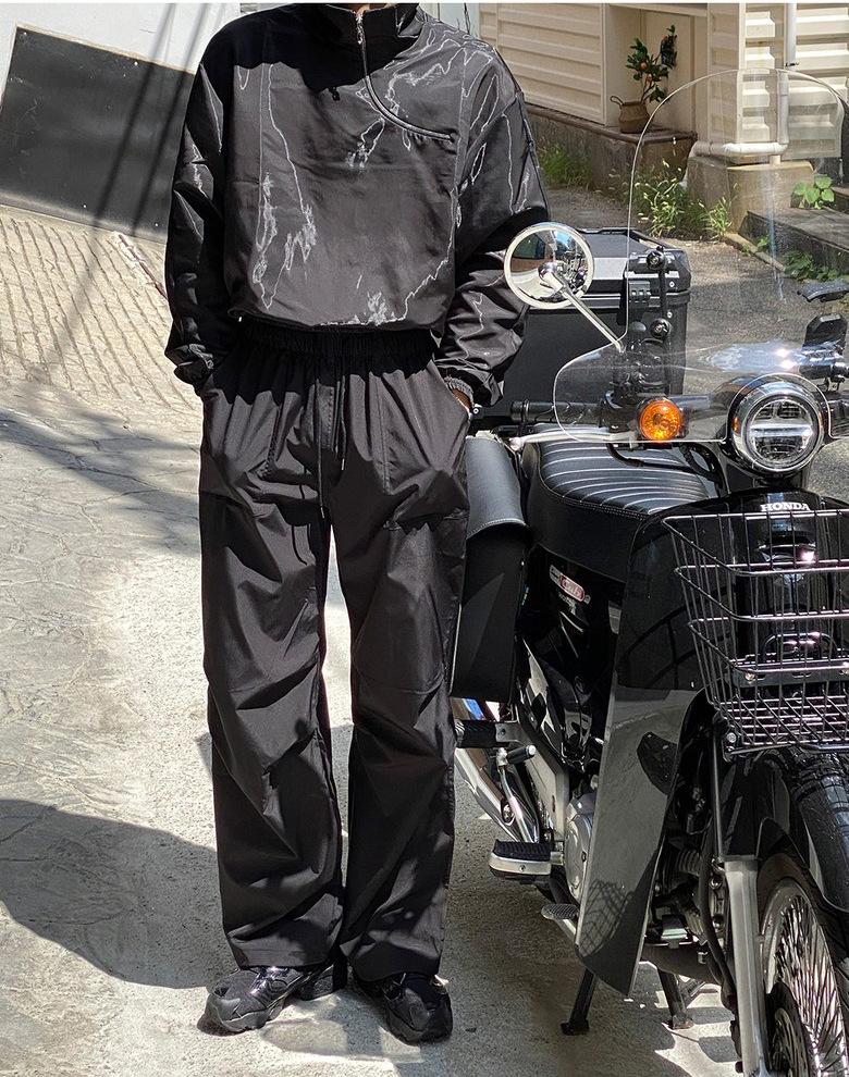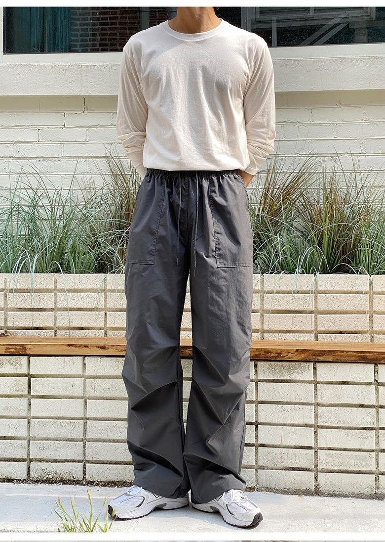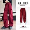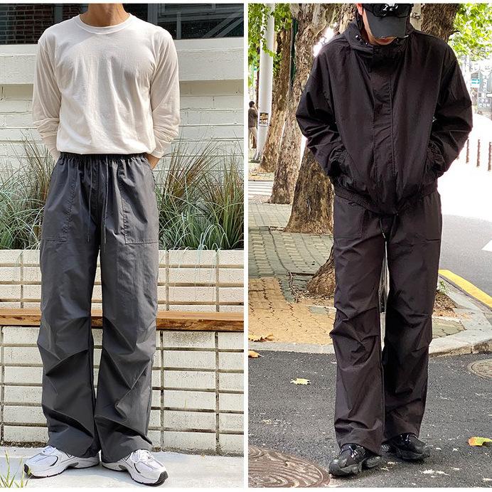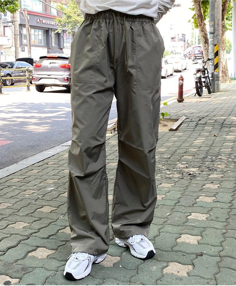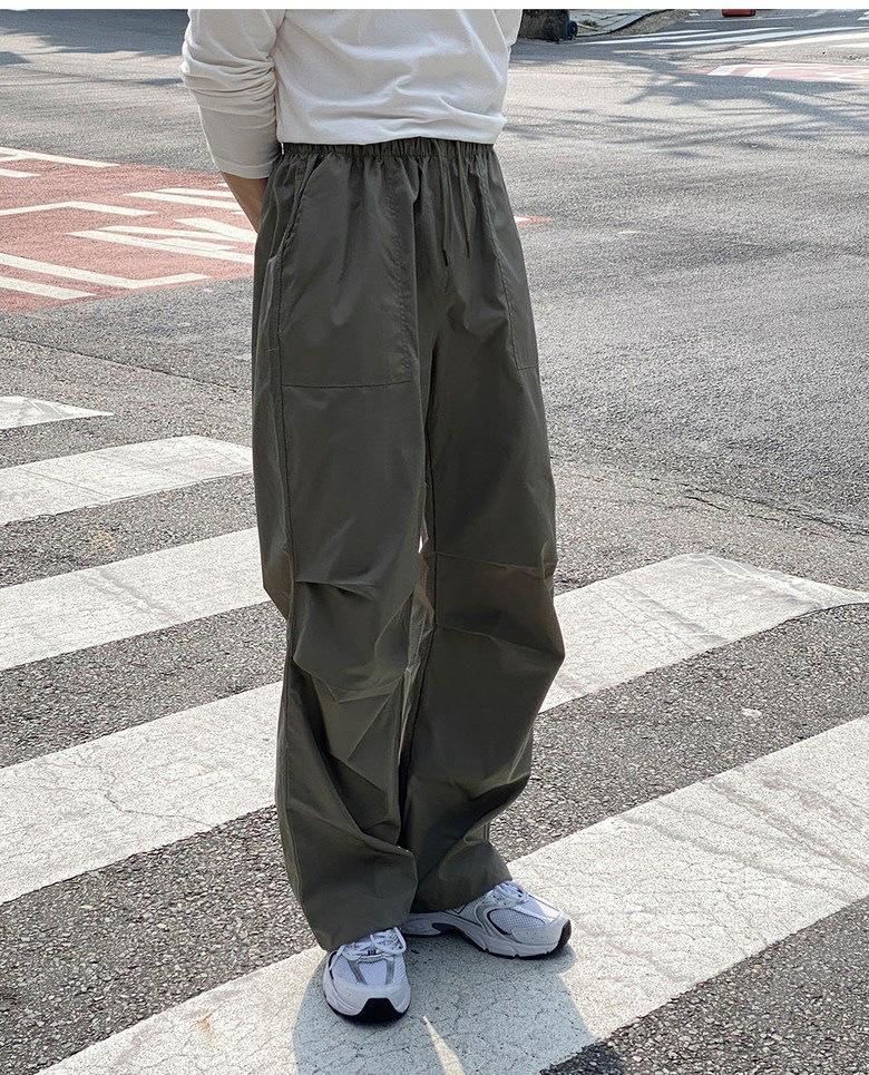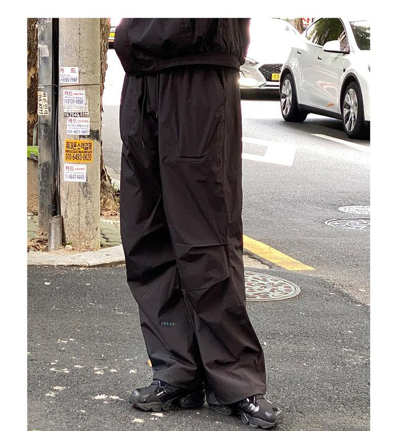 Pantalones deportivos casuales rectos y sencillos de estilo coreano 2025 para hombres y mujeres, pantalones de paracaídas vintage de estilo americano, pantalones plisados sueltos de pierna ancha.