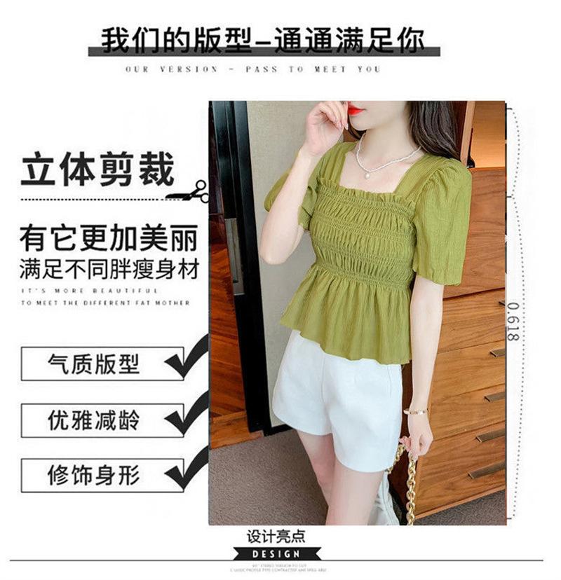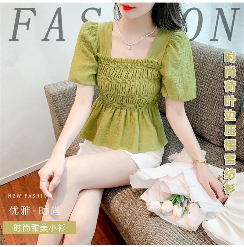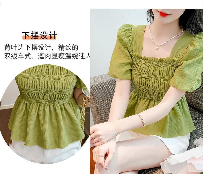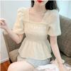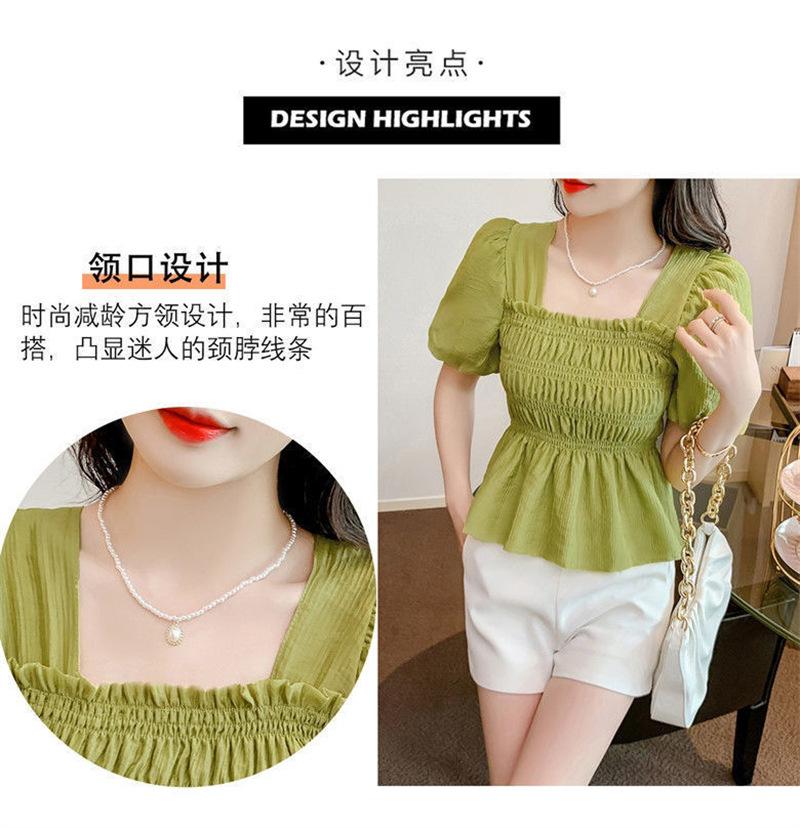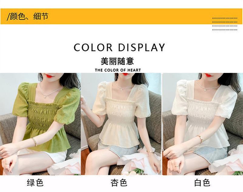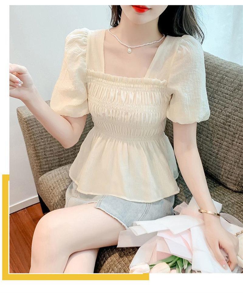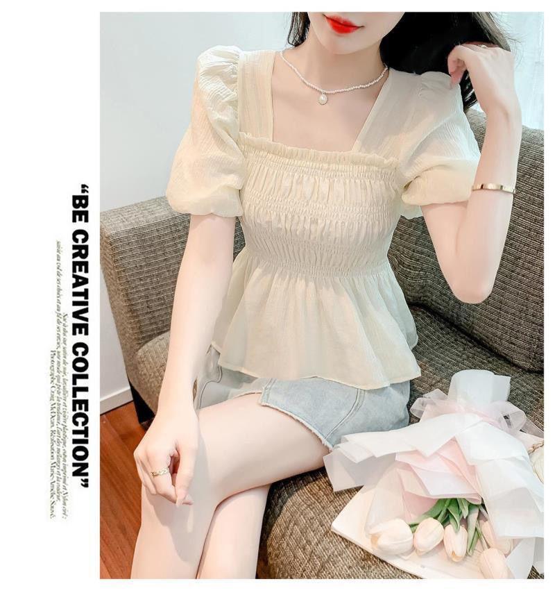 Compra Camisa de Chifón de Manga Corta con Cuello Cuadrado Francés para Mujer Verano Nuevo Diseño Nicho Top Corto para Cubrir el Vientre al por mayor en Joom.pro