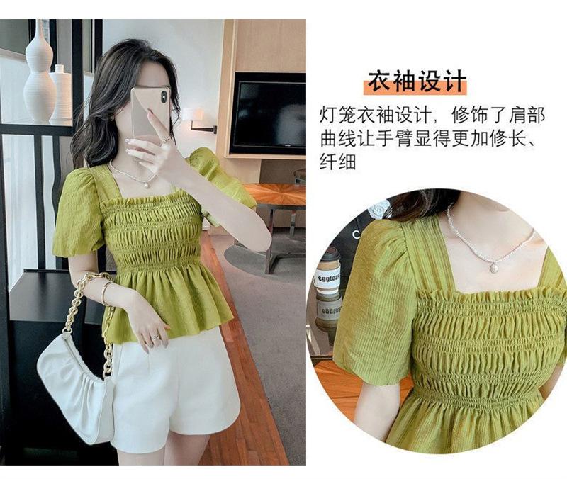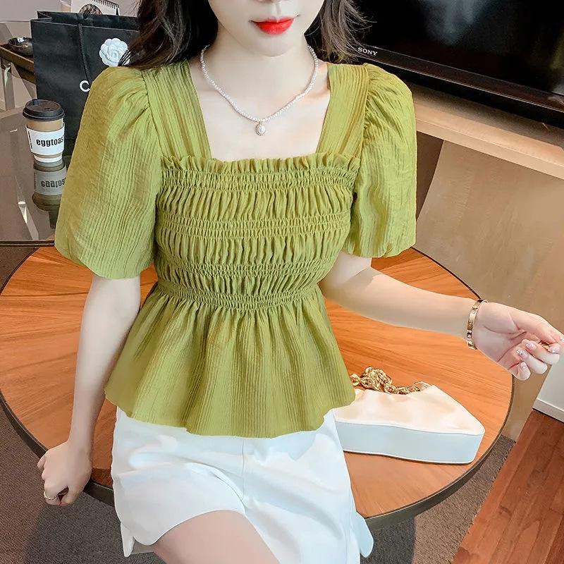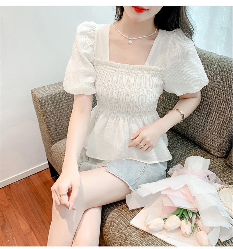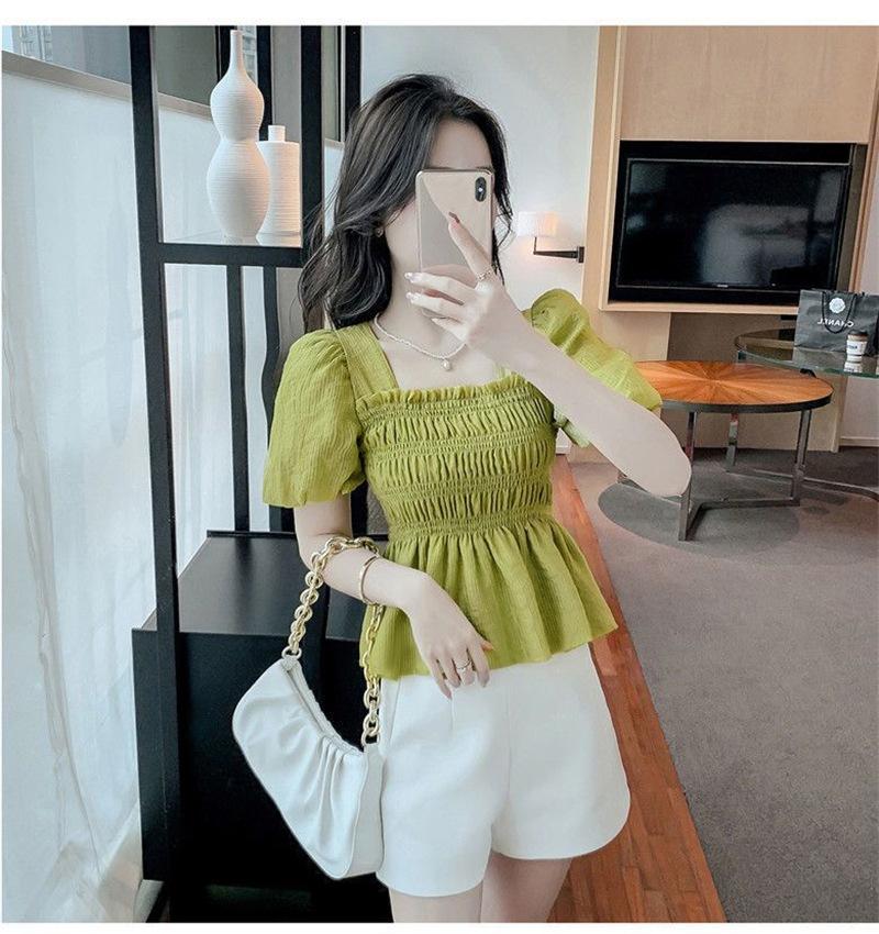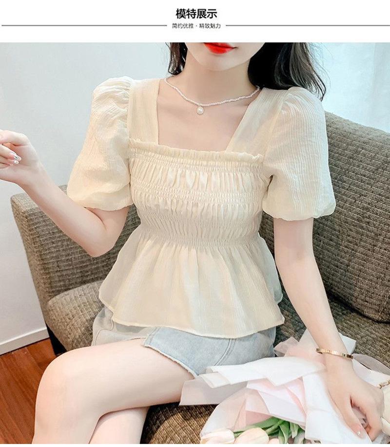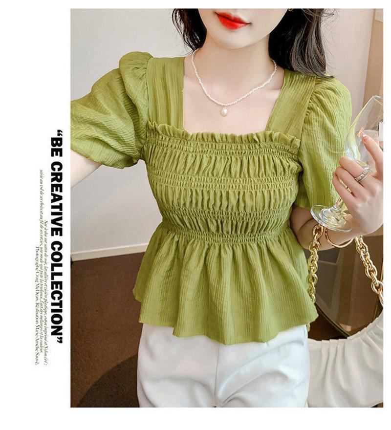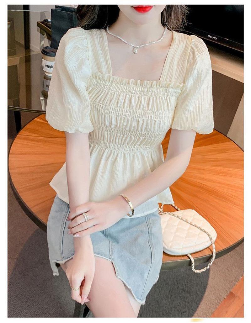 Compra Camisa de Chifón de Manga Corta con Cuello Cuadrado Francés para Mujer Verano Nuevo Diseño Nicho Top Corto para Cubrir el Vientre al por mayor en Joom.pro