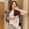 Camiseta de Manga Corta Estampada de Verano 2025 para Mujer al Por Mayor Camiseta Interior Blanca Casual de Estilo Coreano con Cuello Redondo para Mujer