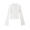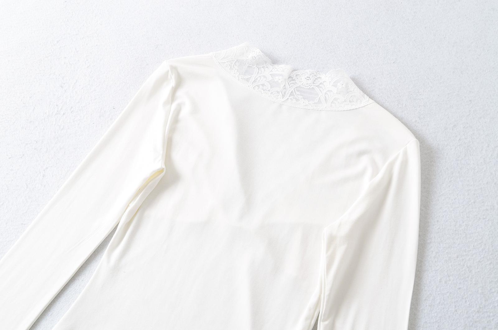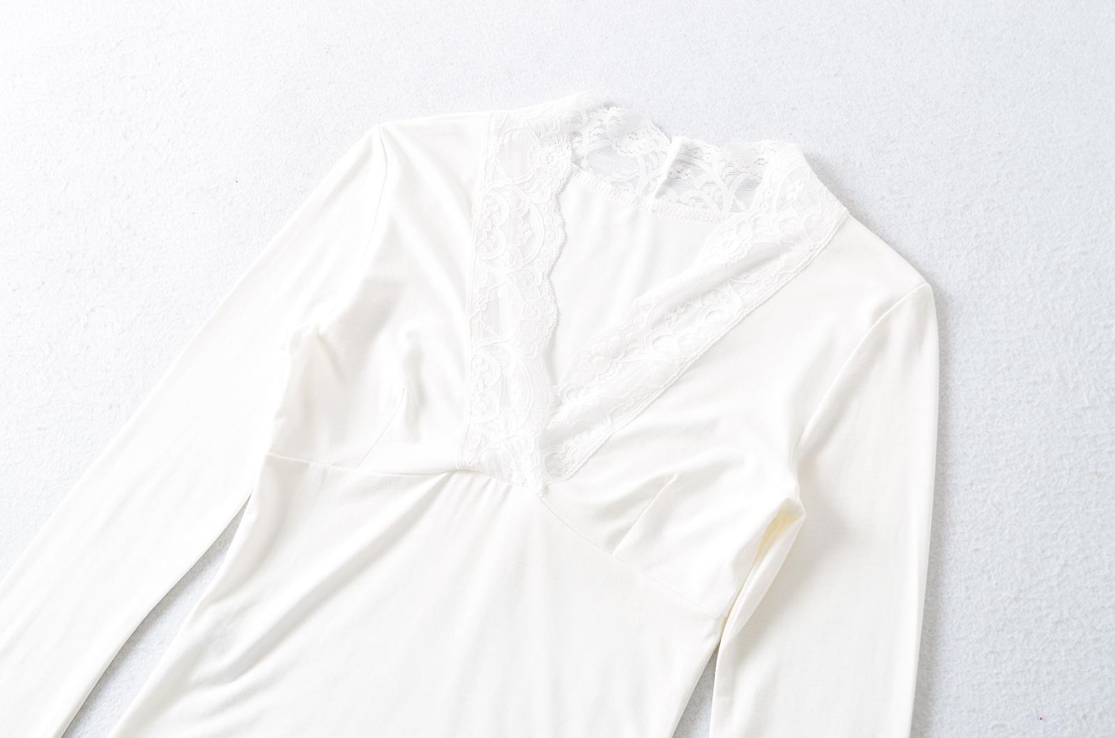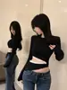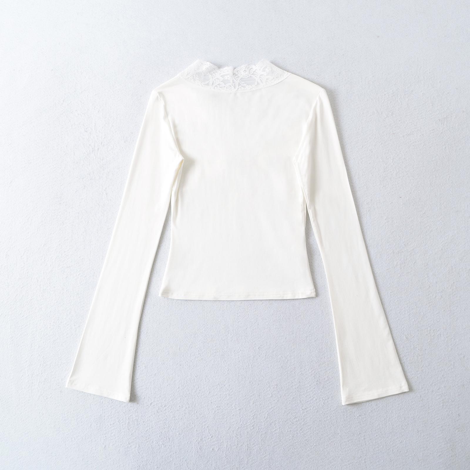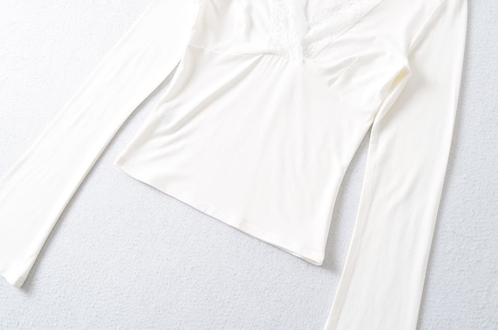 Camiseta corta elegante, ajustada y adelgazante, de manga larga, con cuello en V y encaje estilo dulce y picante para mujer, primavera 2025