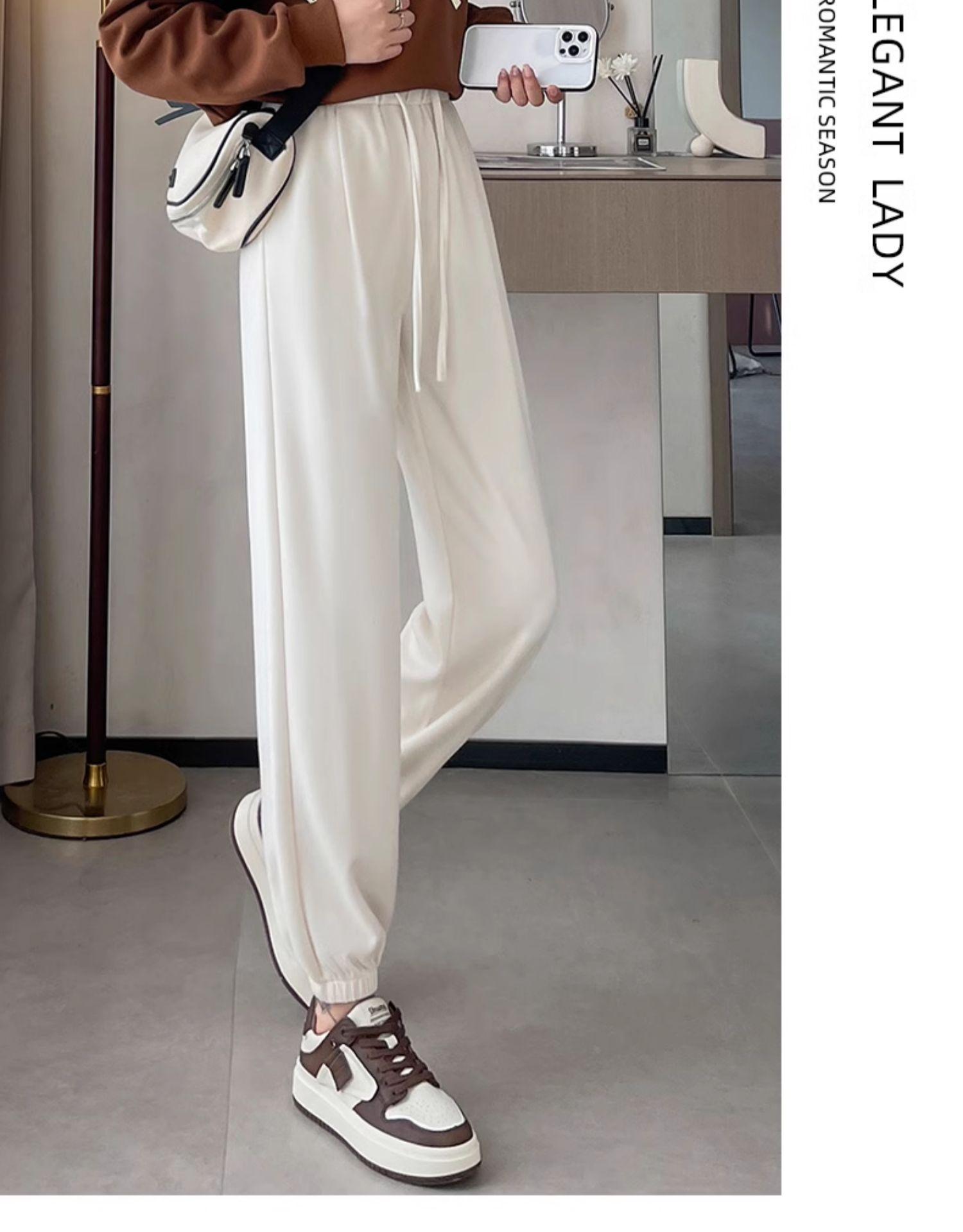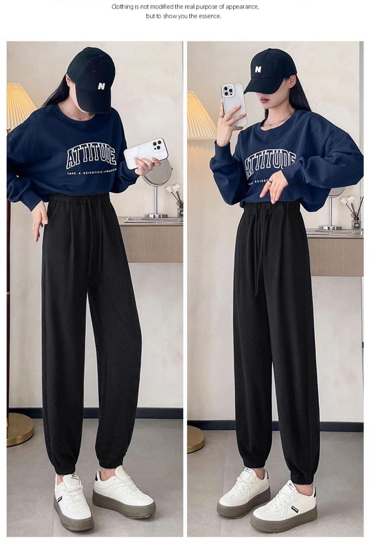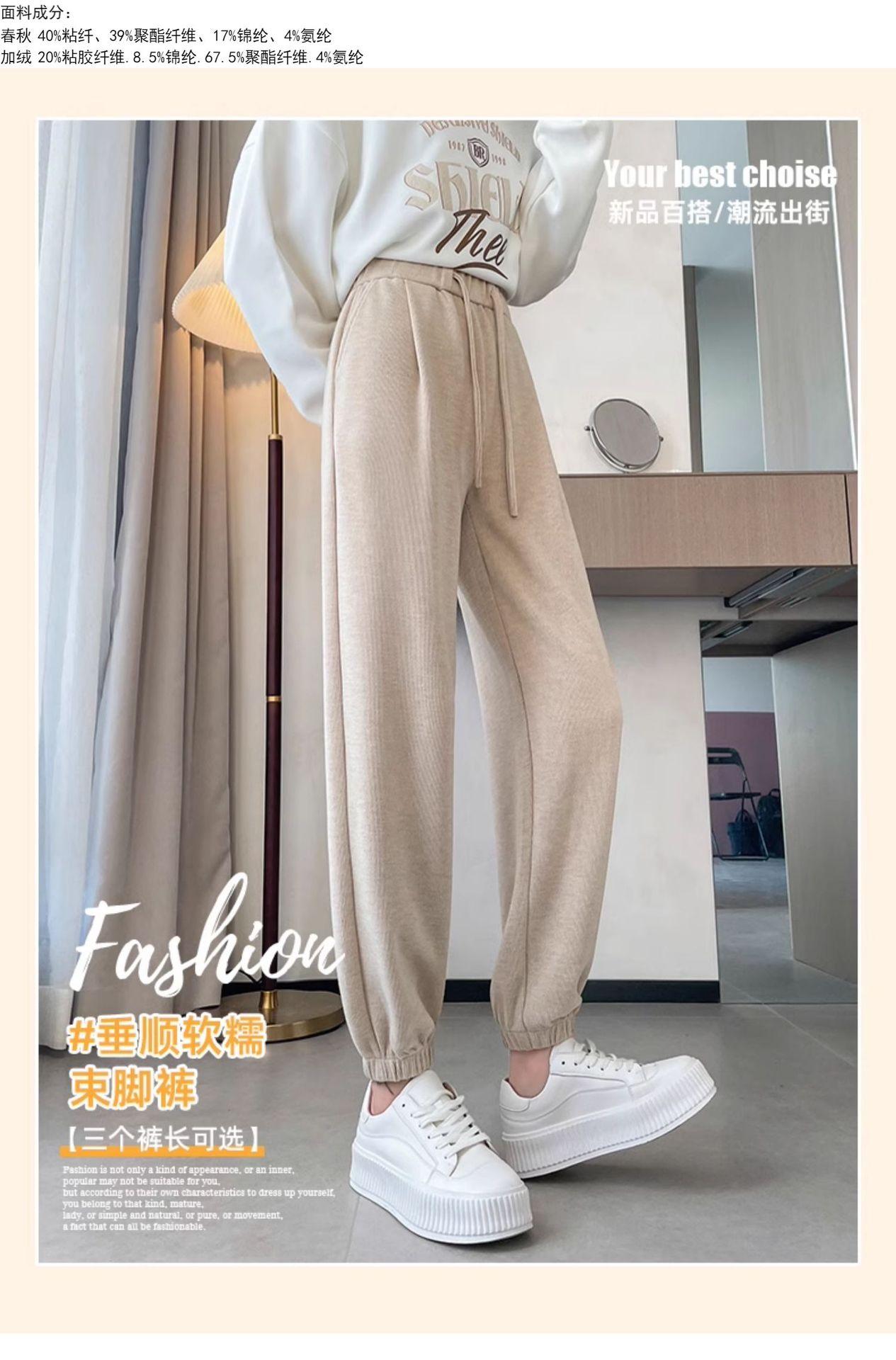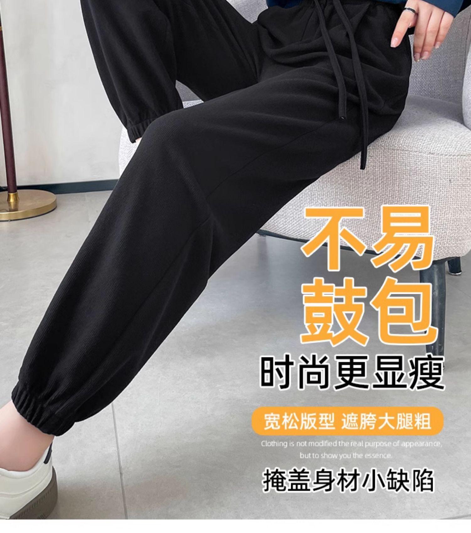 Pantalones casuales de punto de talle alto para mujer de talla grande, pantalones bombachos adelgazantes nuevos para primavera/otoño 2025, pantalones deportivos jogger para mujer