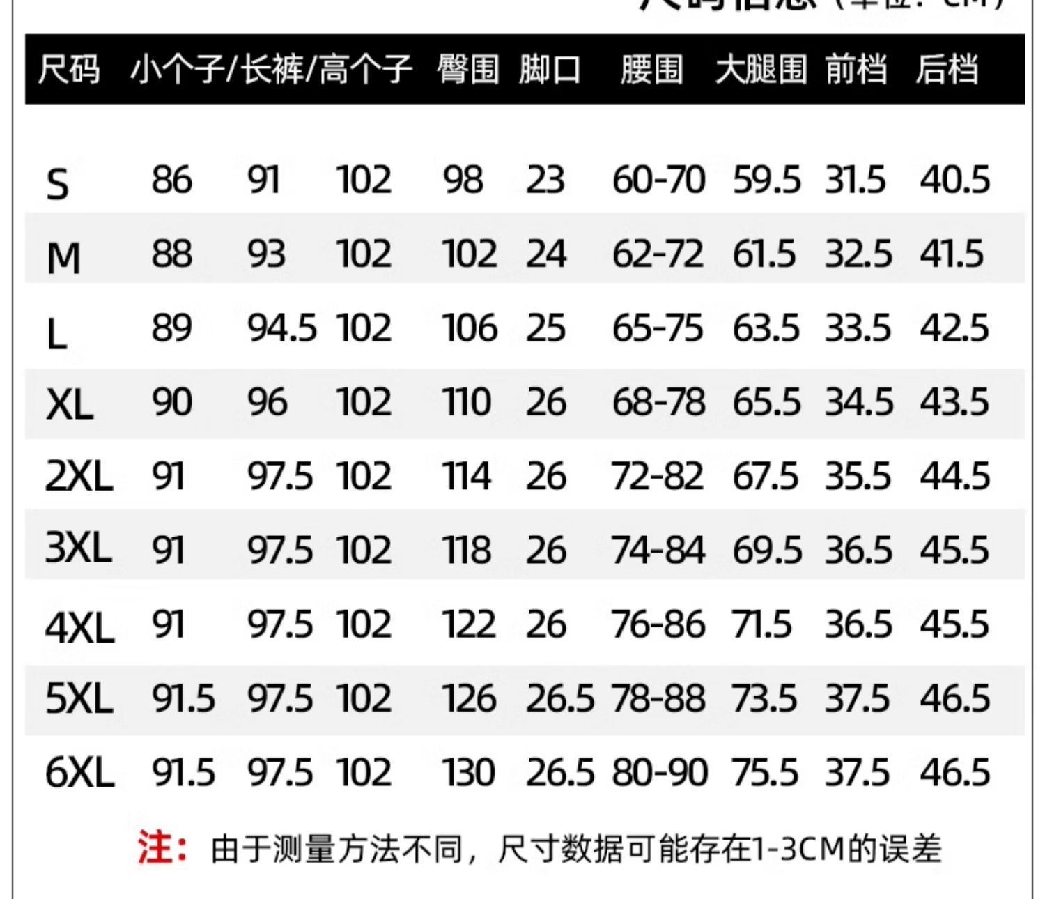 S, M, L, XL, XXL, 3XL, 4XL, 5XL, 6XL