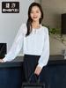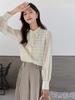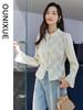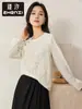 Zhen Xi - Camisa de manga larga con cuello alto y encaje calado para mujer, estilo informal, SQ592