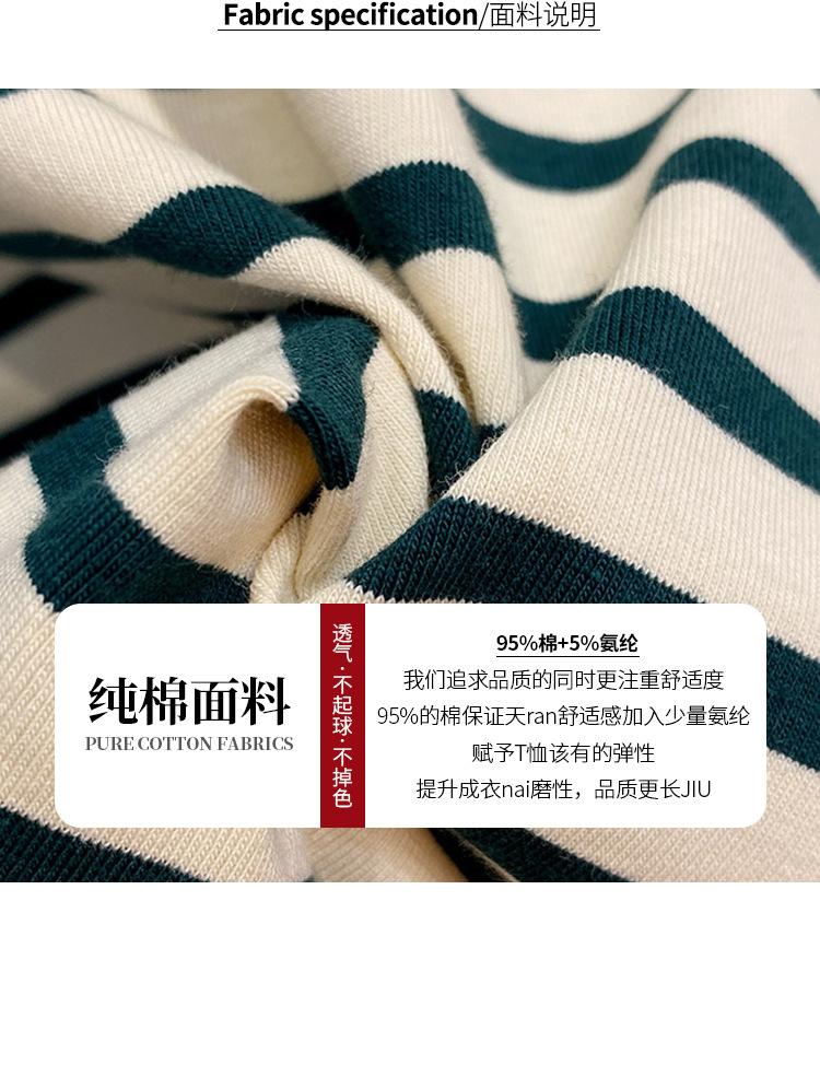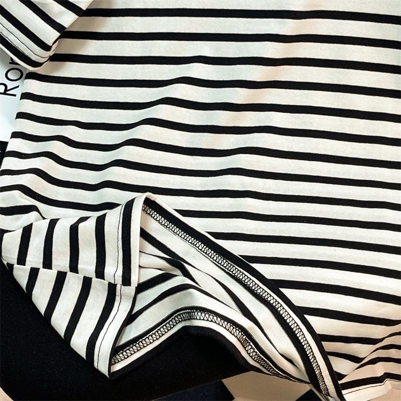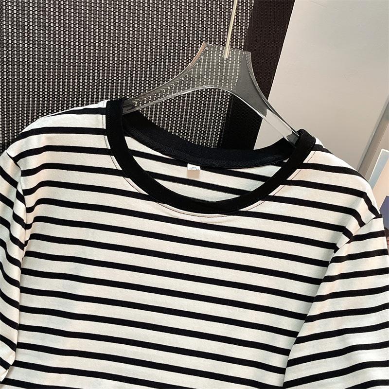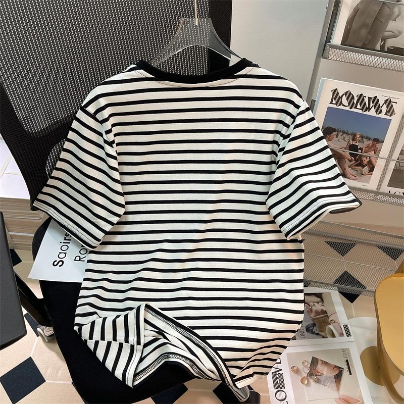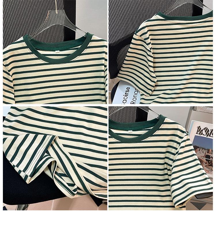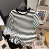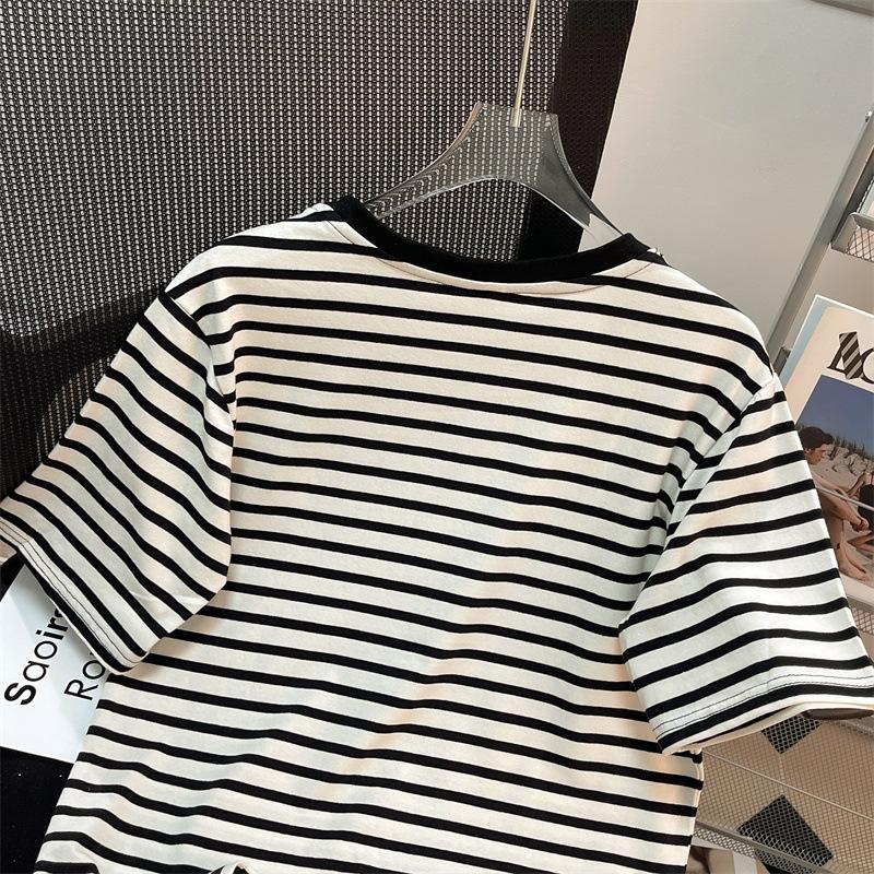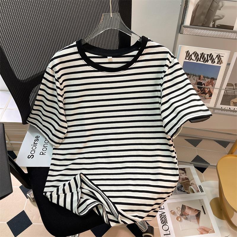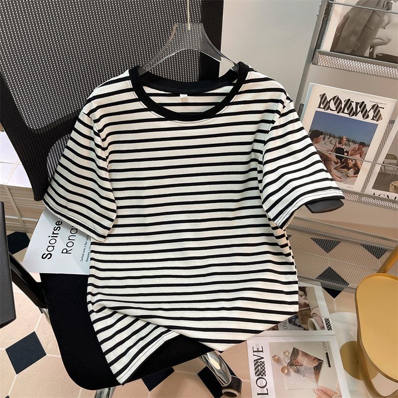 Camiseta de manga corta para mujer, fina, de verano 2024, nueva, holgada, de algodón puro, con rayas verdes, para mujer