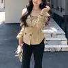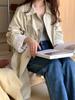 Gabardina Casual para Mujer, Estilo Nuevo de Otoño 2025, Patchwork, Sensación de Alta Gama, Simple y Versátil, Abrigo Caqui de Manga Larga