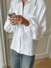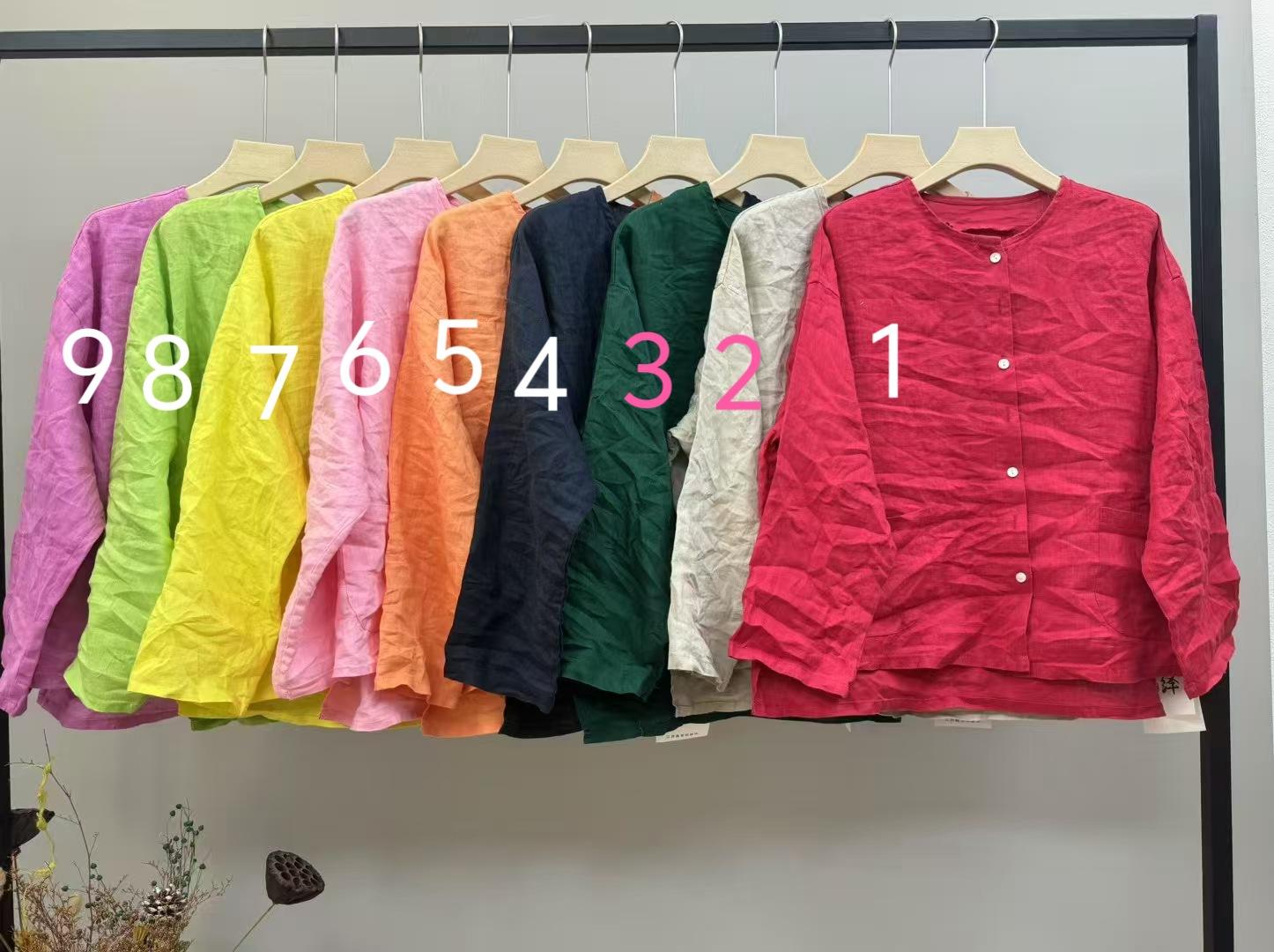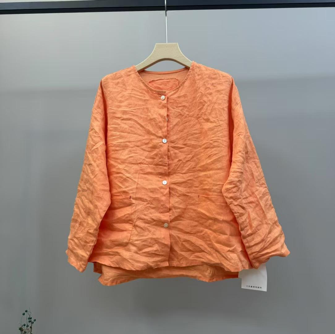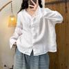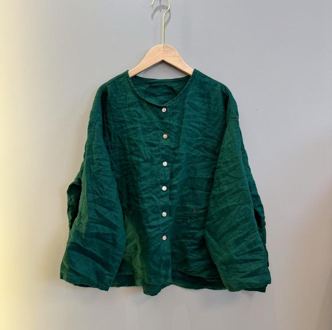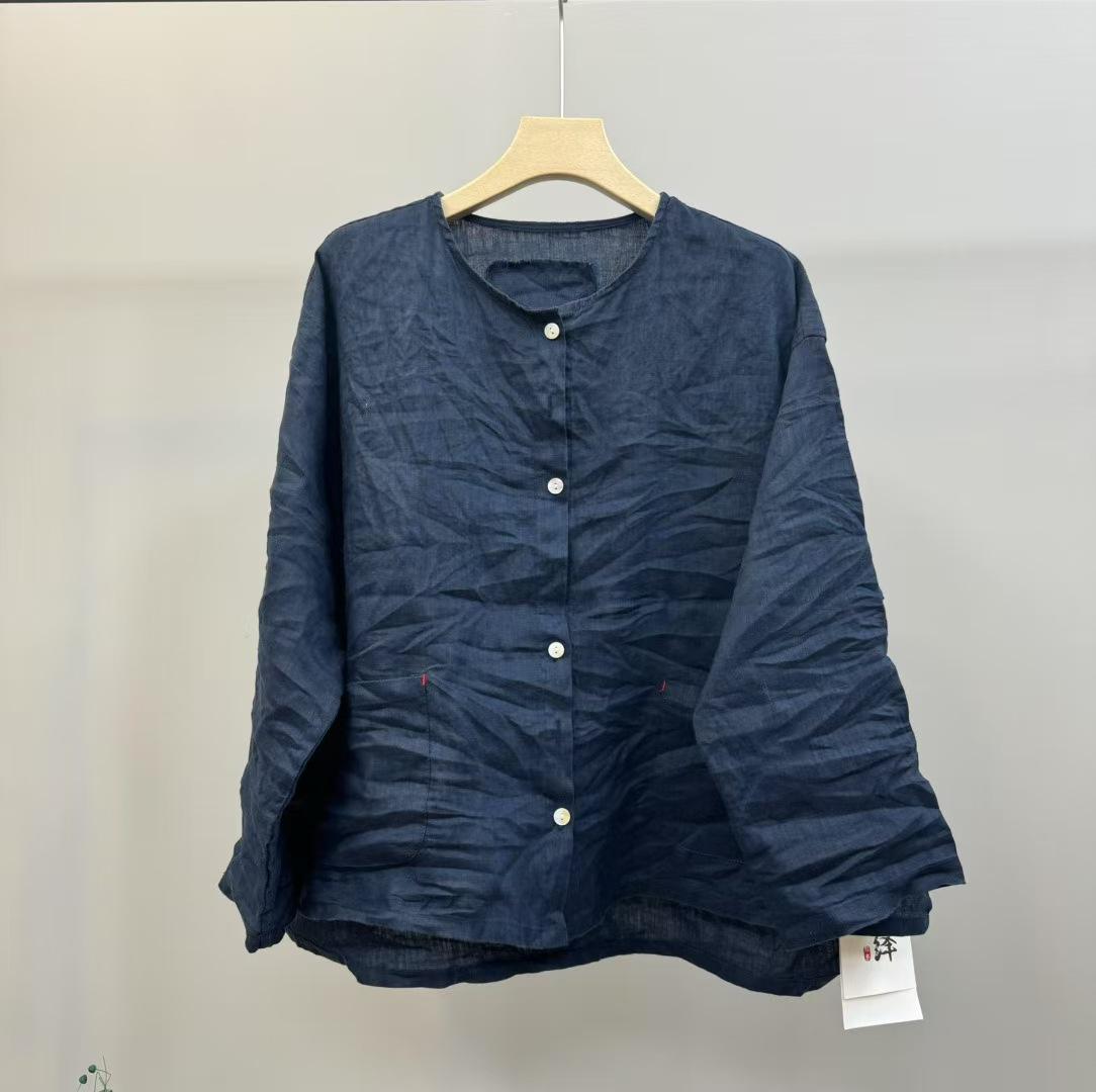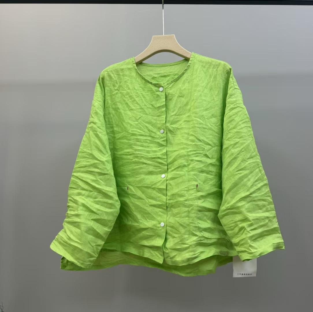Primavera 2025, nuevo cárdigan artístico elegante de cuello redondo en color liso, camisa informal holgada de lino para mujer
