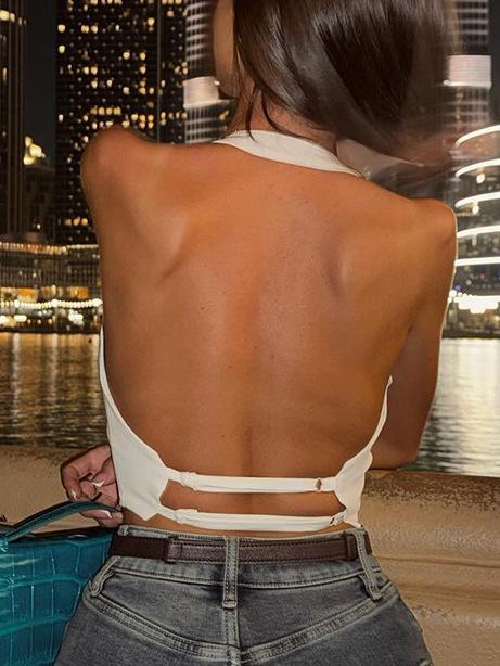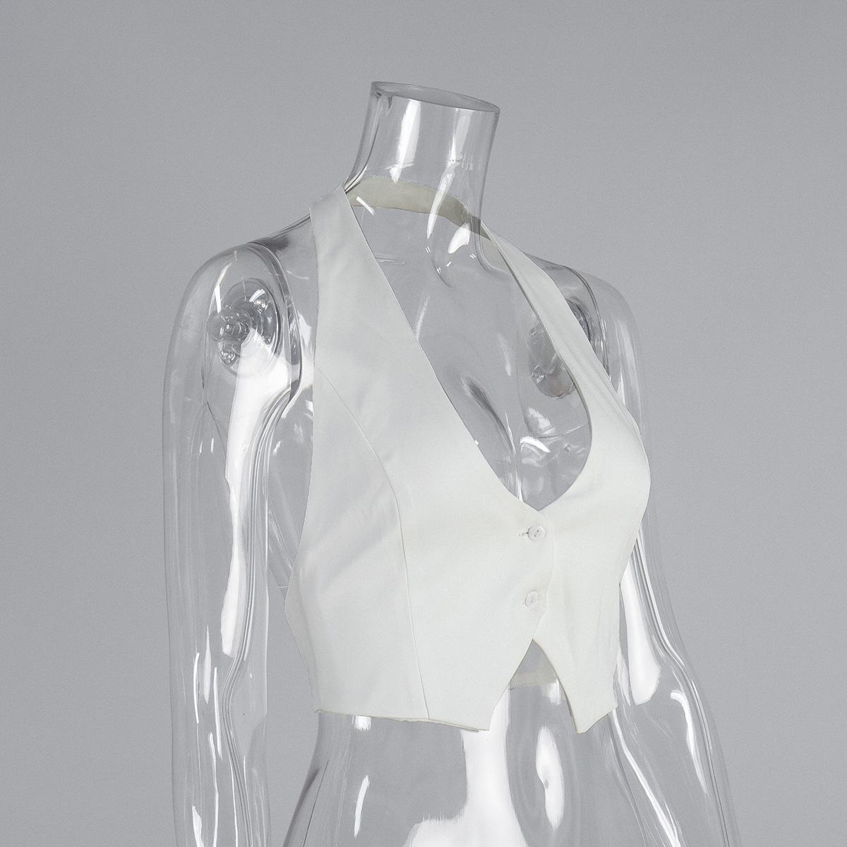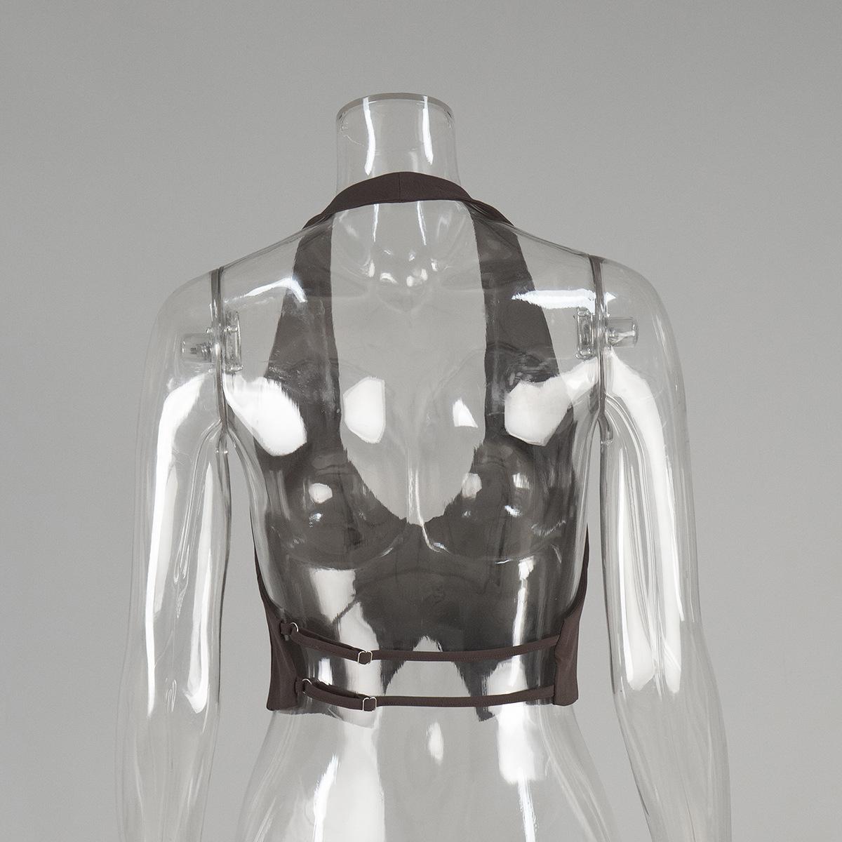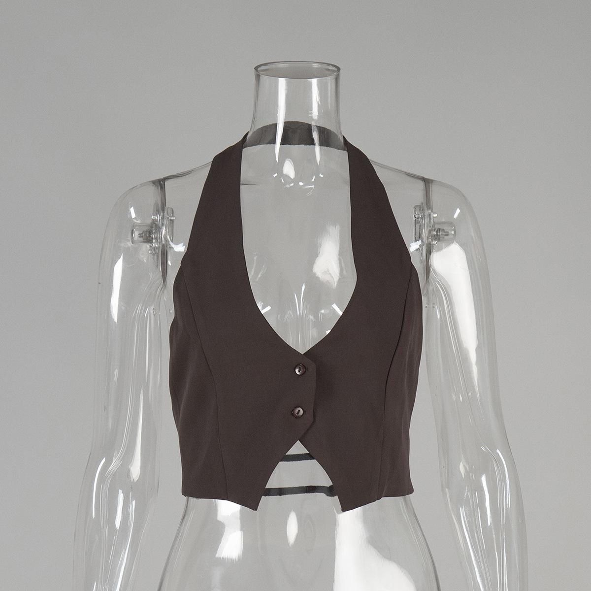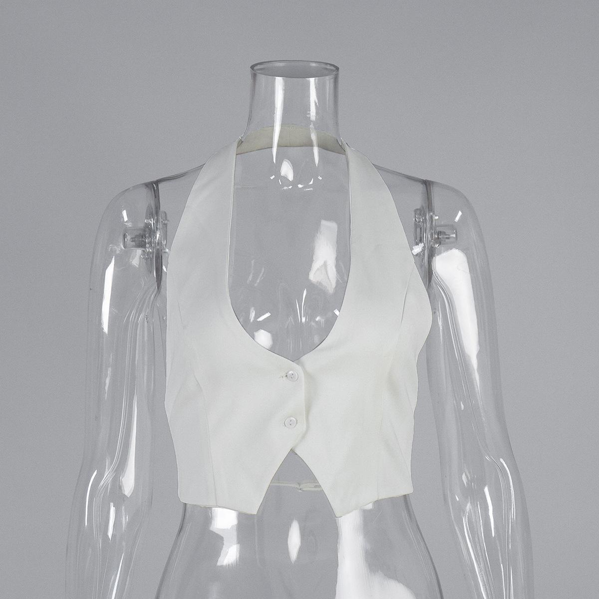 Chaleco de cuello corto transfronterizo, estilo europeo y americano, primavera y verano 2025, sexy, sin espalda, estilo Spice Girl, para mujer