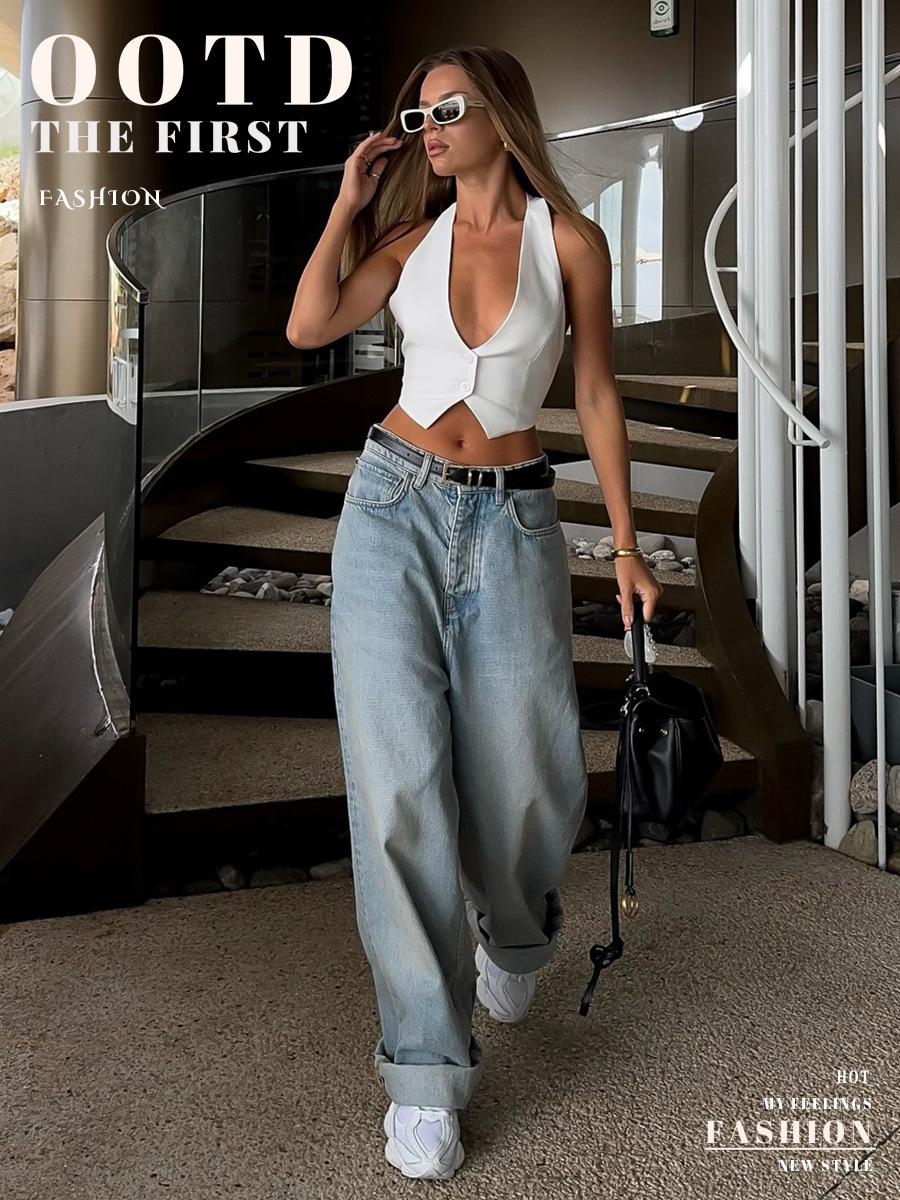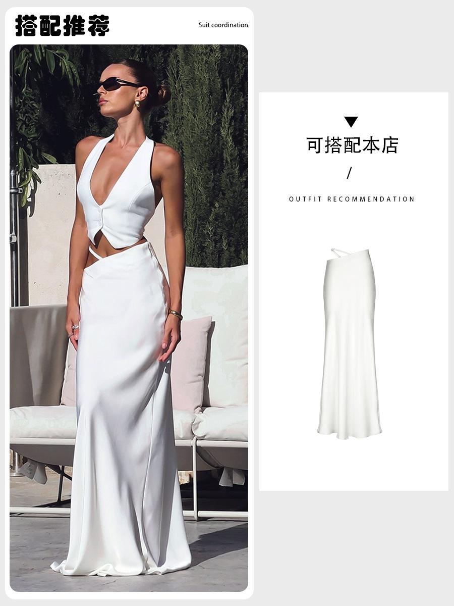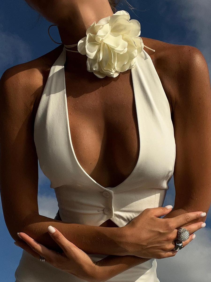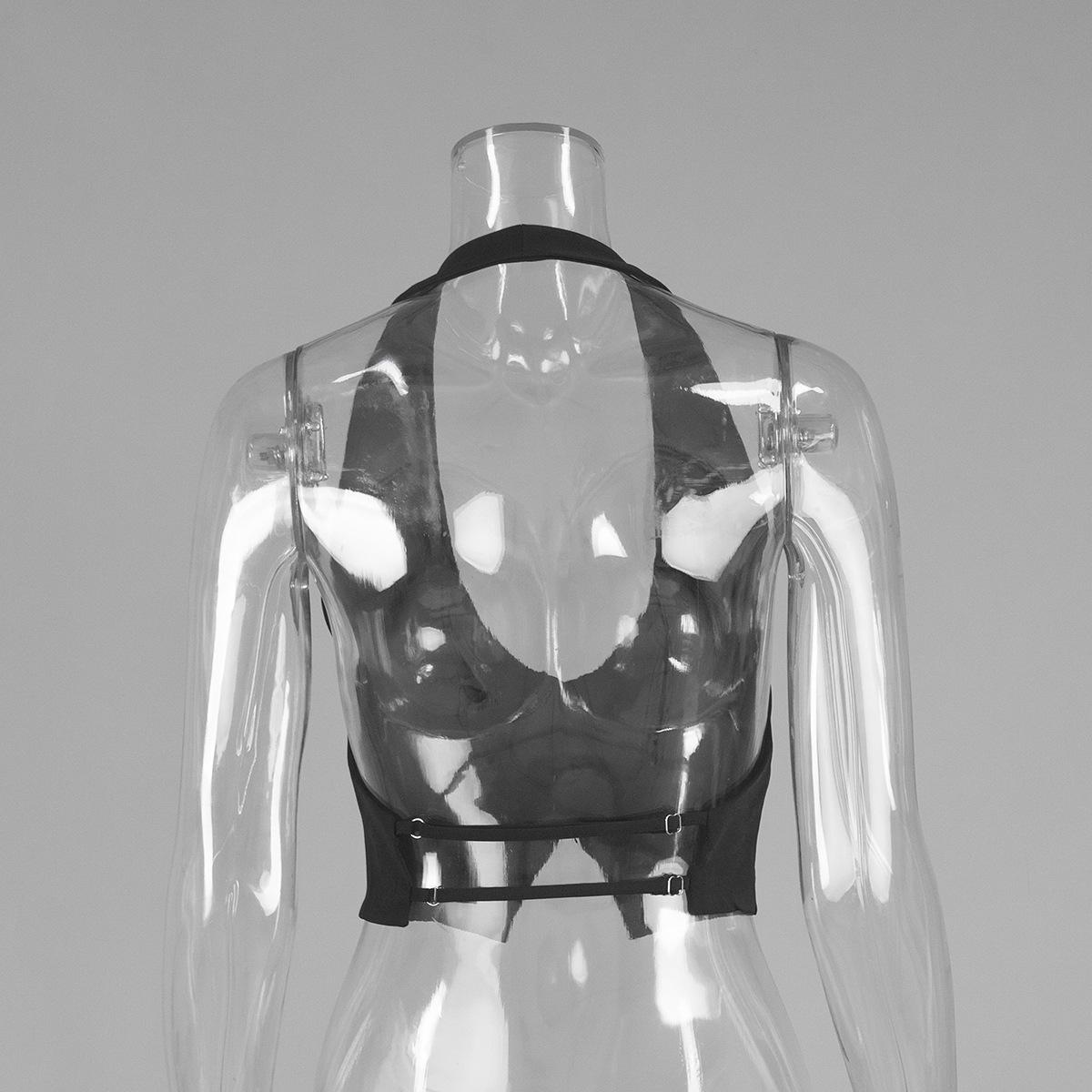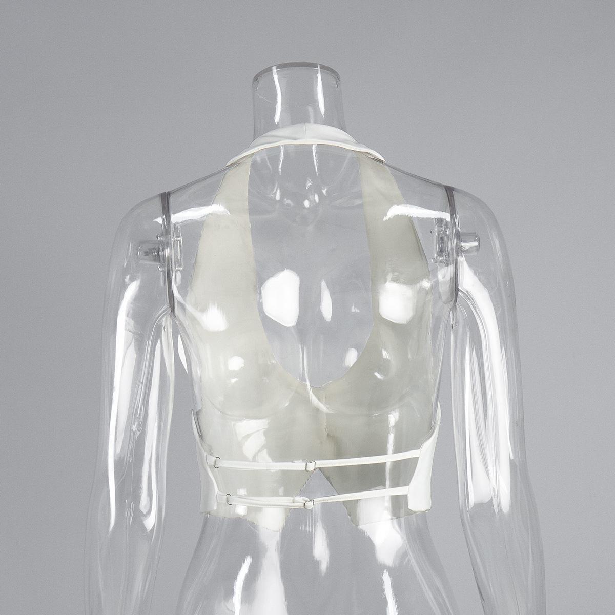 Chaleco de cuello corto transfronterizo, estilo europeo y americano, primavera y verano 2025, sexy, sin espalda, estilo Spice Girl, para mujer