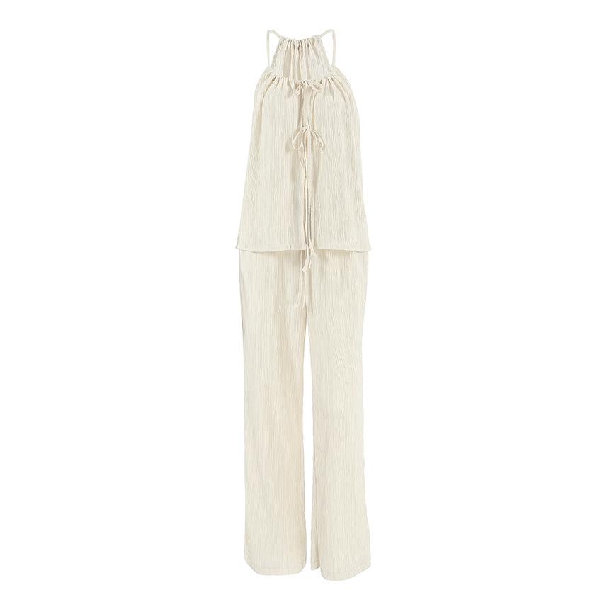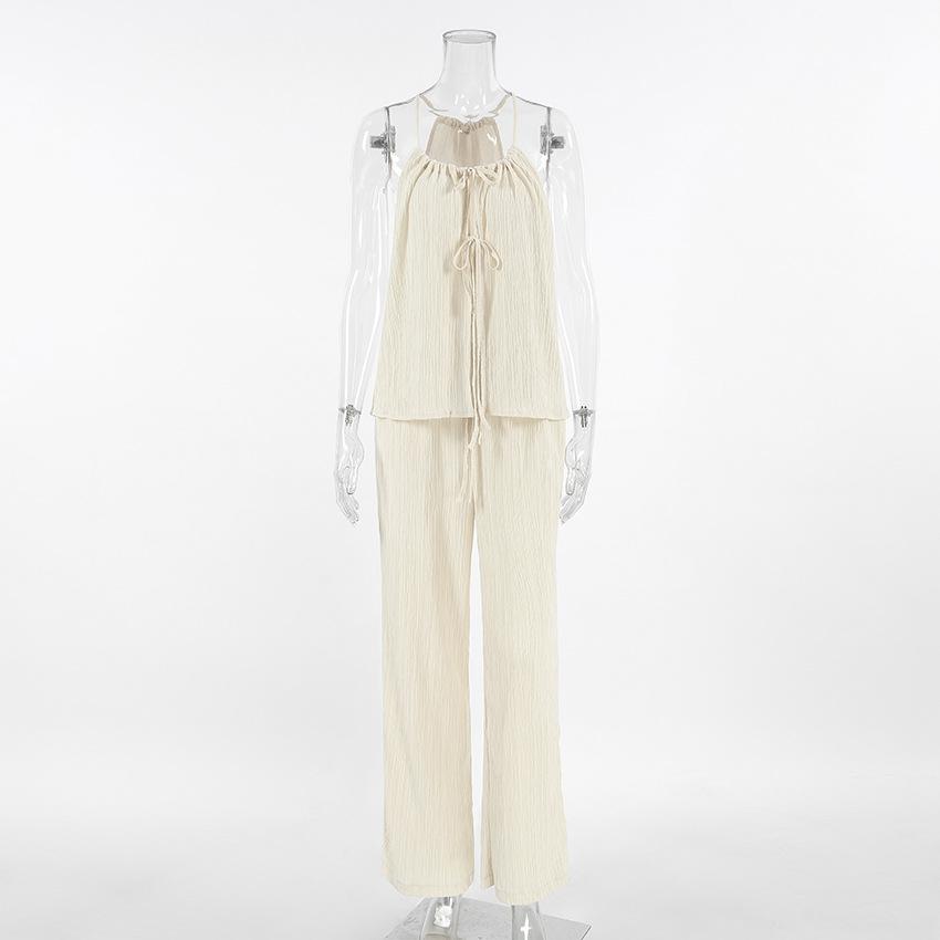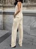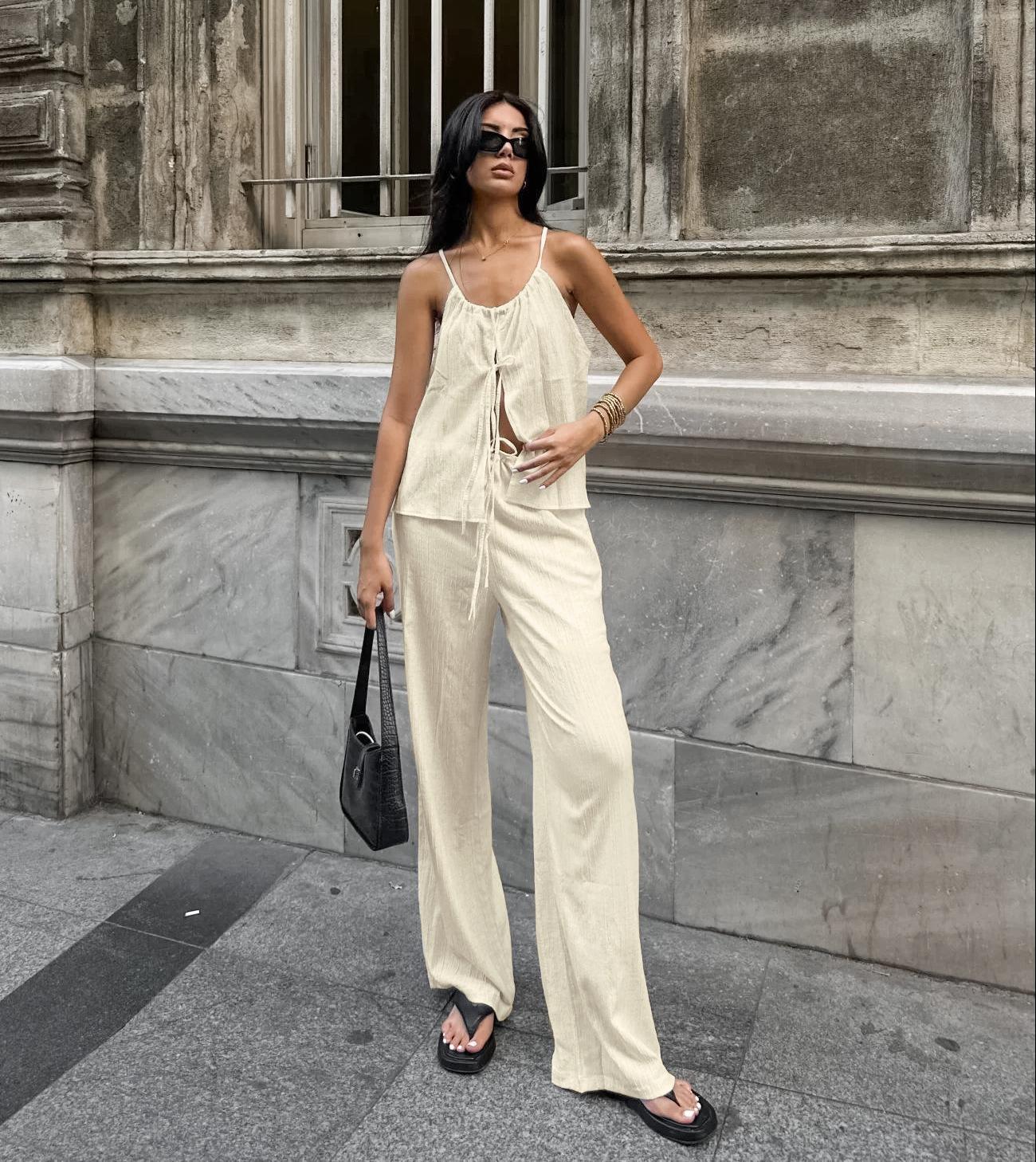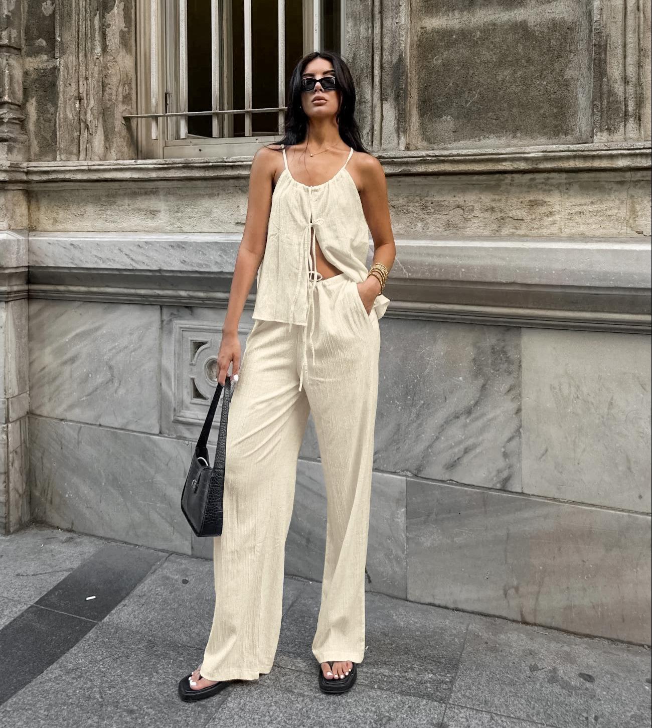 Conjunto de dos piezas de pantalones anchos y cintura alta con cordones, estilo casual, primavera y verano 2025, nuevo diseño para mujer, estilo europeo y americano.