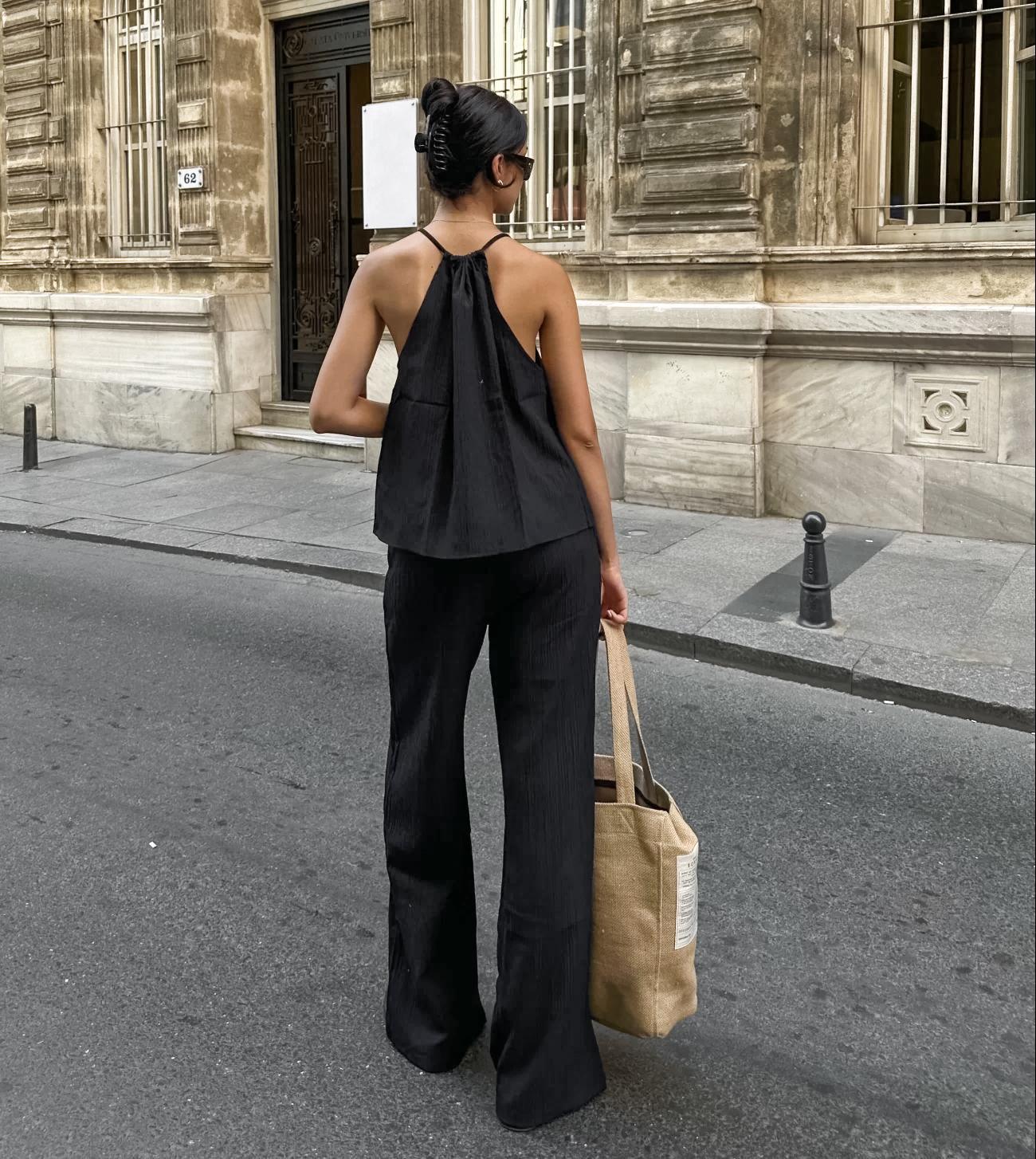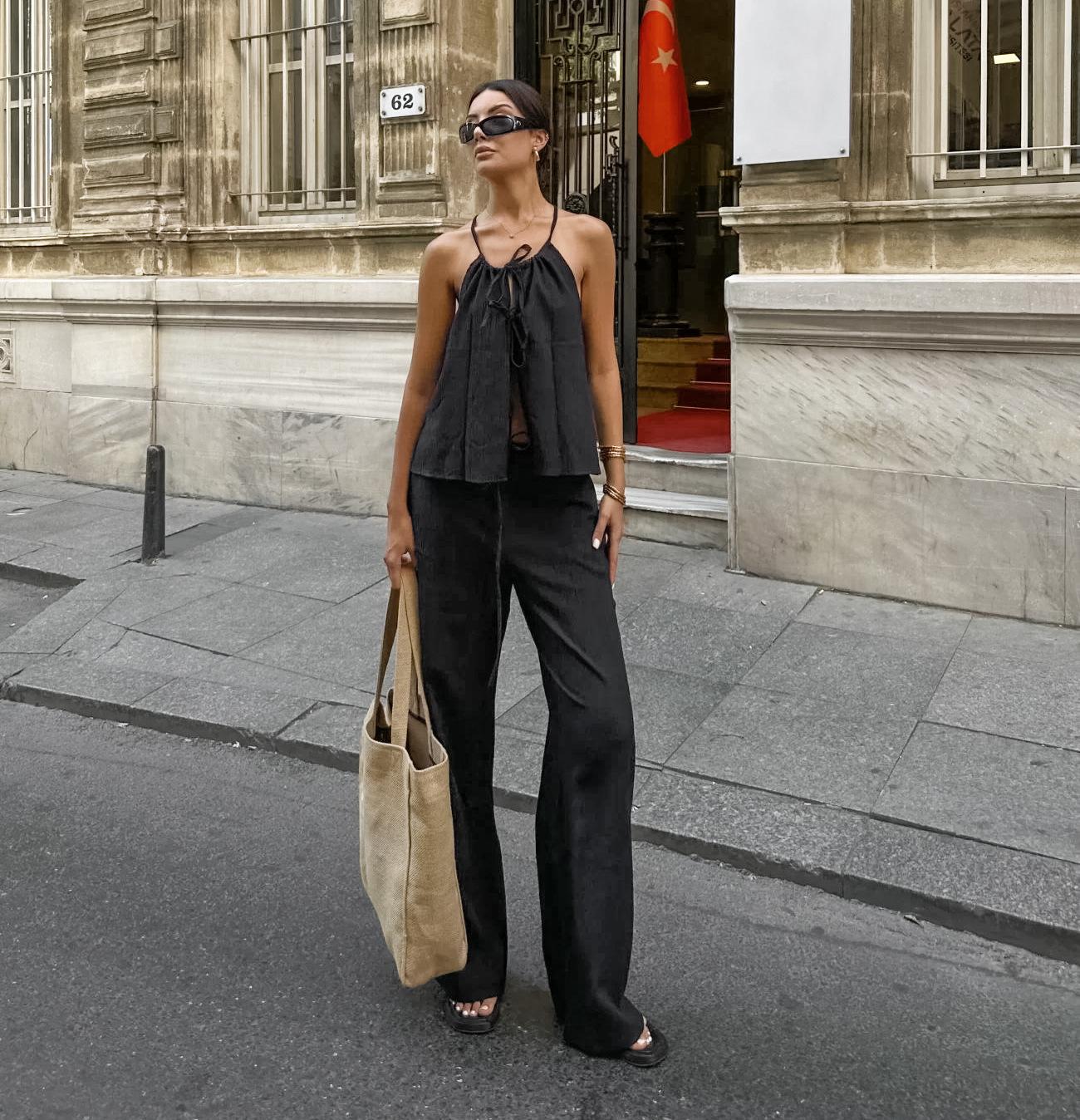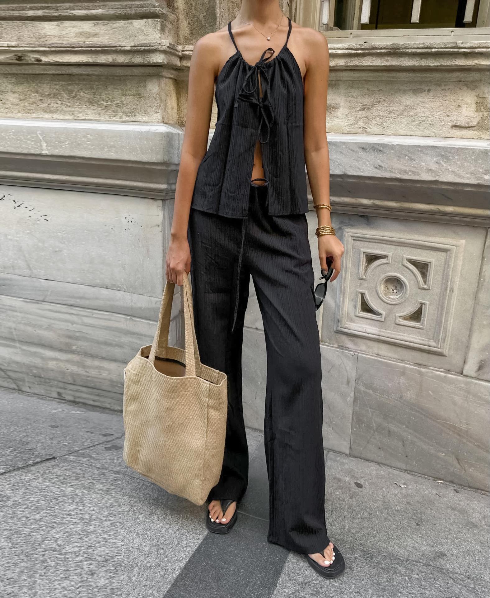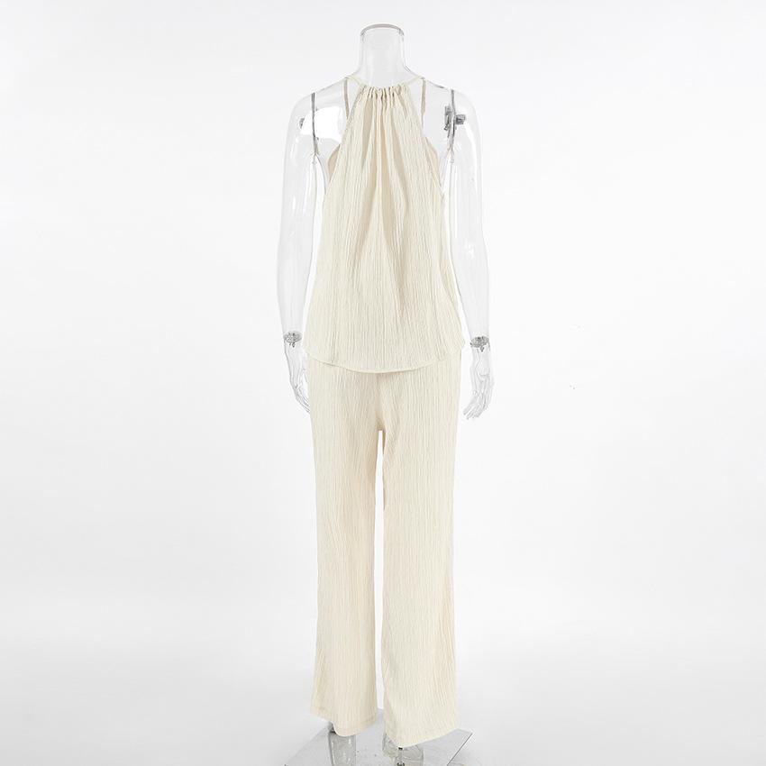 Conjunto de dos piezas de pantalones anchos y cintura alta con cordones, estilo casual, primavera y verano 2025, nuevo diseño para mujer, estilo europeo y americano.