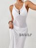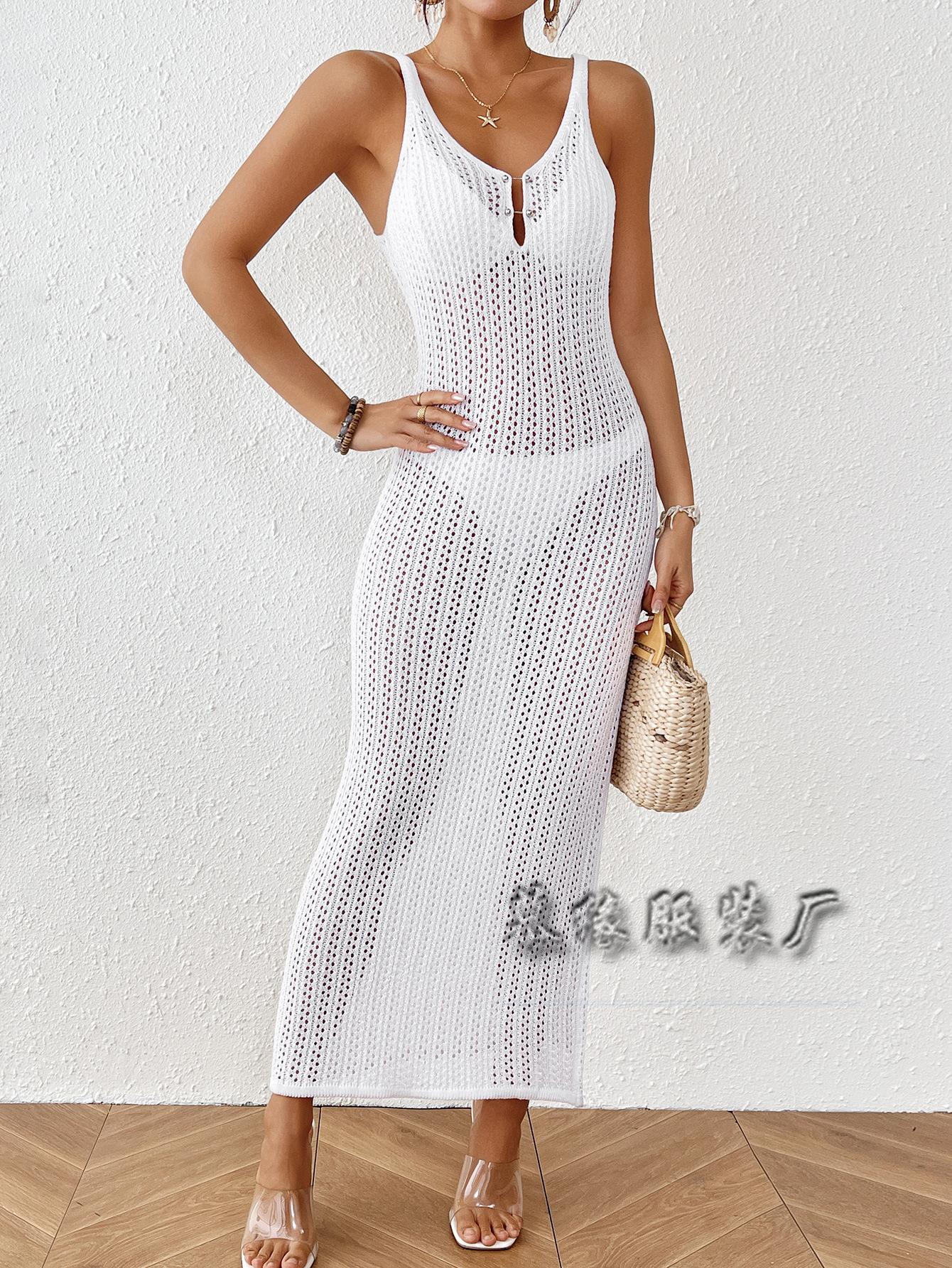 Compra 2025 Nuevo Vestido Largo de Vacaciones sin Mangas con Cuello en V y Textura Hueca Transfronterizo Europeo y Americano Protector Solar de Playa Vestido sin Espalda al por mayor en Joom.pro