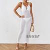2025 Nuevo Vestido Largo de Vacaciones sin Mangas con Cuello en V y Textura Hueca Transfronterizo Europeo y Americano Protector Solar de Playa Vestido sin Espalda