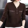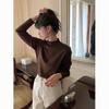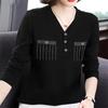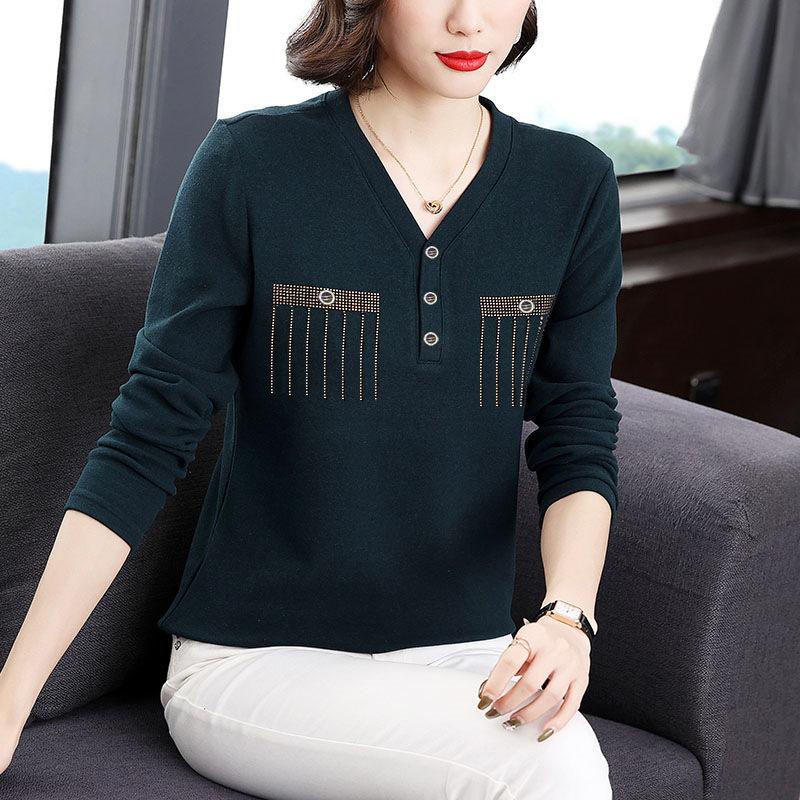 Camiseta básica de terciopelo de doble cara para mujer de talla grande 2024 otoño e invierno temperamento cuello en V cálida interior otoño manga larga top ajustado