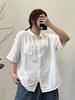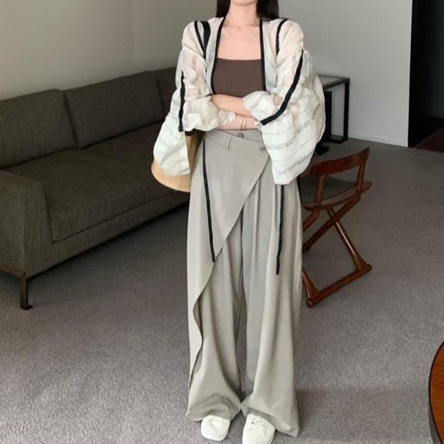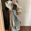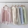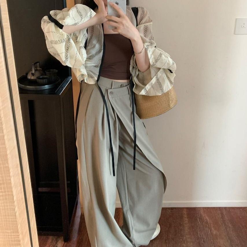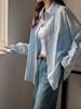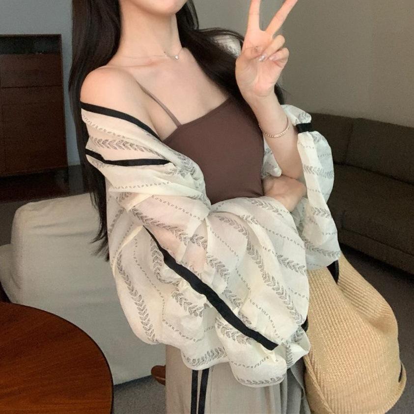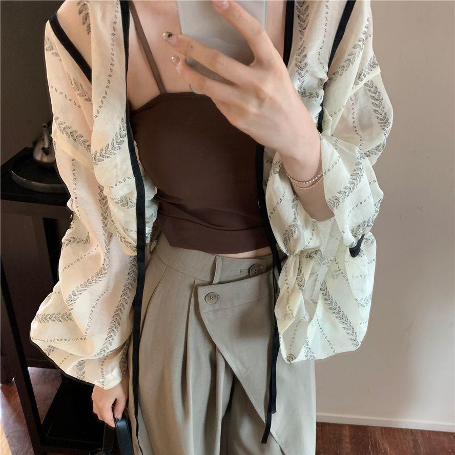 Camisa de manga larga con contraste y estampado coreano para mujer, estilo informal, holgado, con diseño elegante, corta y con protección solar.