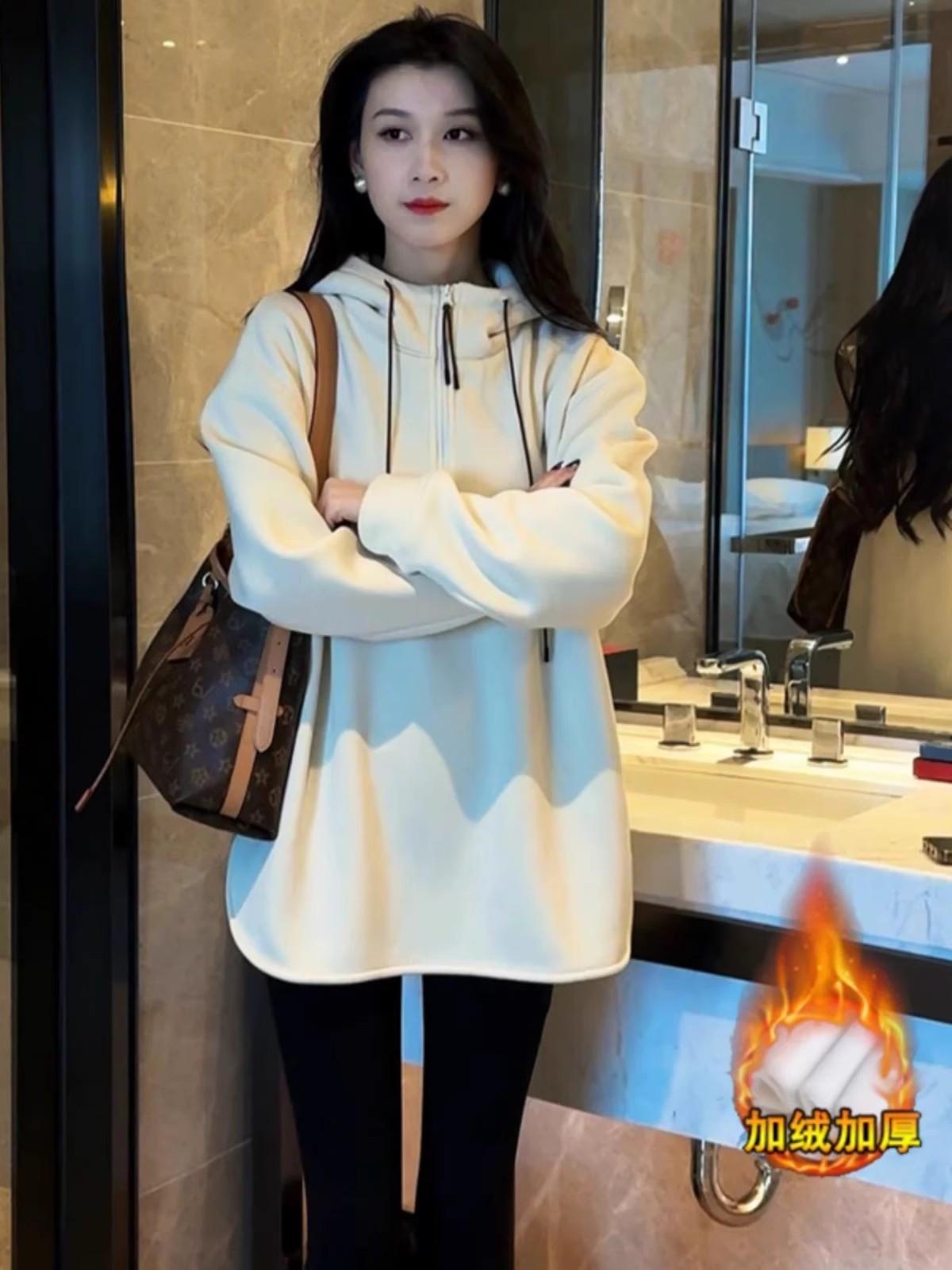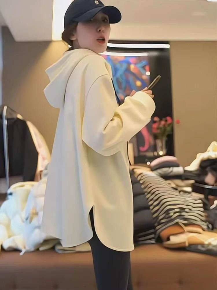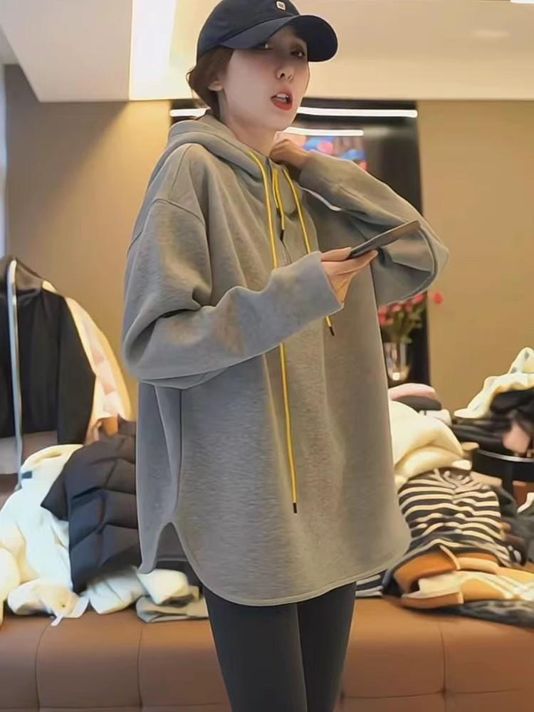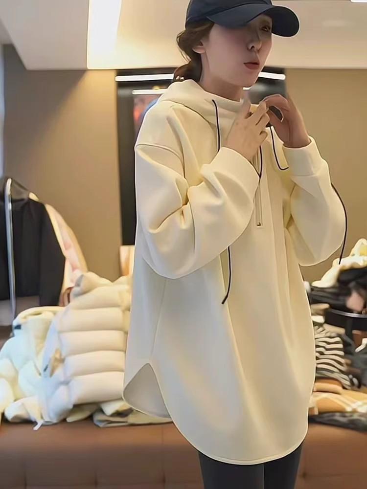 Compra Sudadera con capucha gruesa forrada de vellón para mujer, moda nueva de primavera y otoño 2025, holgada casual de largo medio, top que combina con todo al por mayor en Joom.pro
