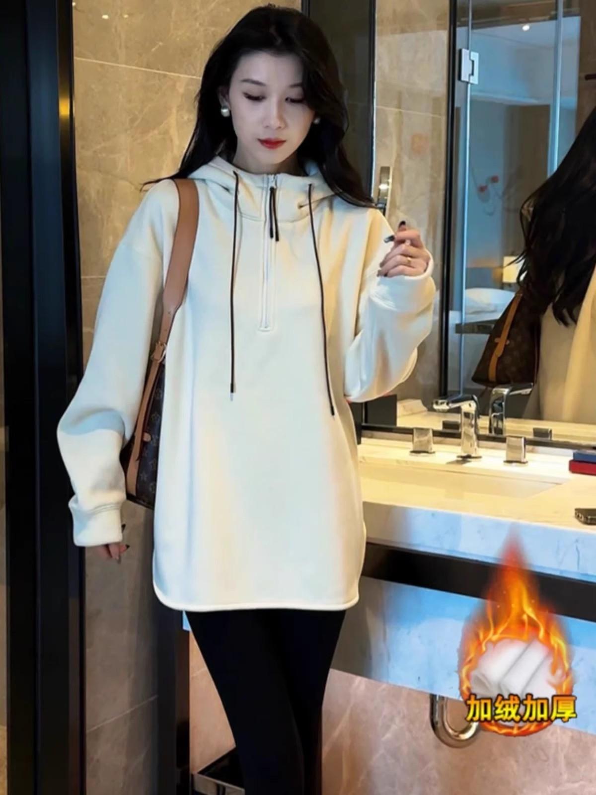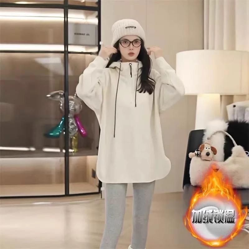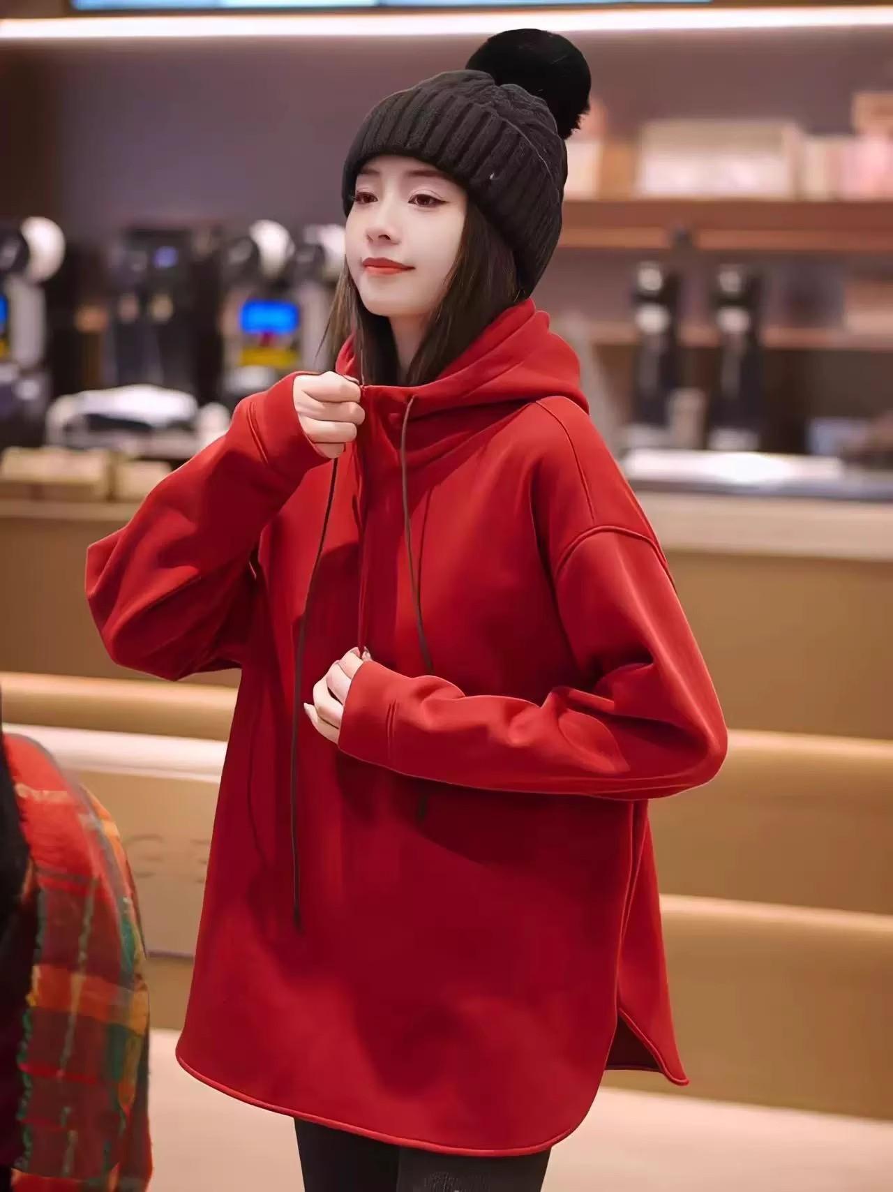 Compra Sudadera con capucha gruesa forrada de vellón para mujer, moda nueva de primavera y otoño 2025, holgada casual de largo medio, top que combina con todo al por mayor en Joom.pro