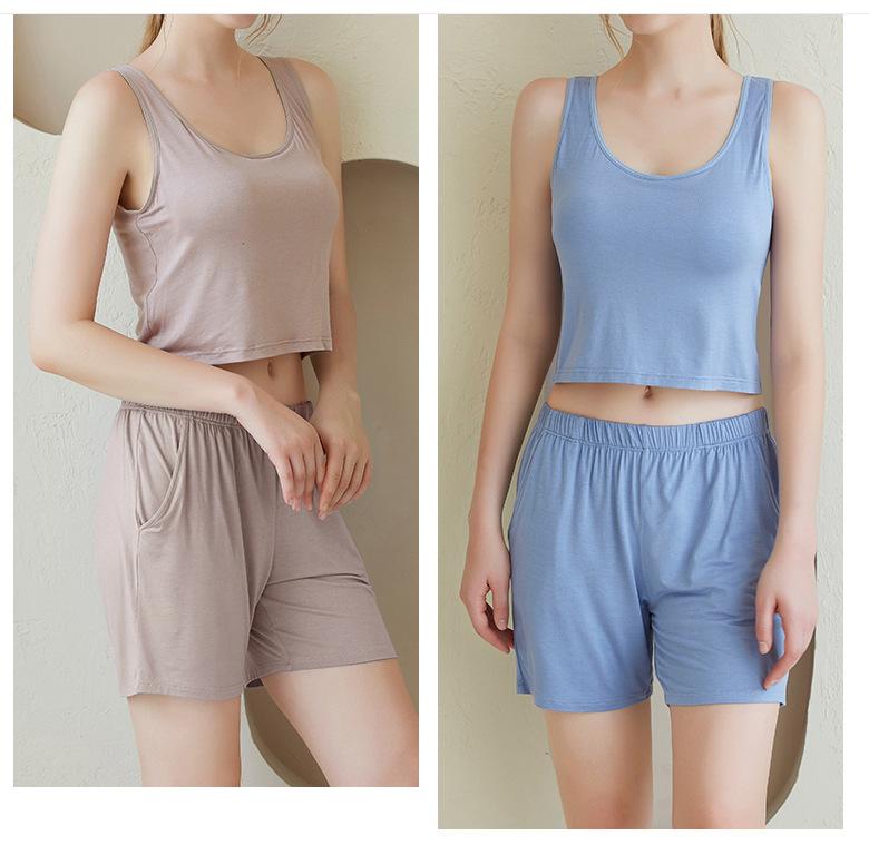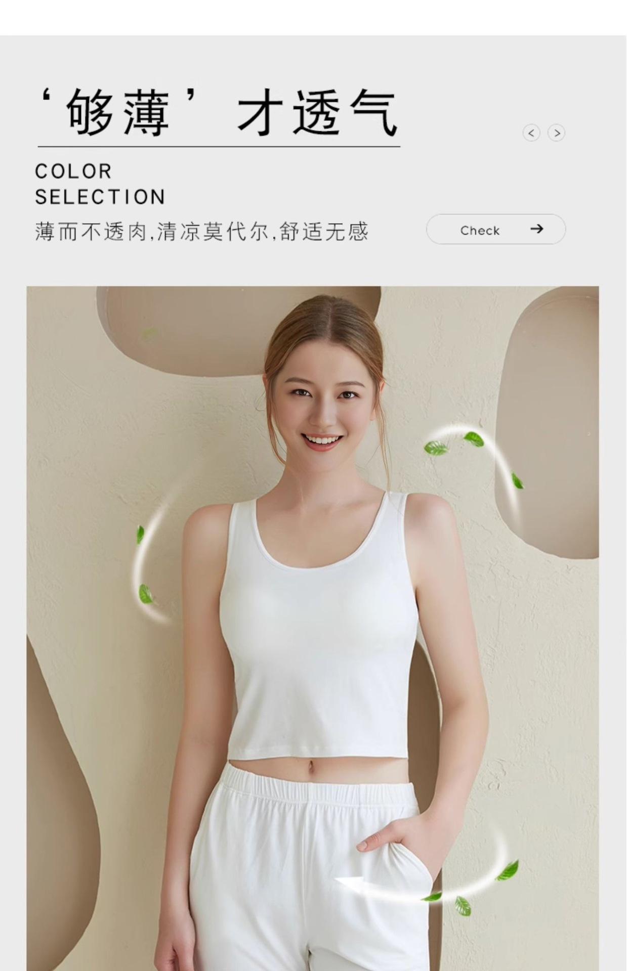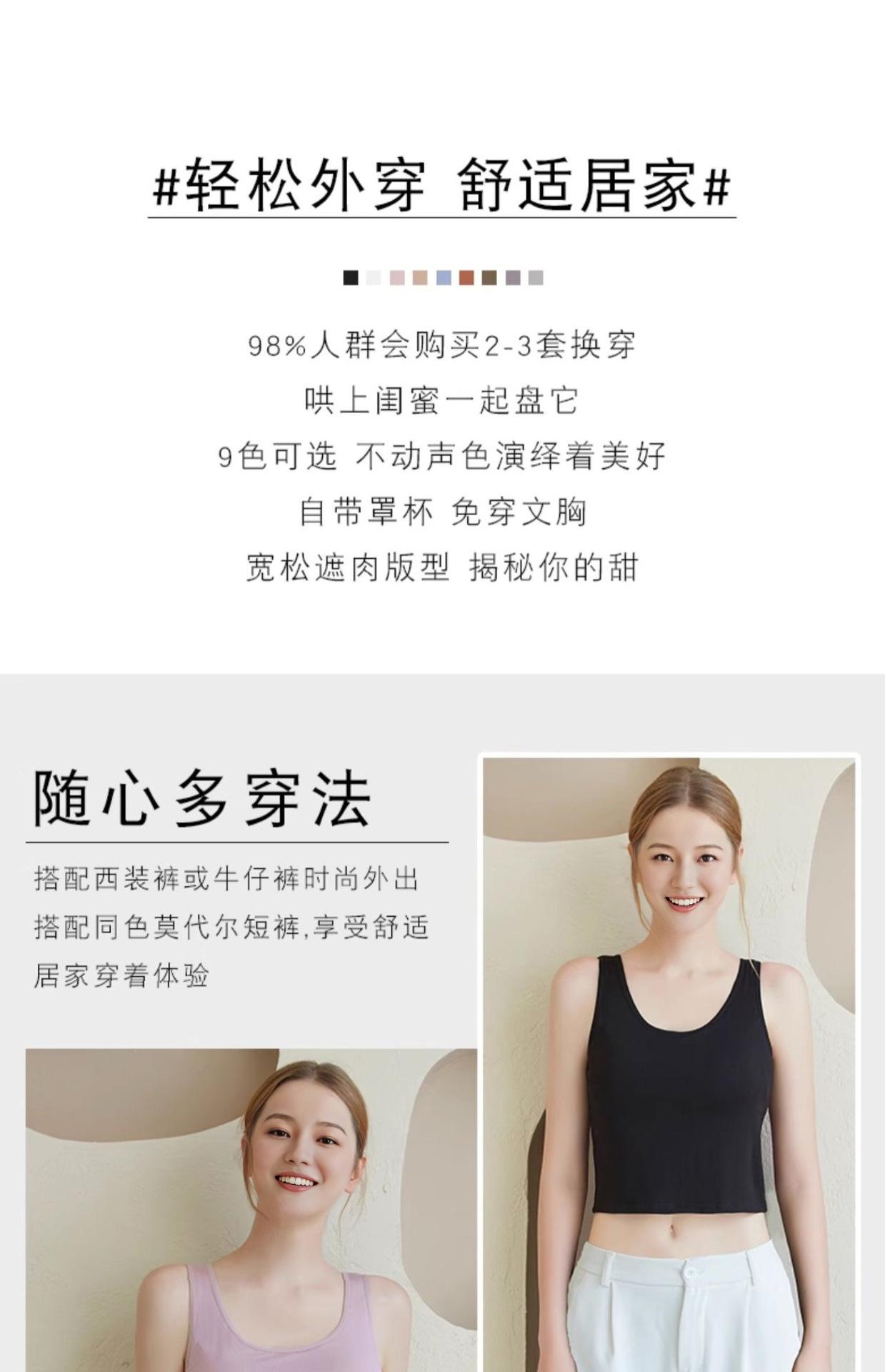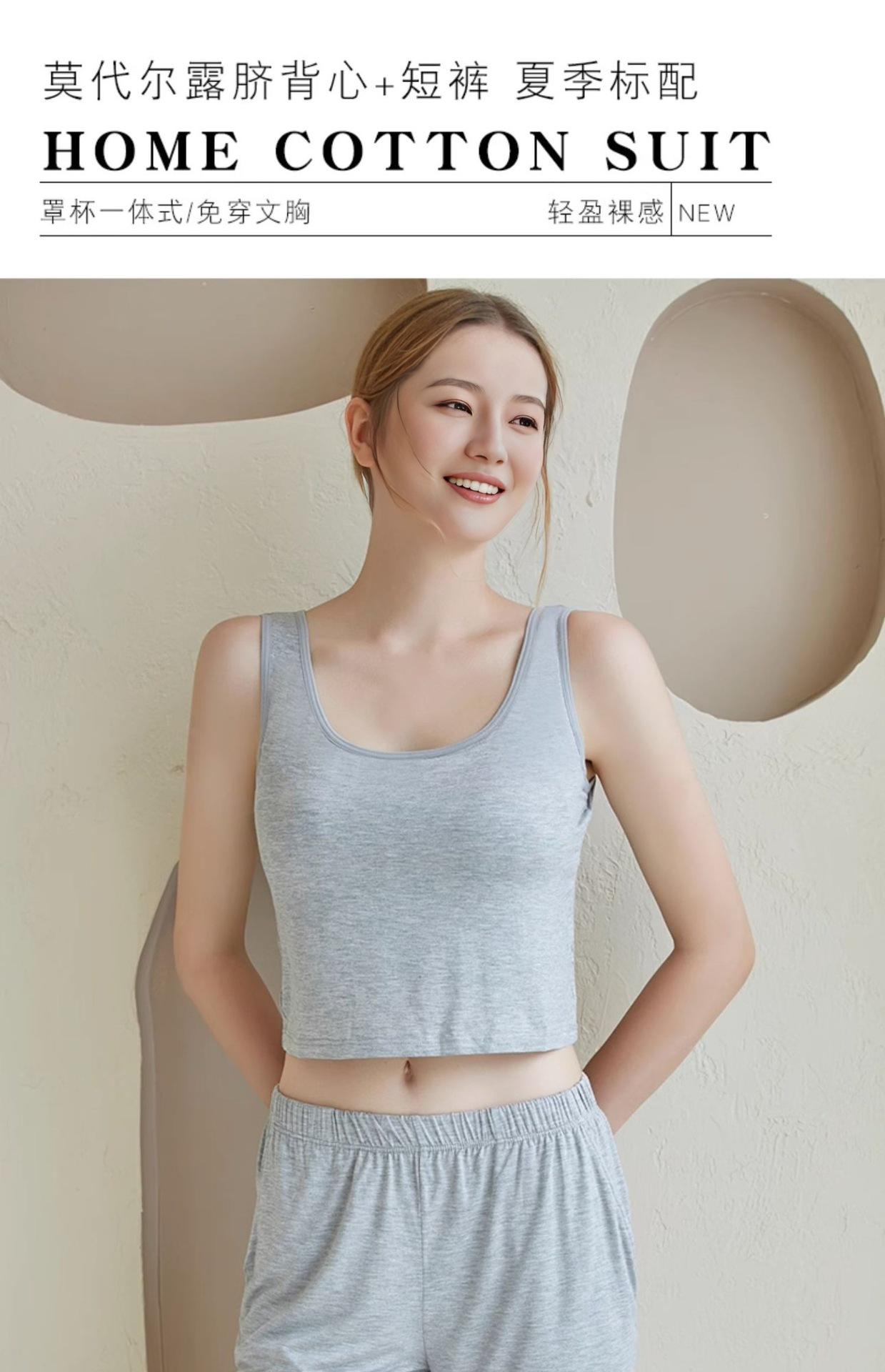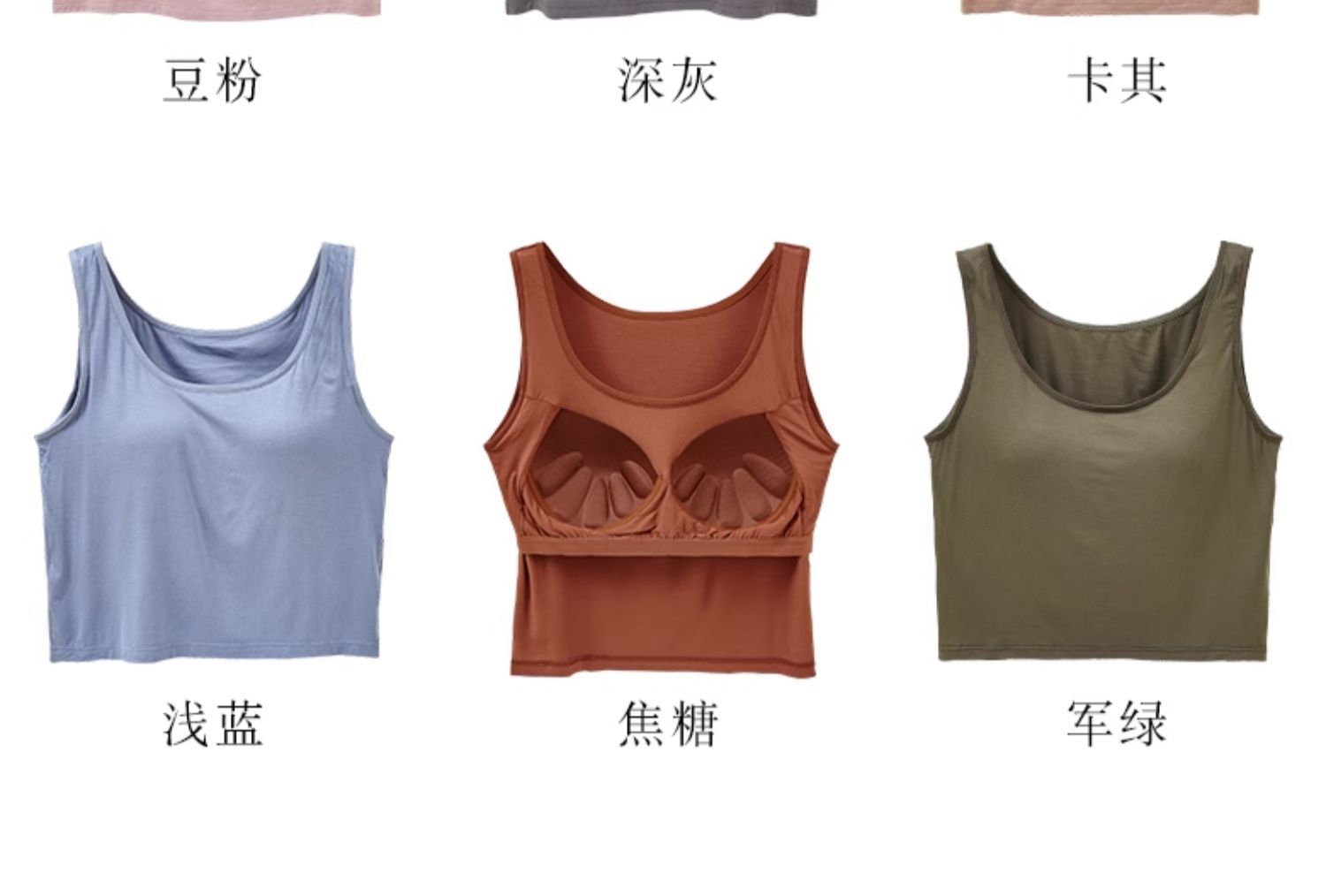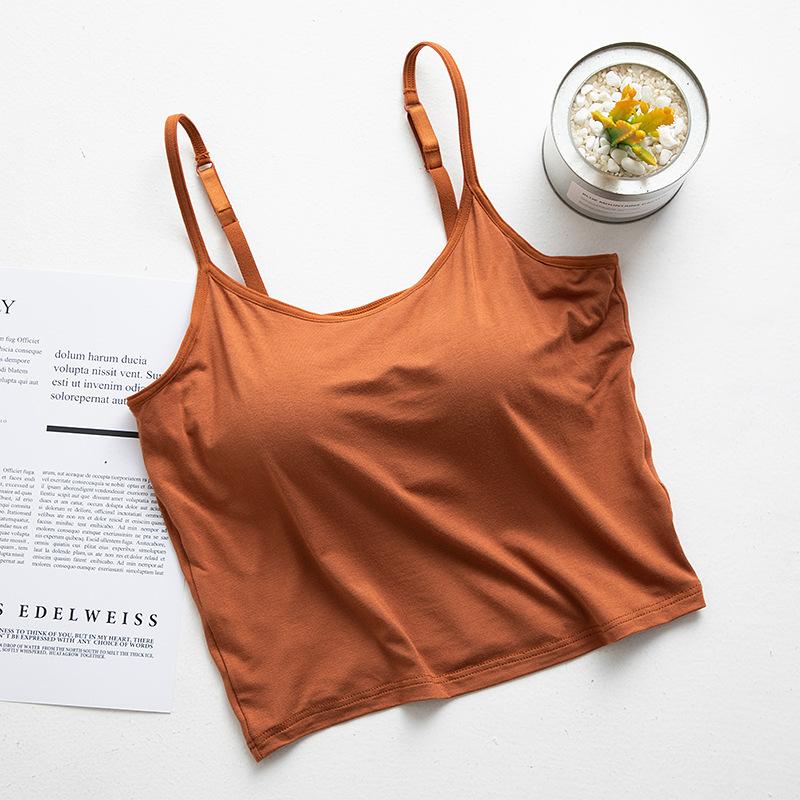 Camisola con Almohadillas en el Pecho para Mujer, Ropa Exterior de Verano, Top Corto de Modal, Capa Interior, Sostén, Yoga, Espalda Hermosa, Top sin Mangas