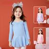 Ropa de práctica de ballet Ropa de gimnasia para niños Otoño e Invierno Manga Larga forrada de vellón Vestido de baile para niña Ropa de baile de danza china