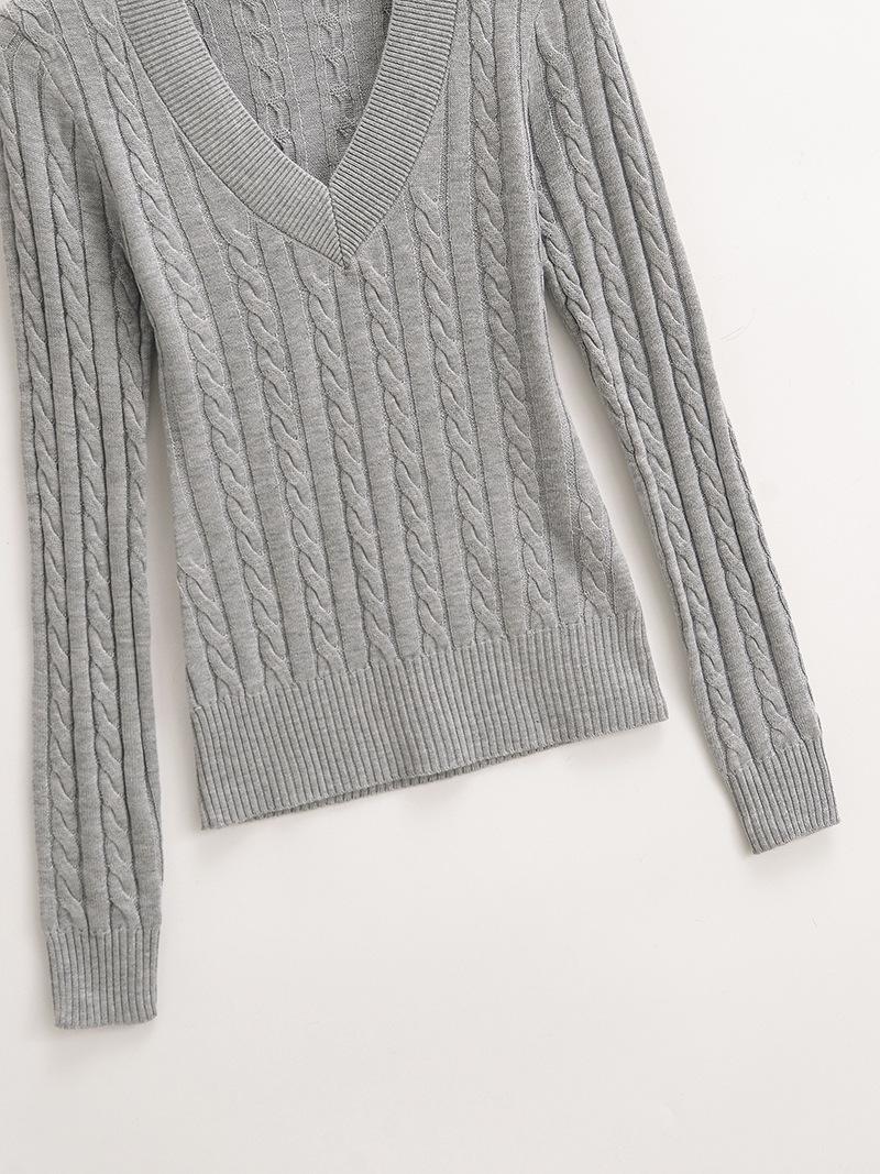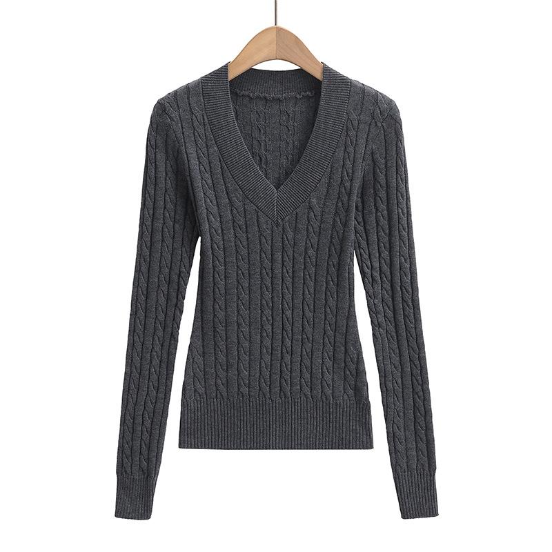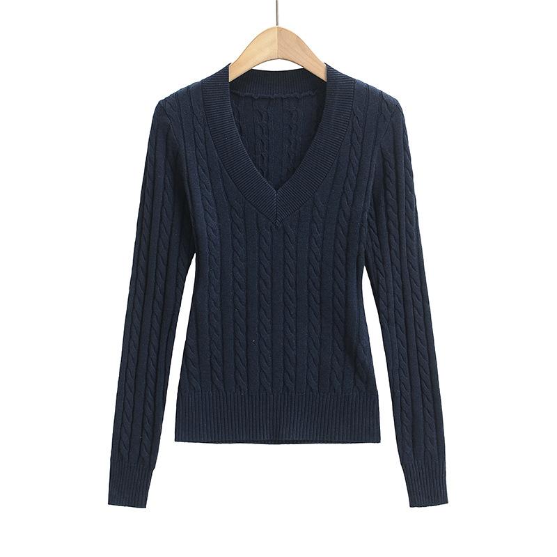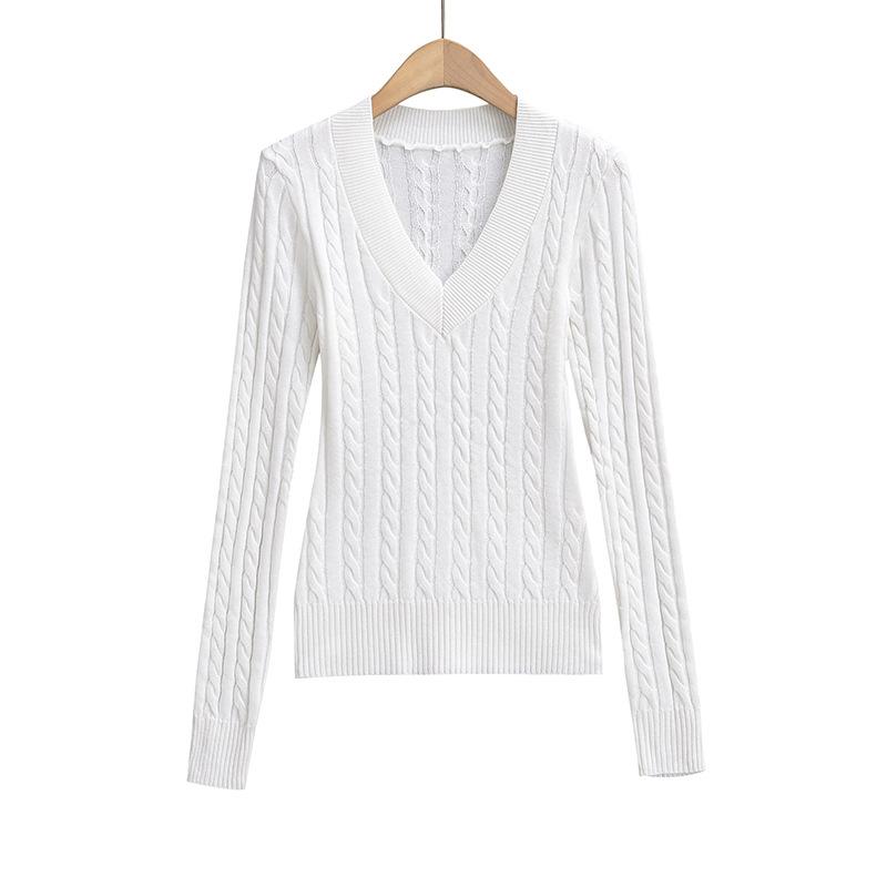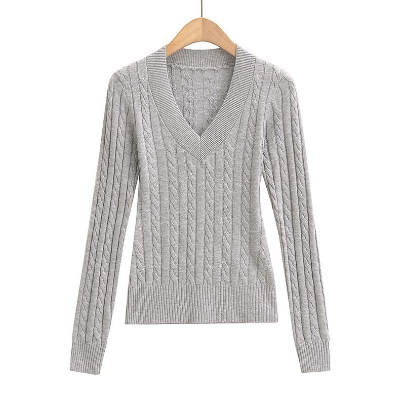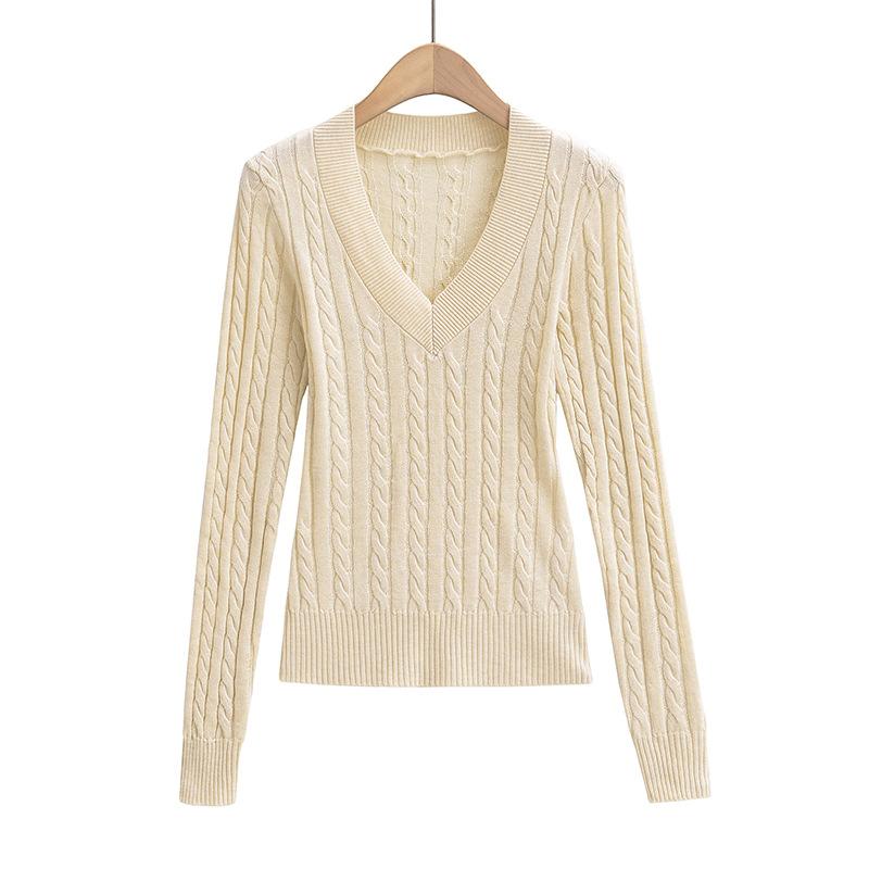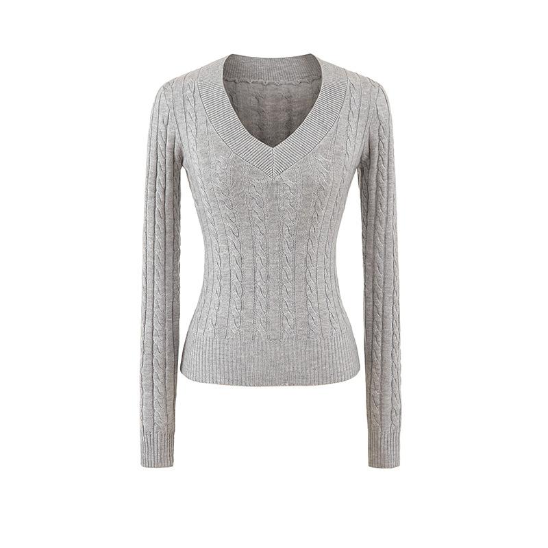 25026-2025 Nuevo Suéter Sexy Spice Girls Ajustado Cuello en V para Mujer Moda Europea y Americana Camisa Tejida Trenzada Chaqueta