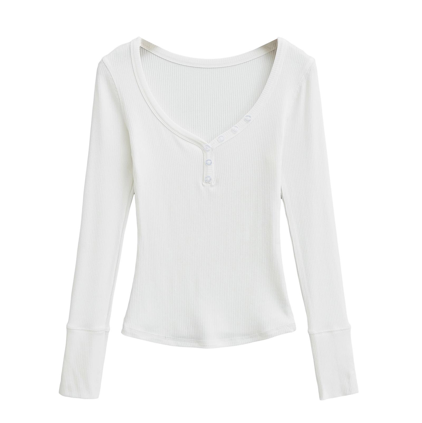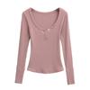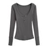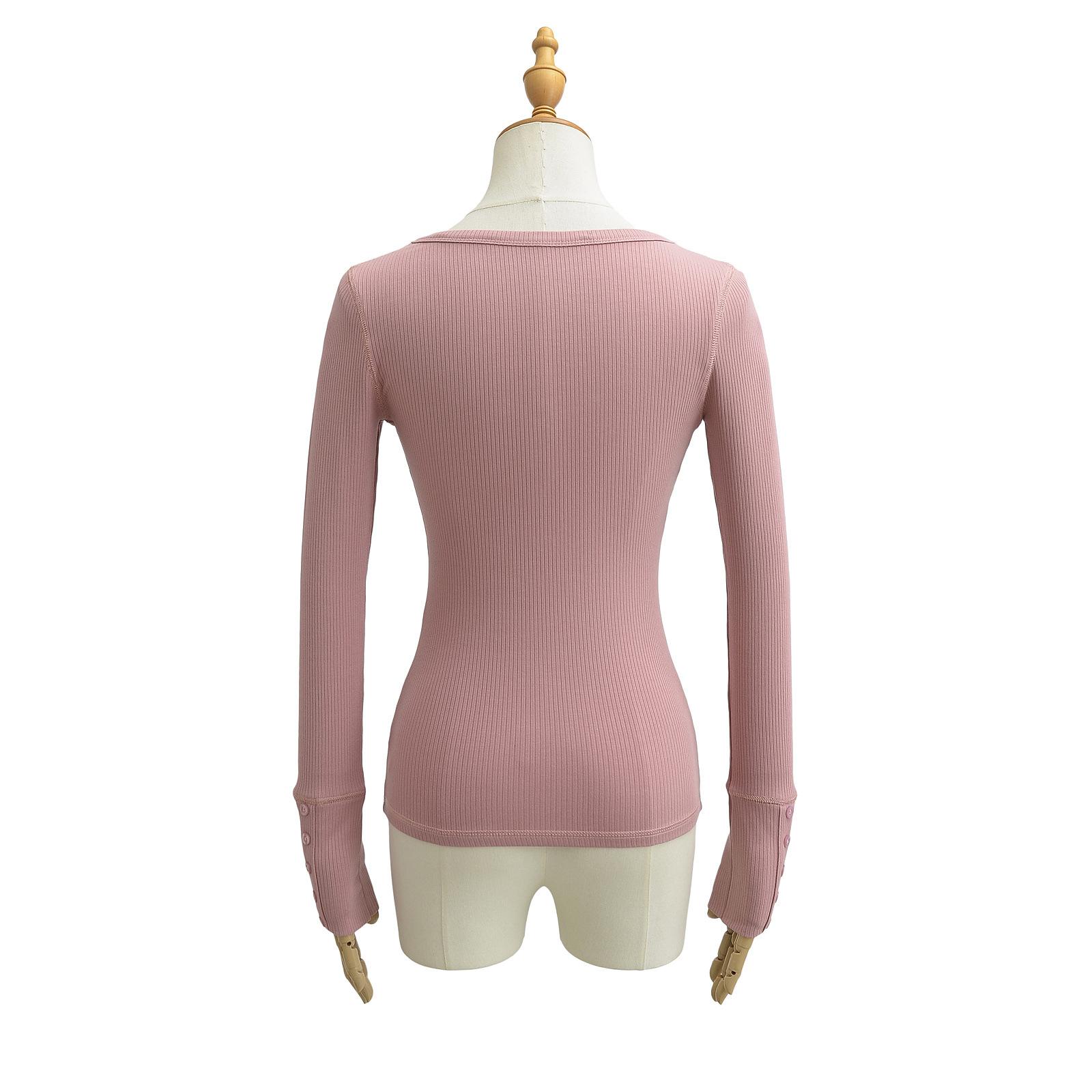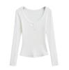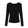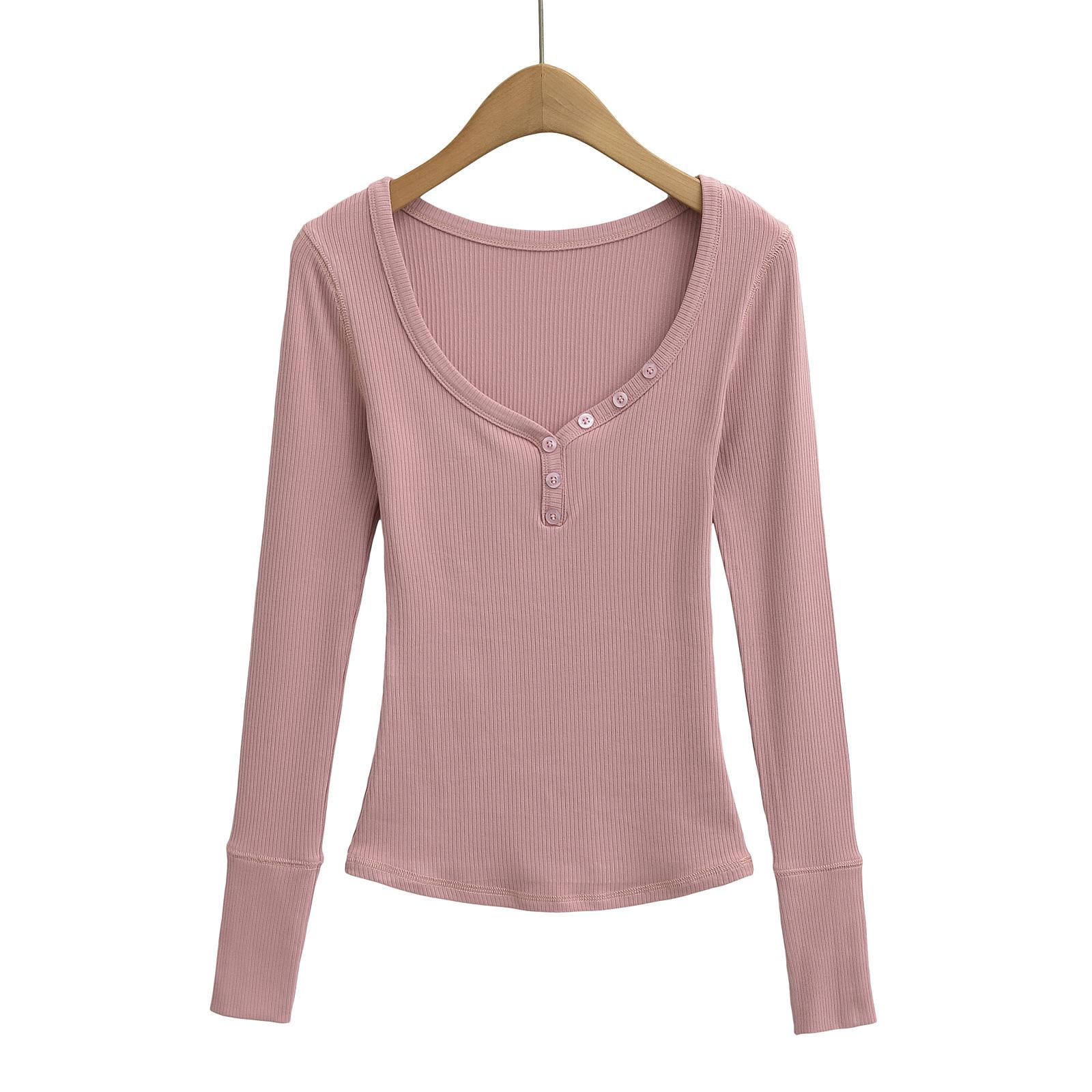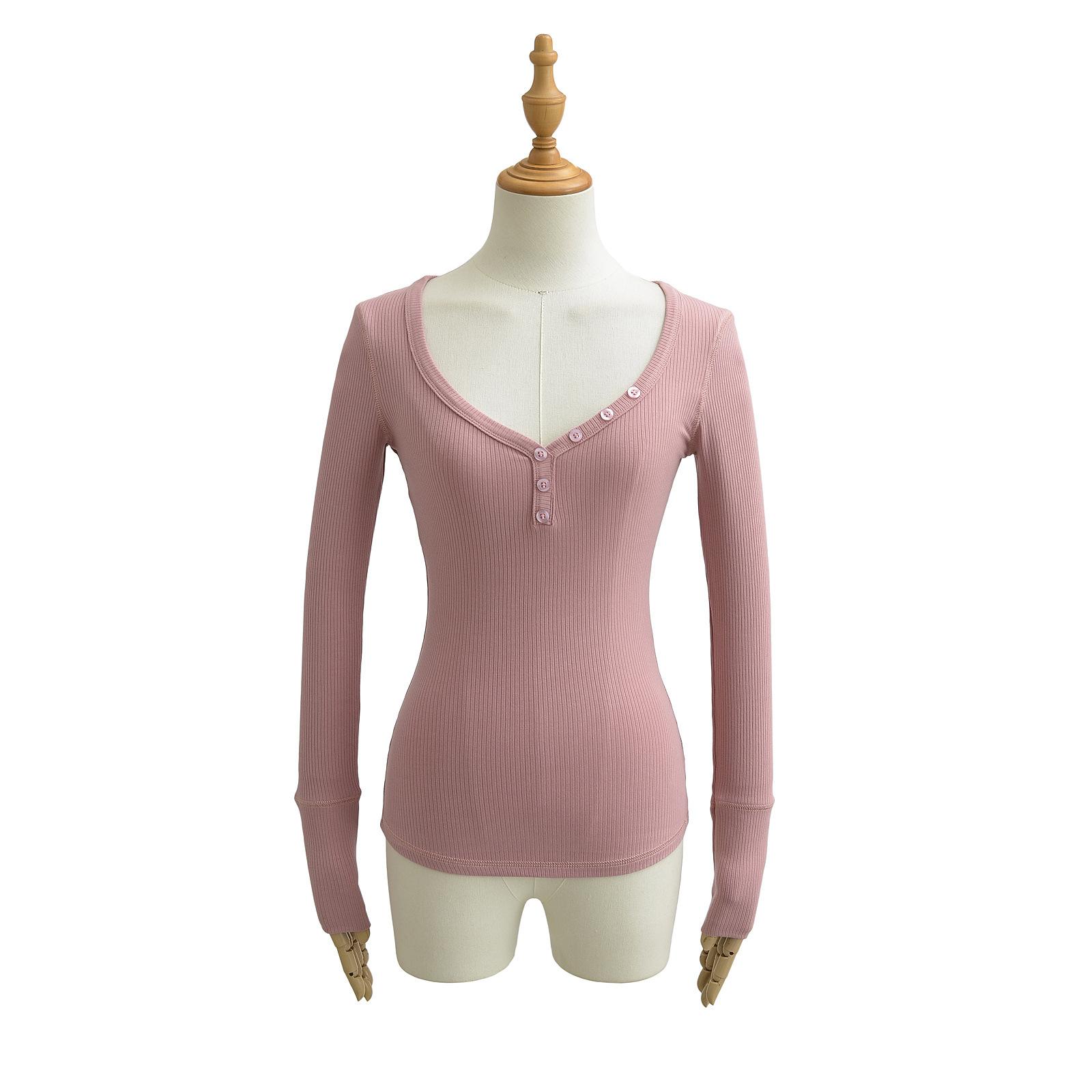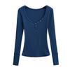 Playera de Manga Larga con Cuello en V y Multibotones para Mujer Hot Girl Peach Primavera 2025 Nuevo Hilo Cálido Slim Camiseta Base Top