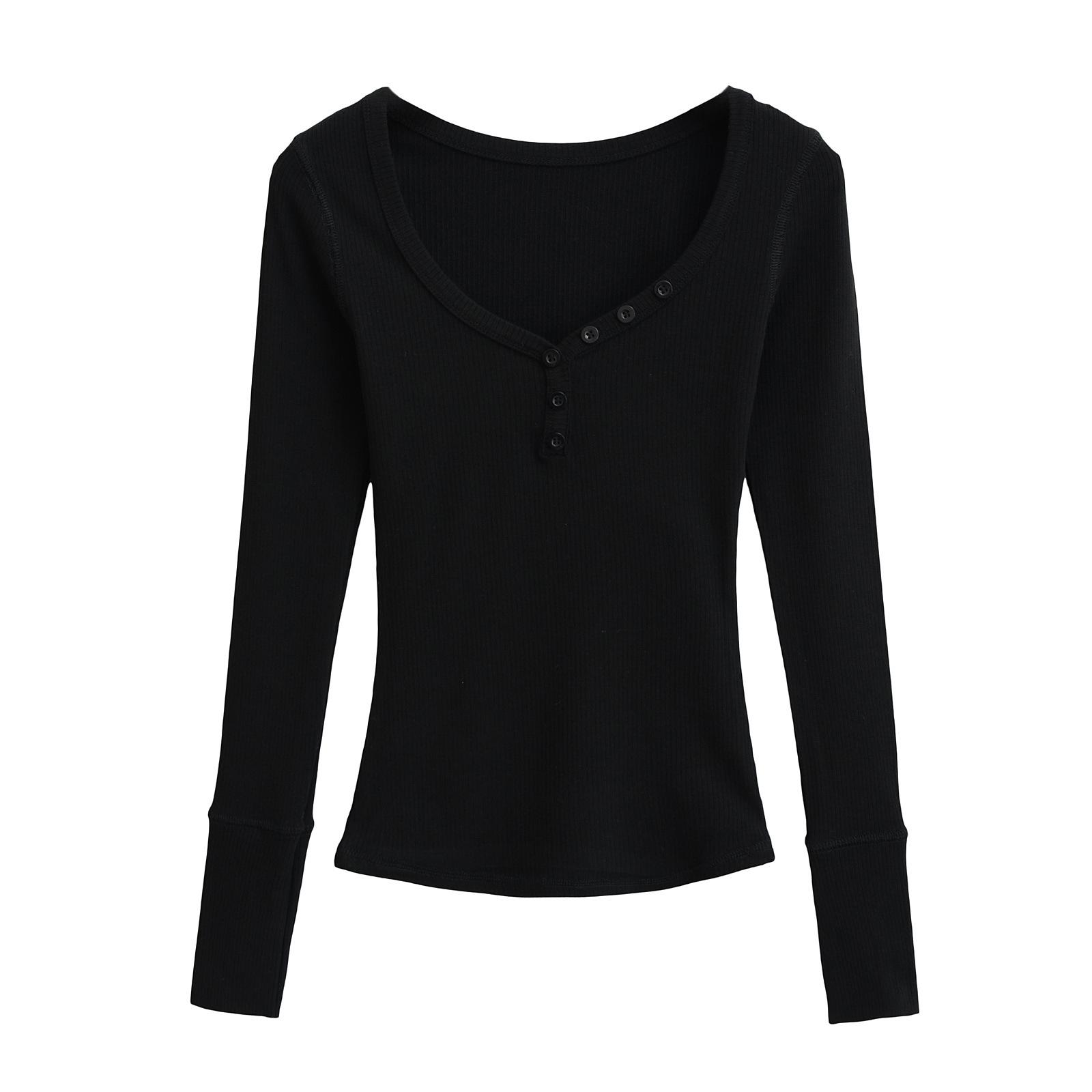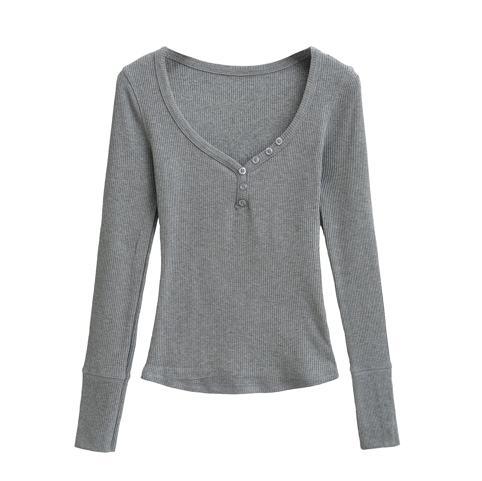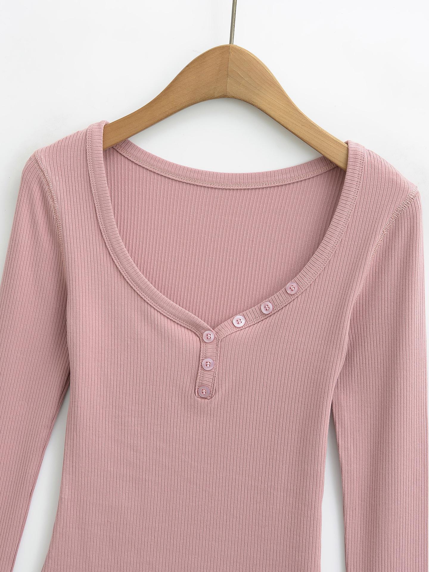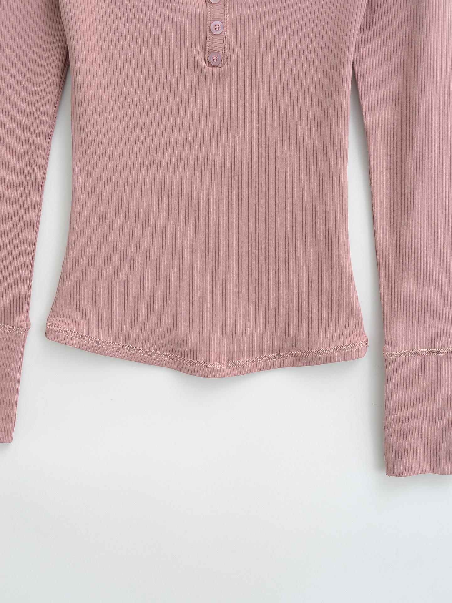 Playera de Manga Larga con Cuello en V y Multibotones para Mujer Hot Girl Peach Primavera 2025 Nuevo Hilo Cálido Slim Camiseta Base Top