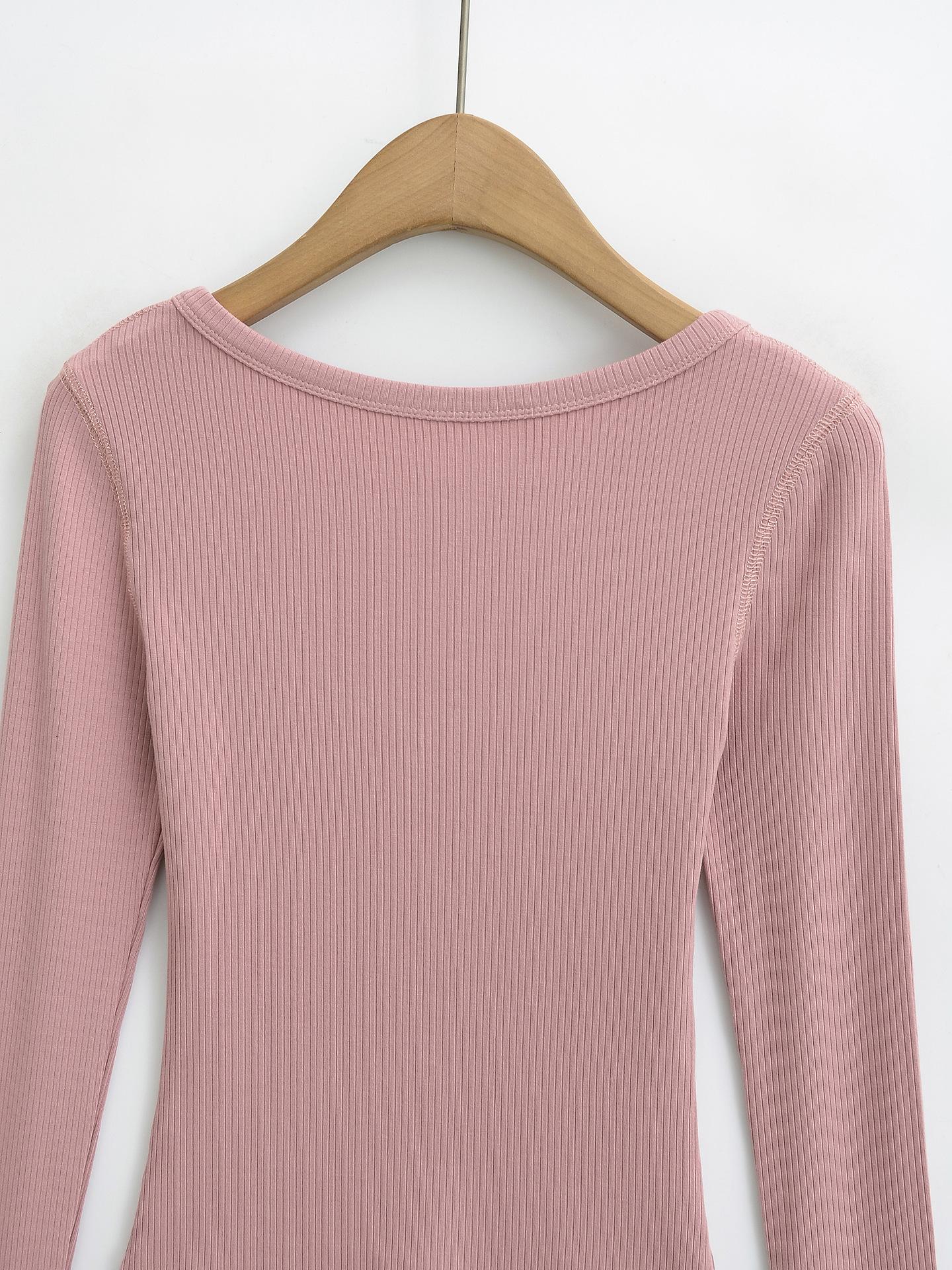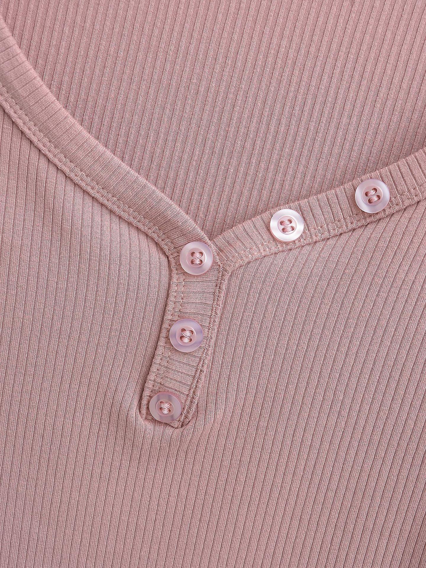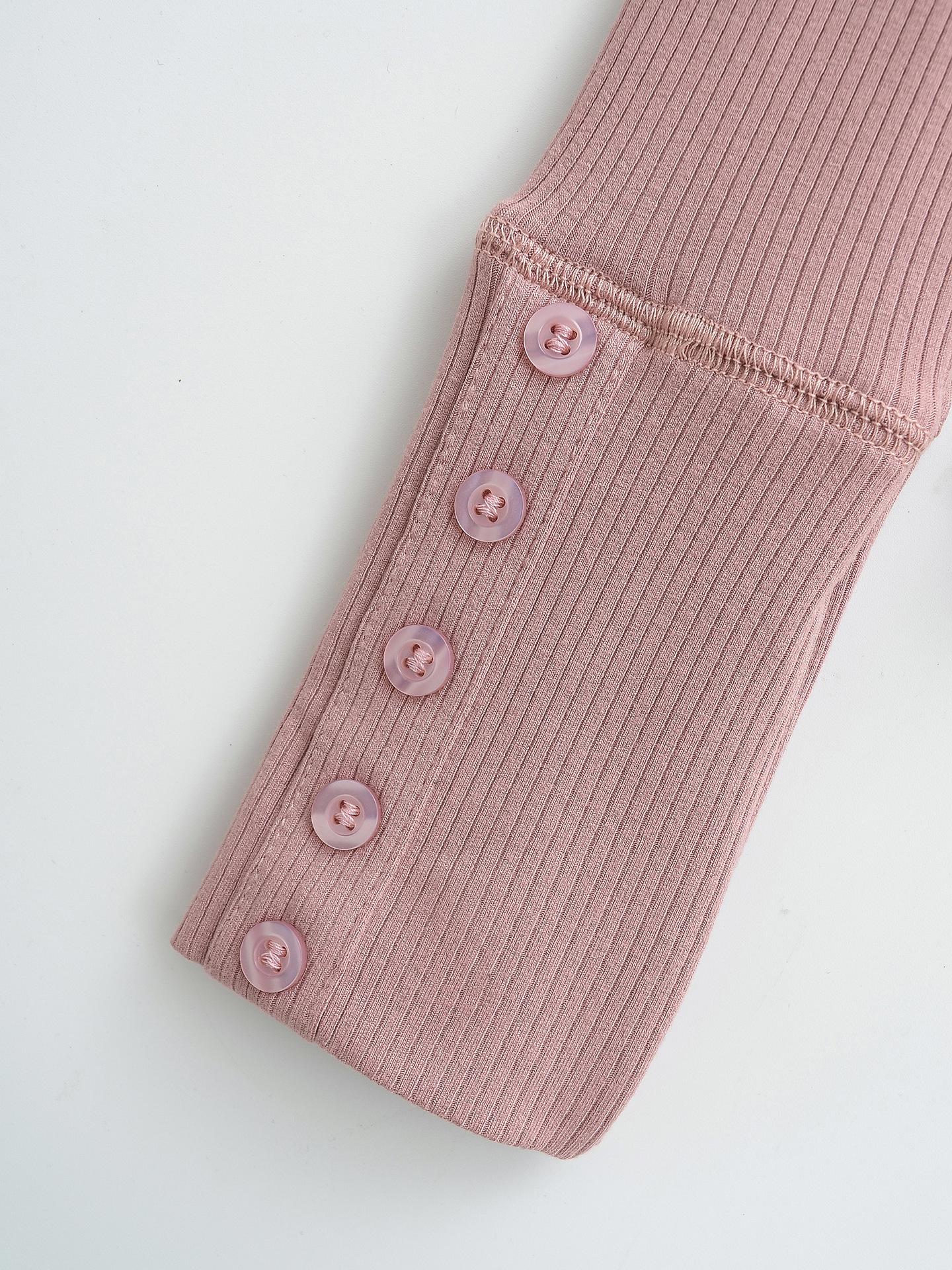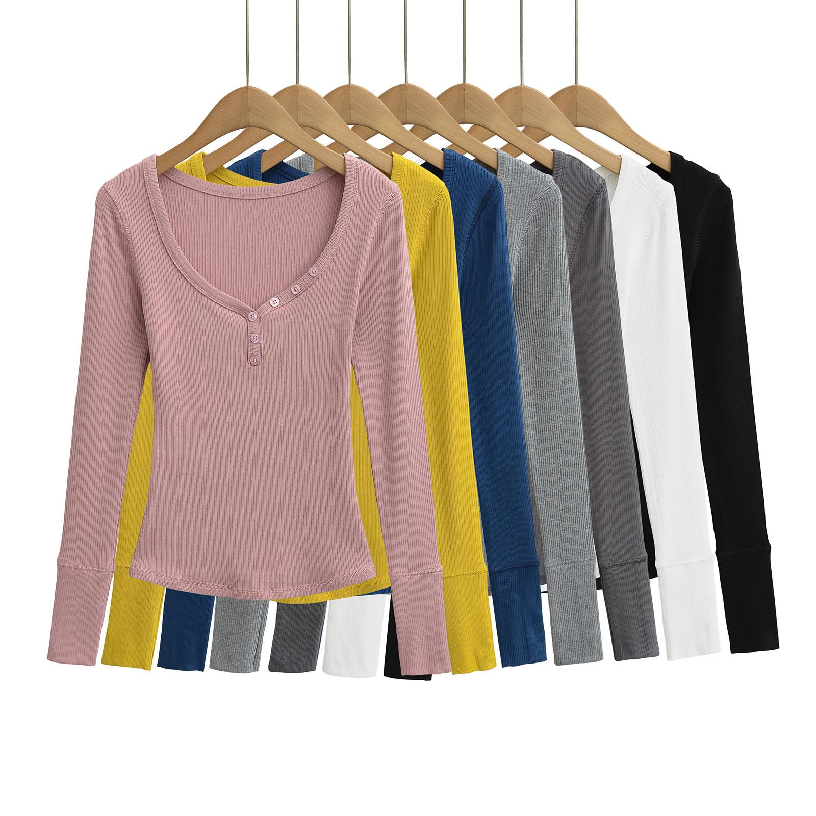 Playera de Manga Larga con Cuello en V y Multibotones para Mujer Hot Girl Peach Primavera 2025 Nuevo Hilo Cálido Slim Camiseta Base Top