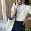 Playera de Algodón con Cuello en U para Mujer de Manga Corta 2025 Nueva Verano Elástica Ajustada Camiseta Básica Ajustada Top con Hombro Descubierto para Mujer