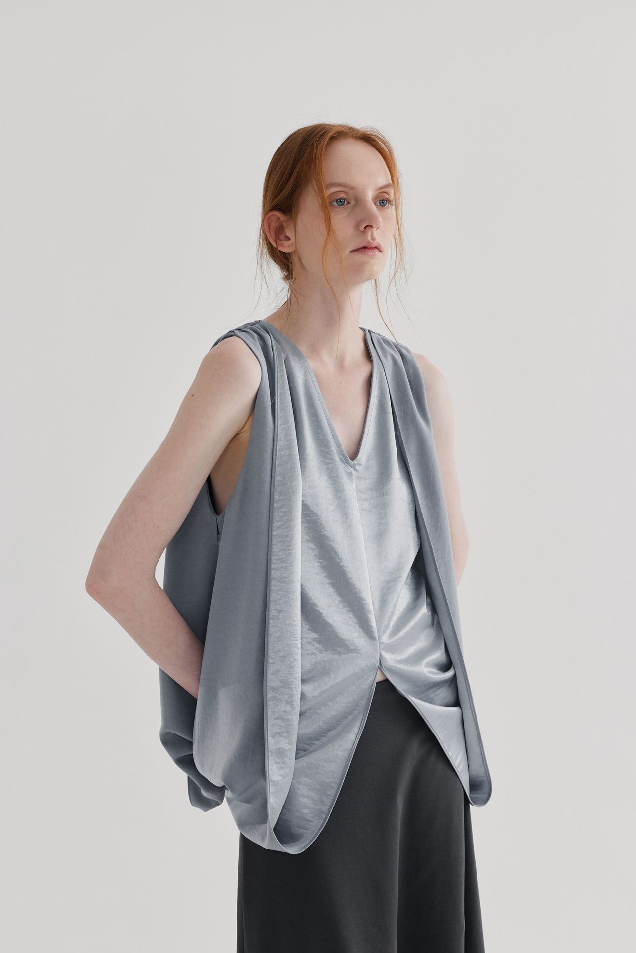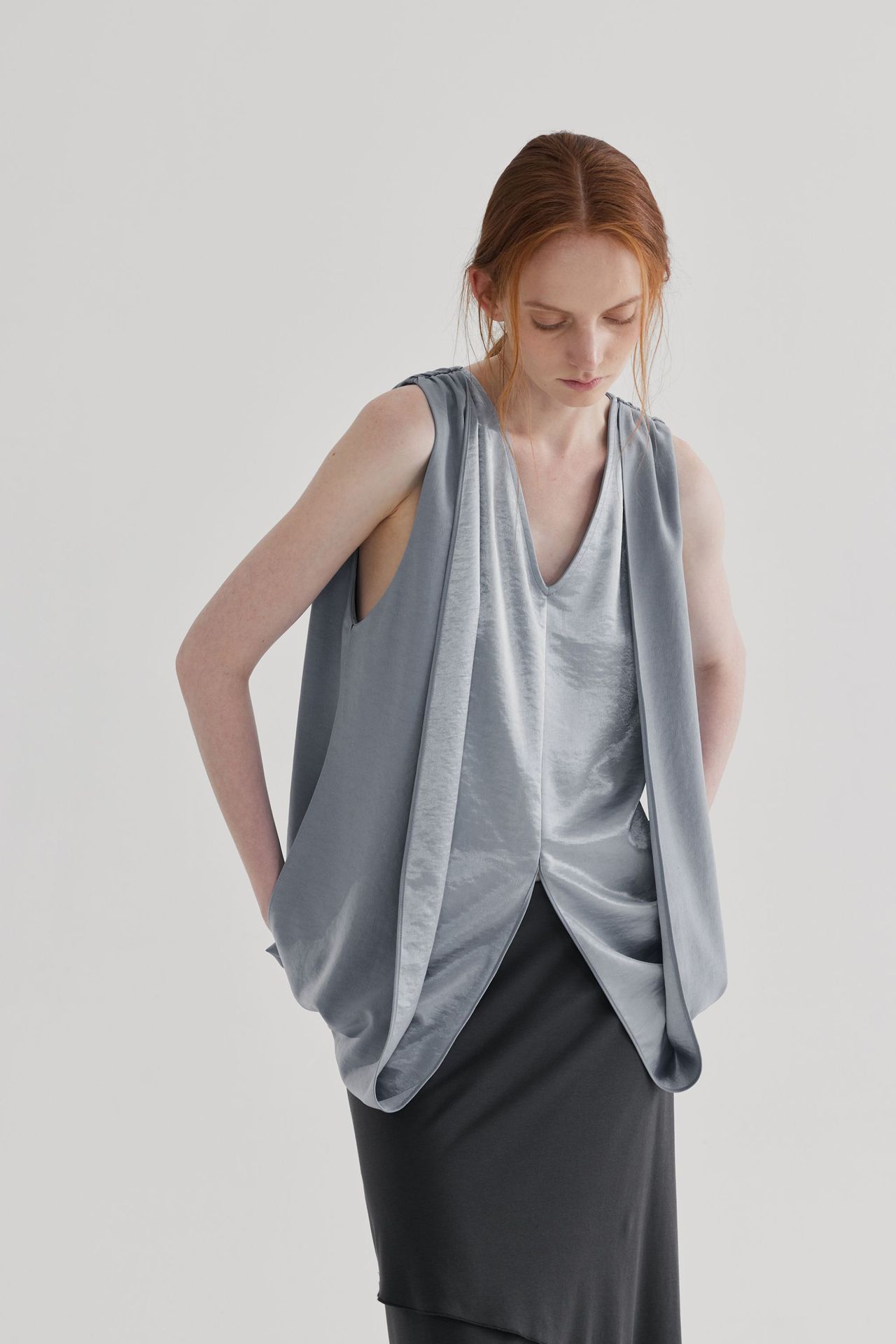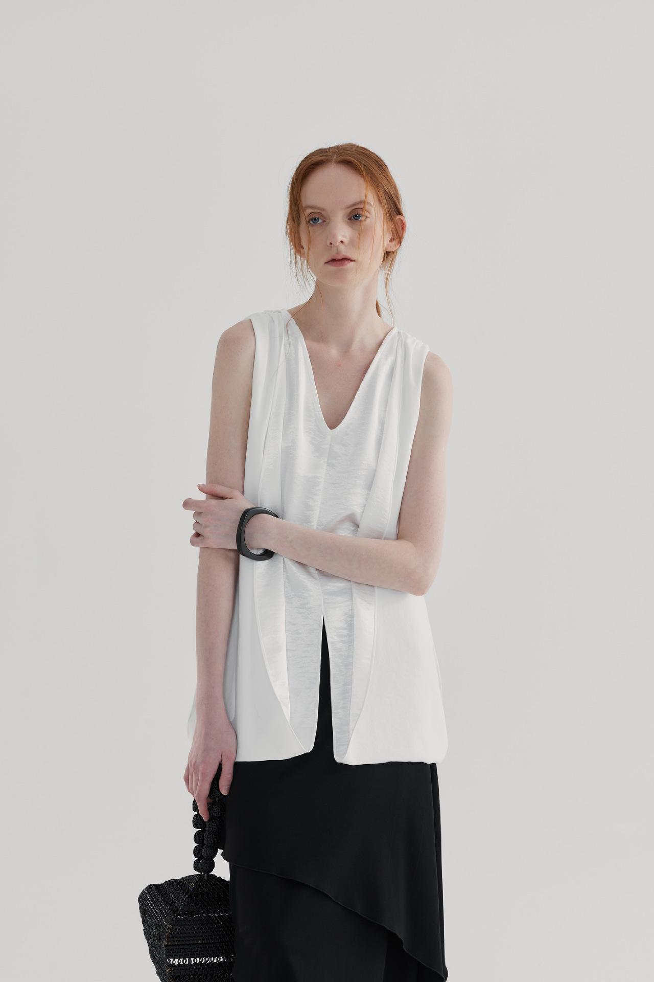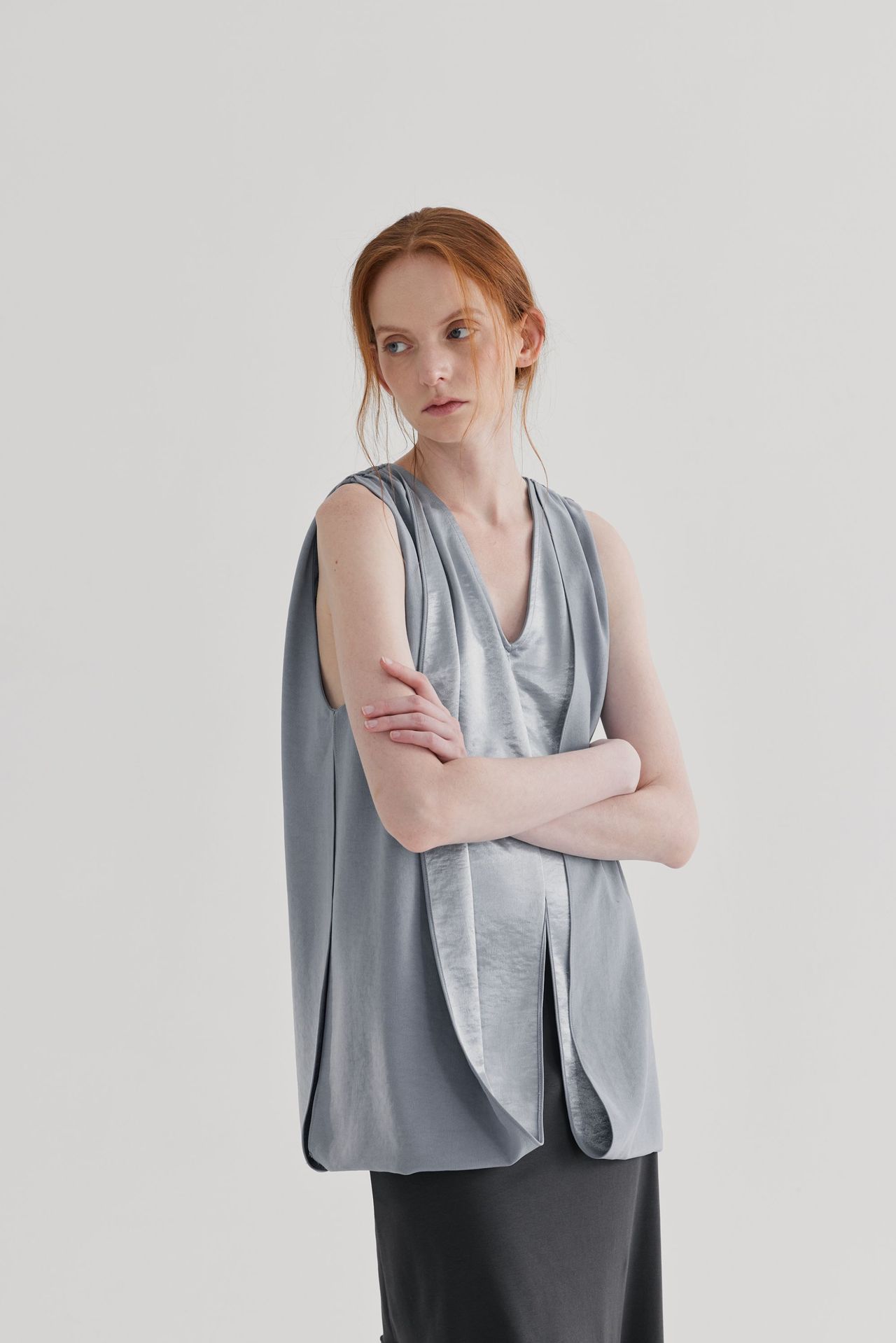 Pequeños pliegues a ambos lados de los hombros crean un aspecto en capas