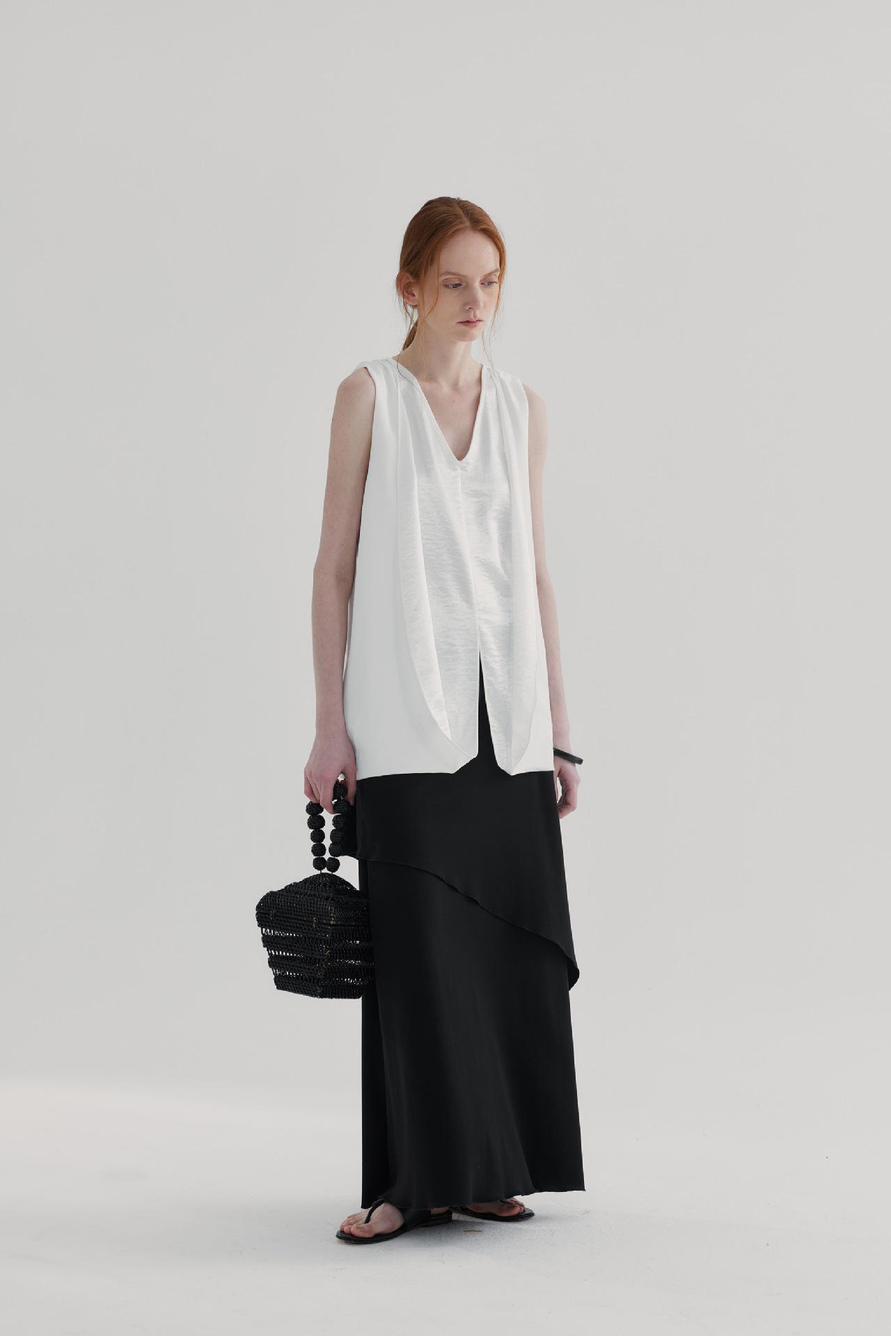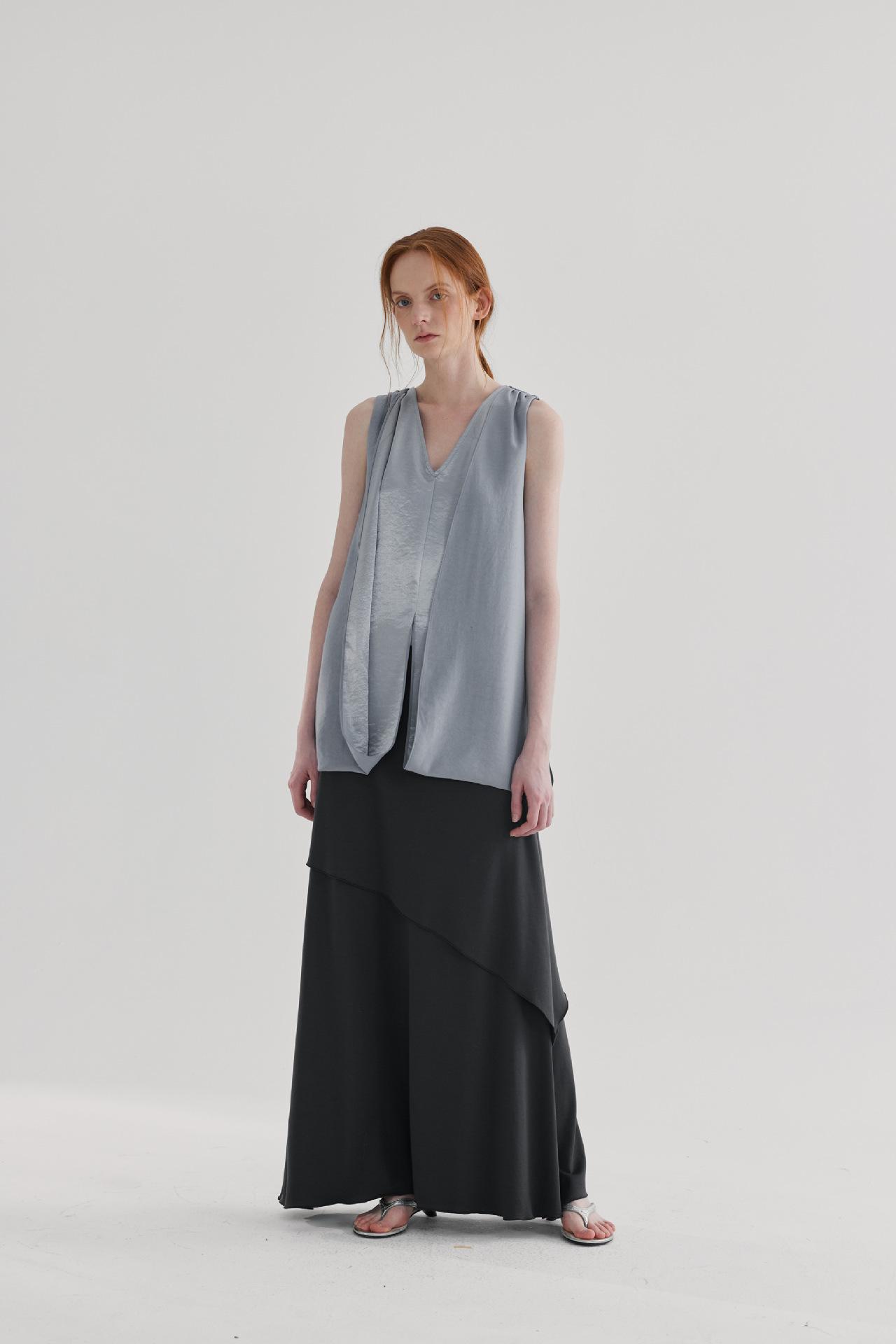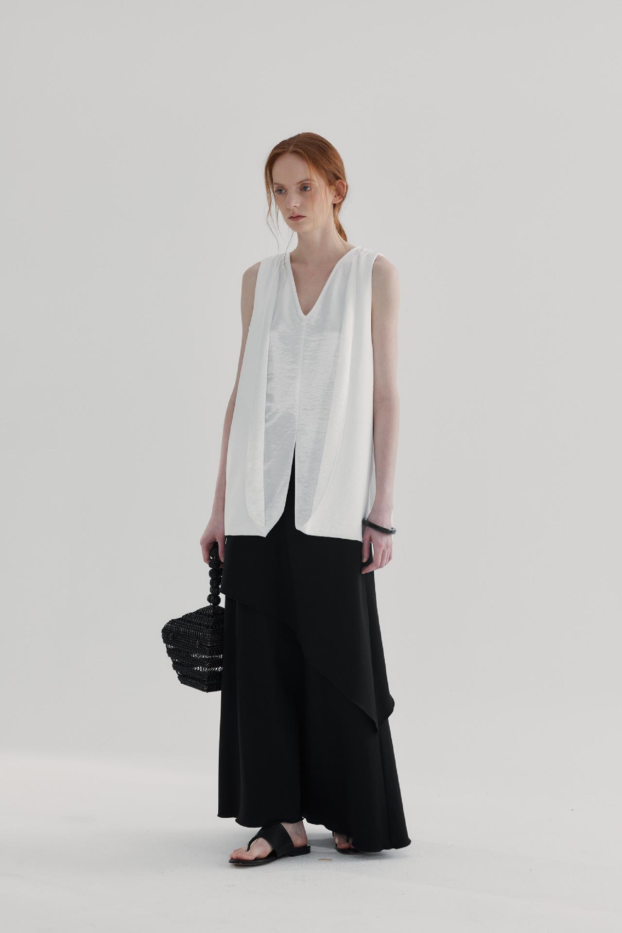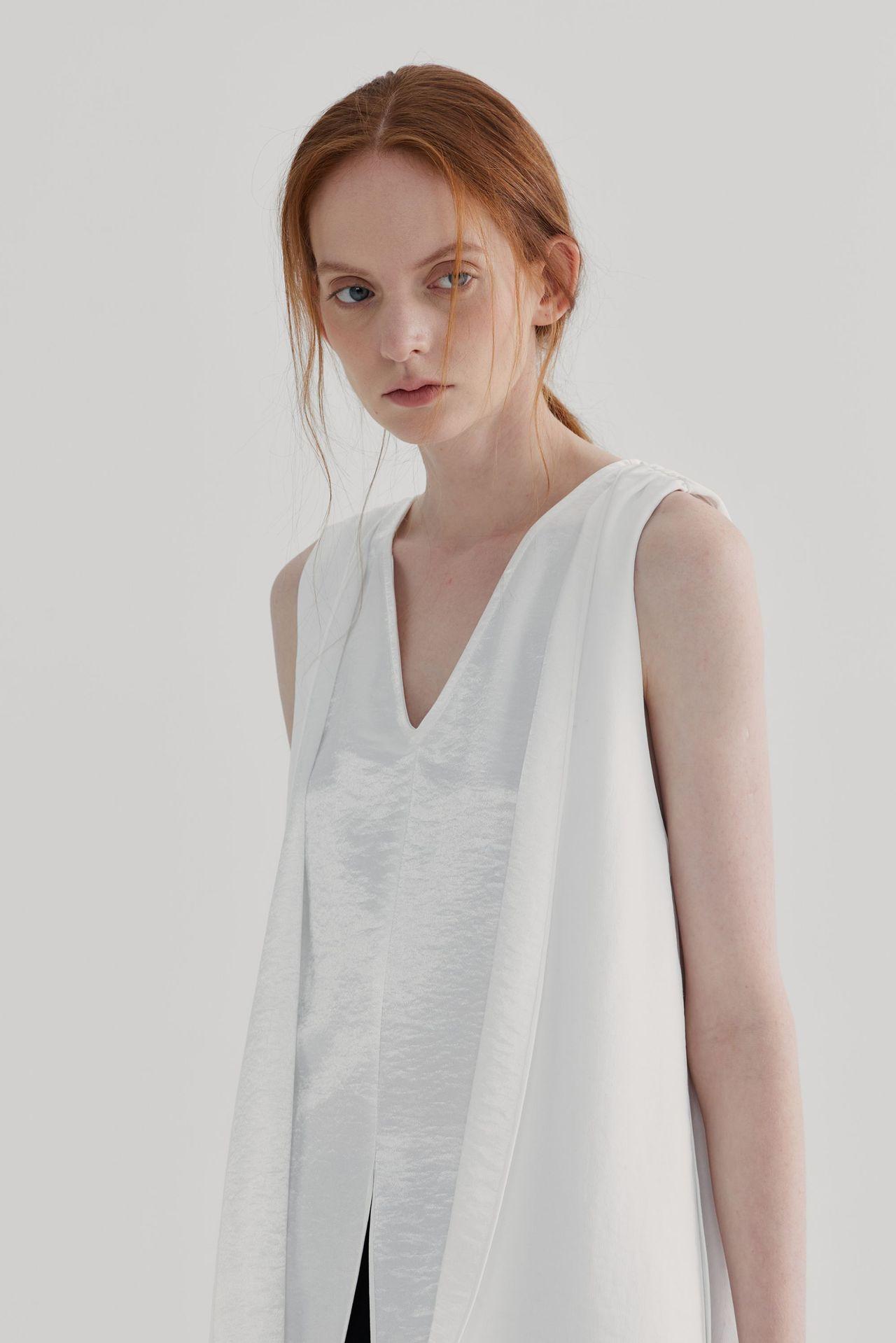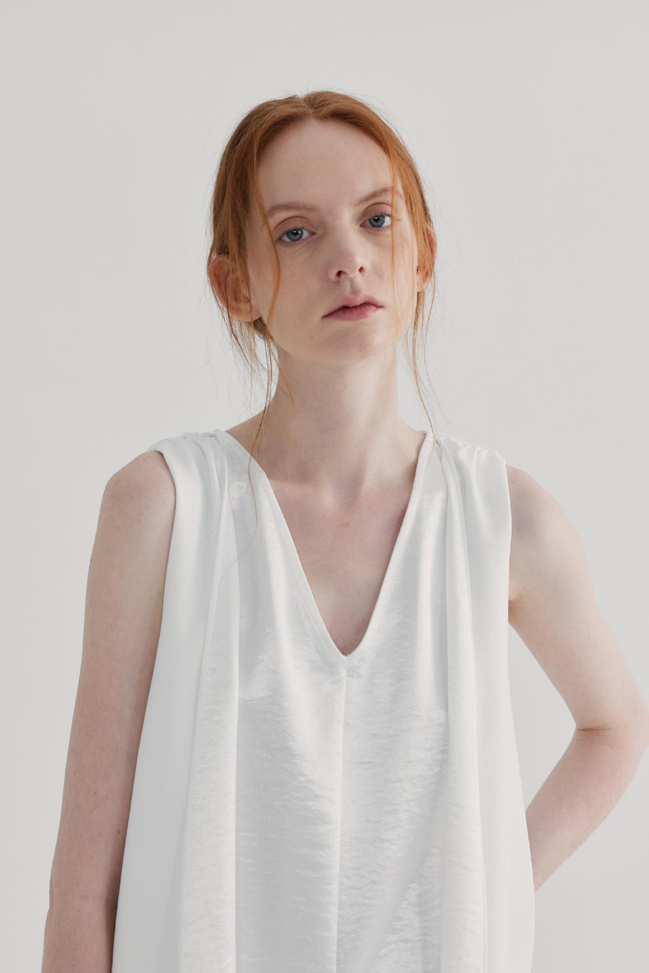 Pequeños pliegues a ambos lados de los hombros crean un aspecto en capas