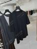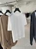 [Recomendación Principal] 25 Otoño/Invierno Cw Sensación de Piel Tencel Lana Cuello Único de Doble Capa Falso Dos Piezas Cuello Redondo Corte Slim Manga Corta Camiseta