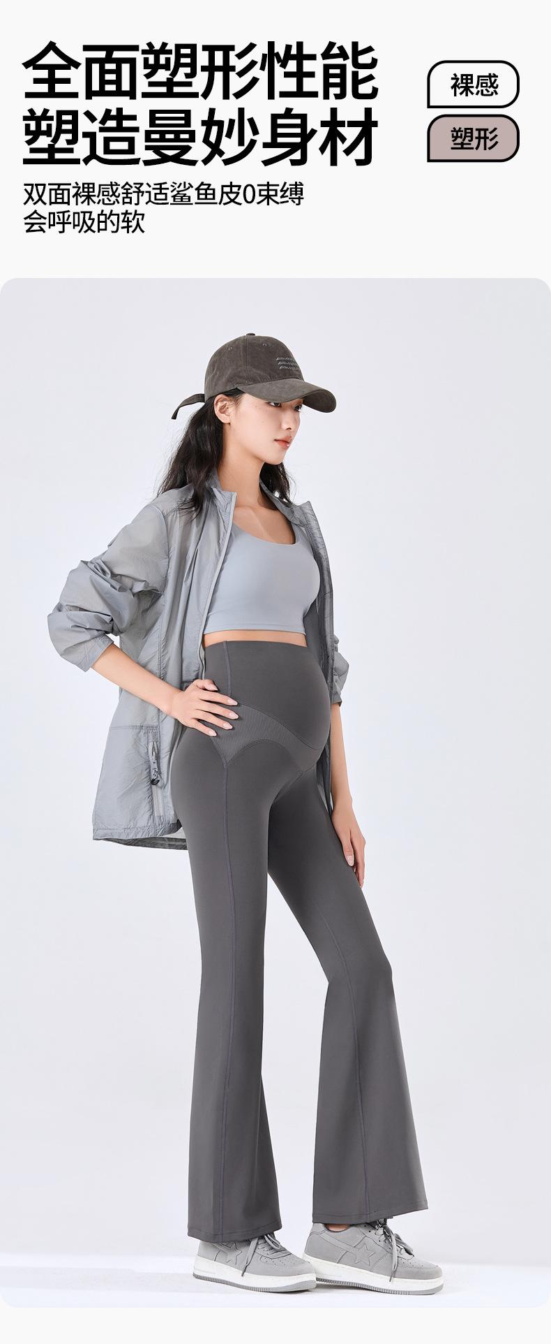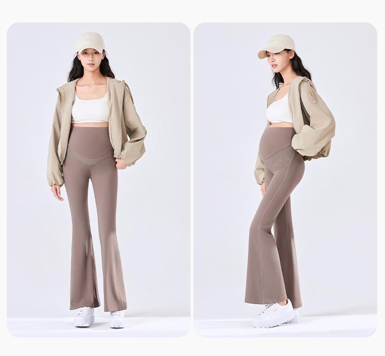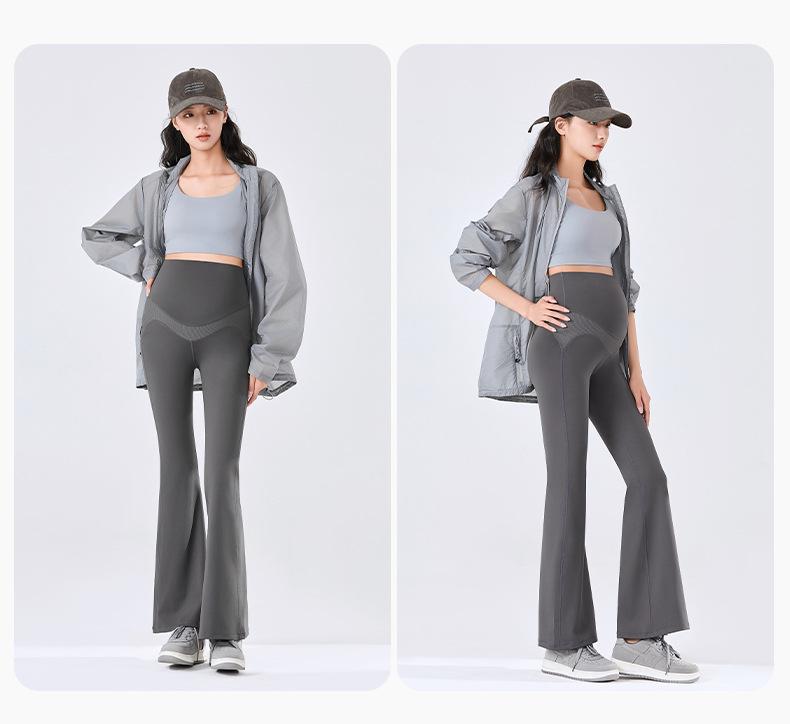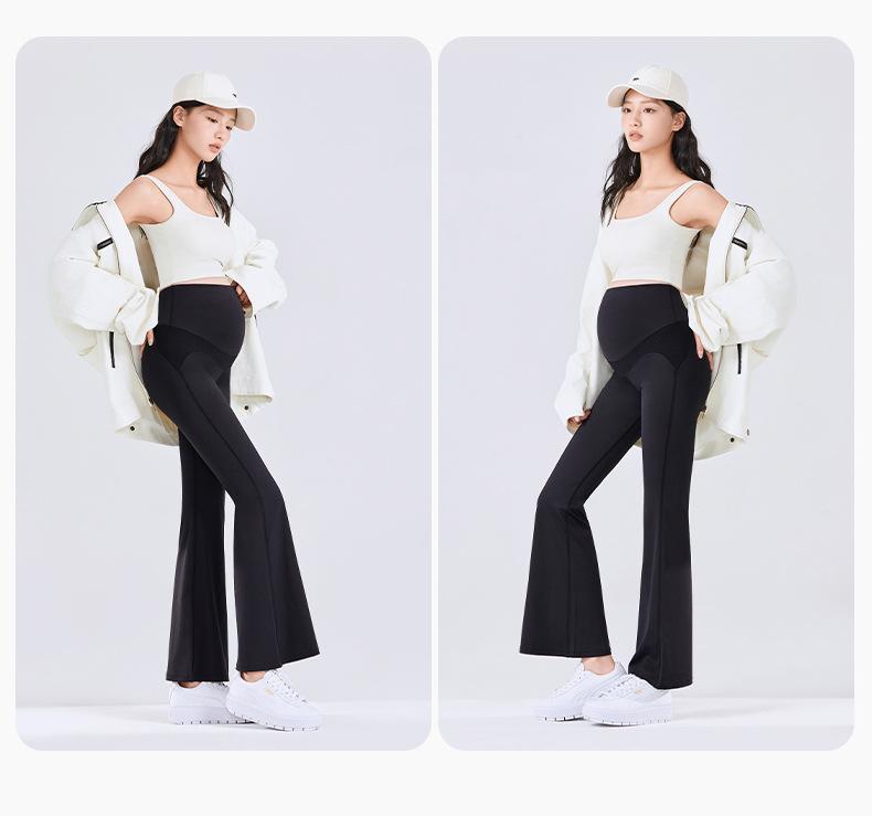Pantalones de mujer embarazada primavera y otoño ropa exterior delgada pantalones de cintura alta que sostienen el abdomen leggings pantalones acampanados de vientre transpirables de alta elasticidad para mujeres embarazadas