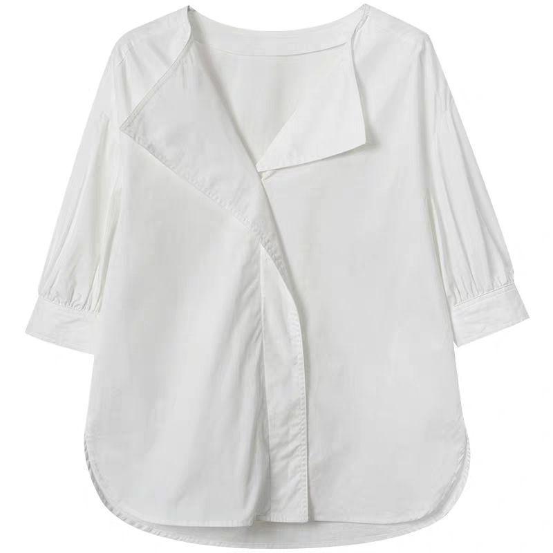 Camisa de media manga para mujer, diseño Sense Niche, camisa blanca para mujer, nueva blusa retro francesa de verano 2025