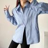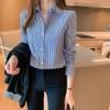 Otoño 2020 nueva camisa azul a rayas diseño nicho femenino camisa otoño e invierno más terciopelo top de manga larga versátil